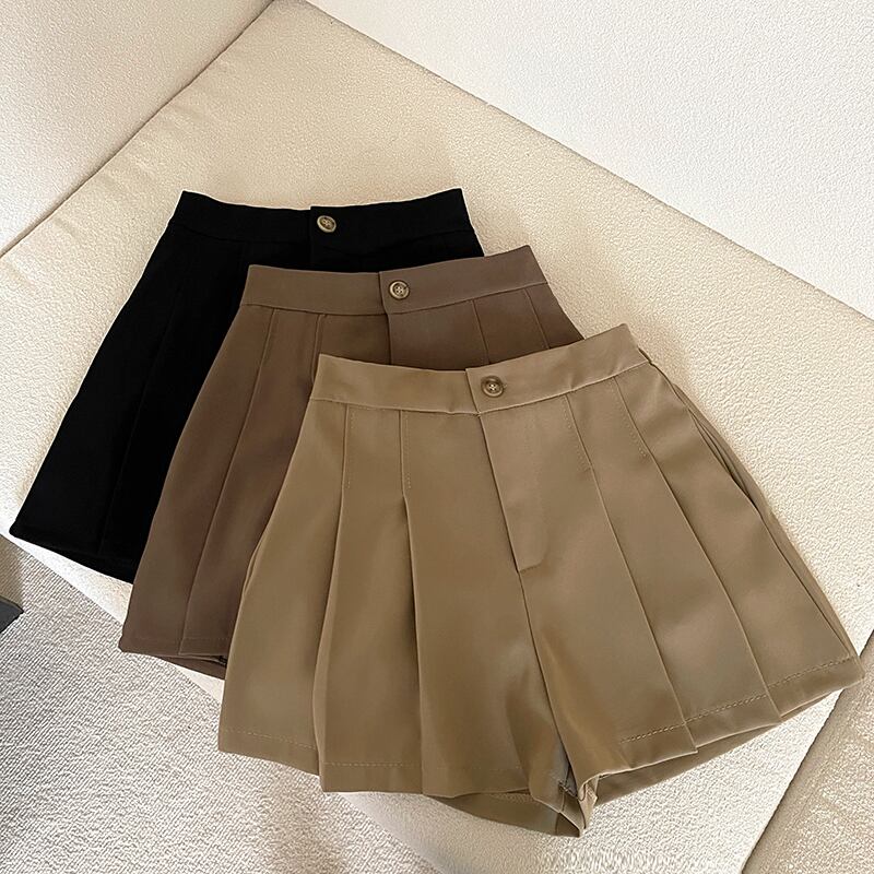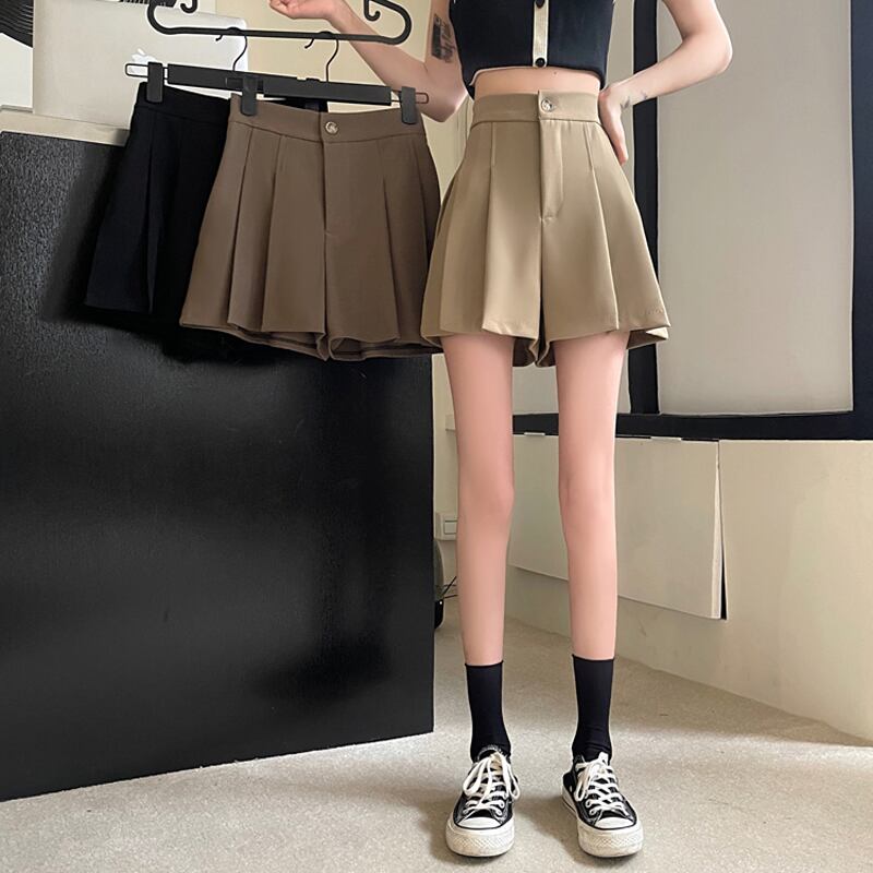 夏の薄茶色のAラインスーツショーツ女性の夏のプリーツキュロットハイウエストは細くて小さい150スカートパンツ ハイウェスト サマー 夏物 ブルマー 7460070155024636 | framboise21