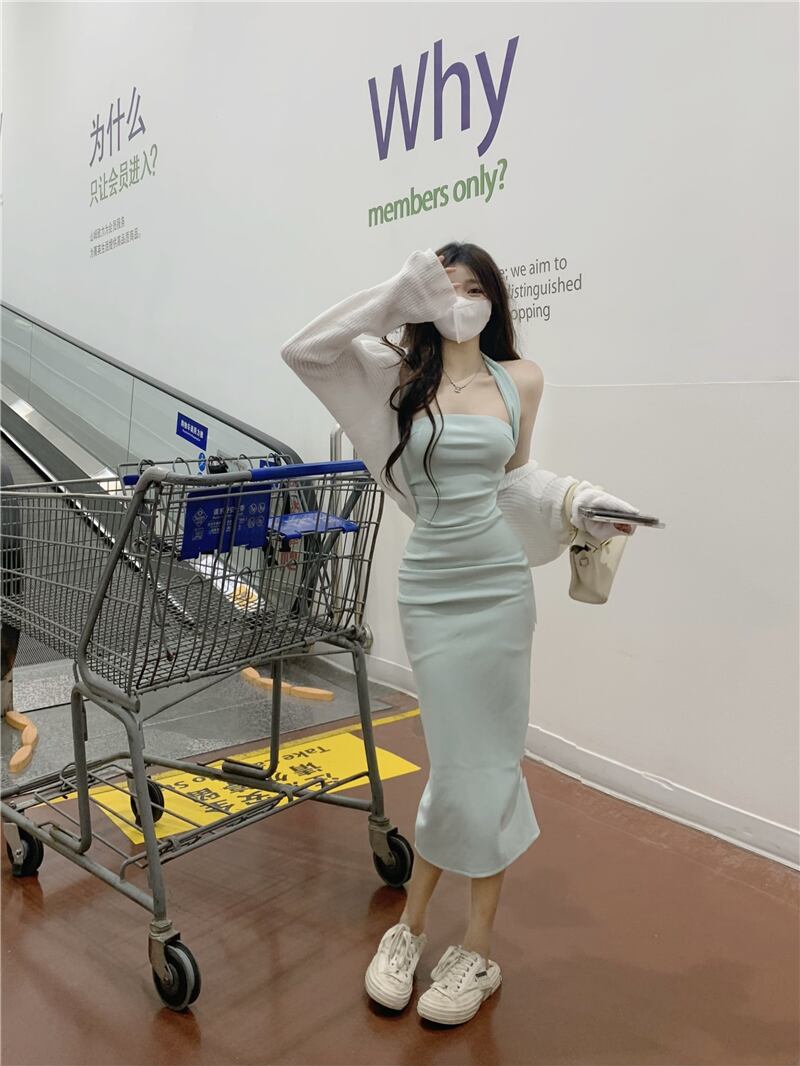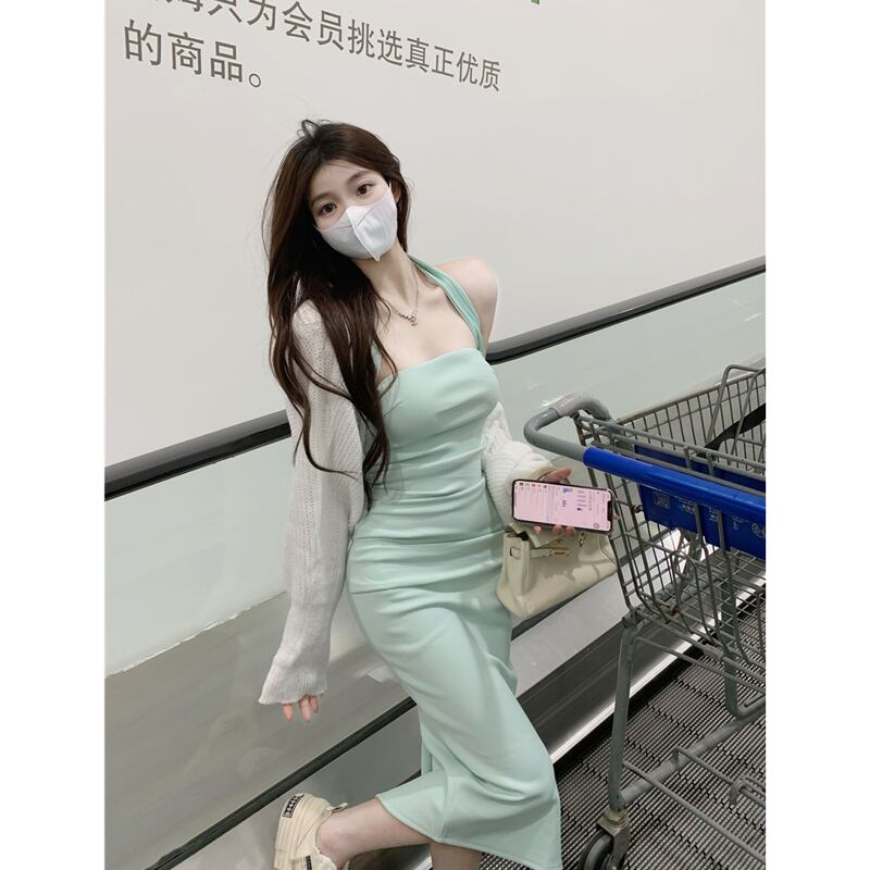 ワンショルダーワンピースレディースサマー薄手のホルターネックサスペンダースカートピュアな欲望デザインスリムバッグヒップロングスカート 夏物 7460069225237781 | framboise21