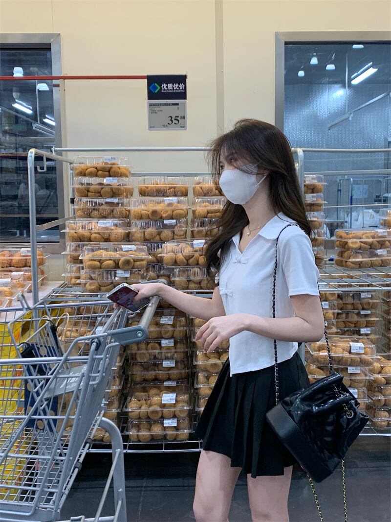 ブラックポロカラーフロントショルダー半袖Tシャツレディースサマースモールイレギュラーチャイナドレスボタントップ ショート ハーフスリーブ 夏物 7460088084708565 | framboise21