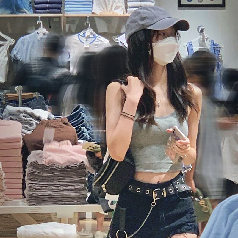 胸パッドと小さなスリングの女性の夏のスポーツベストとデザインのセンスと短い美しいバックボトミングトップを備えたグレー ショート サマー 夏物 7460085385535916 | framboise21