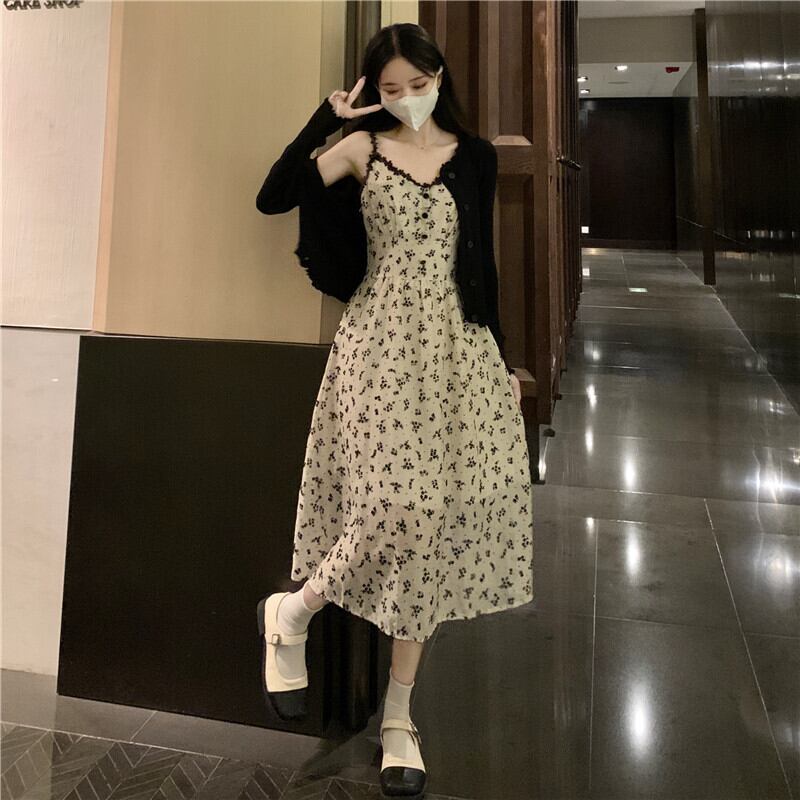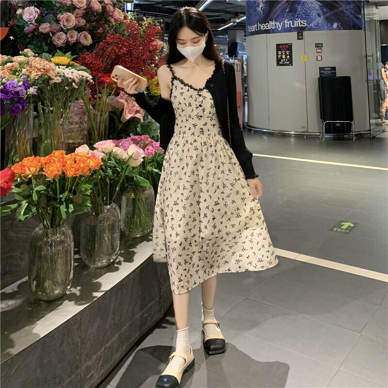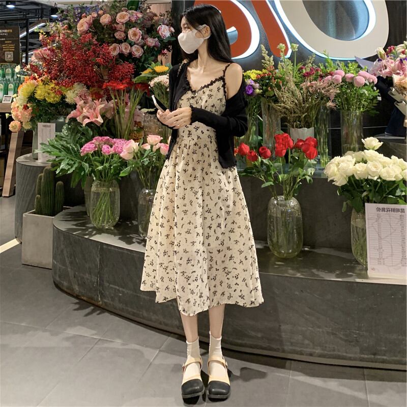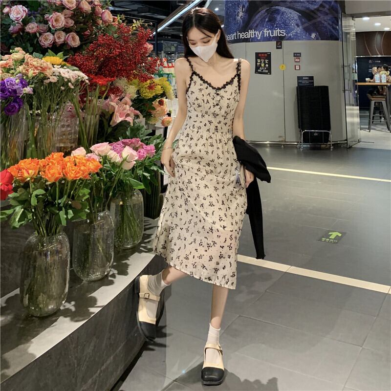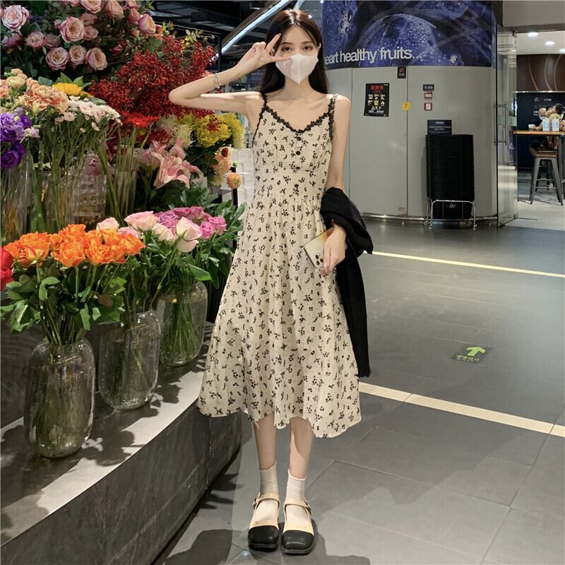 2022年夏の新しいレディースウェア、花柄サスペンダースカートボトミングティーブレイク初恋ロングスカートベルフラワーフレンチドレス サマー 夏物 フラワーデザイン 7460061721552720 | framboise21