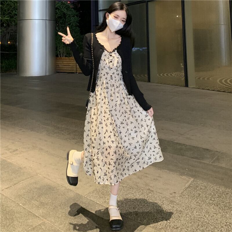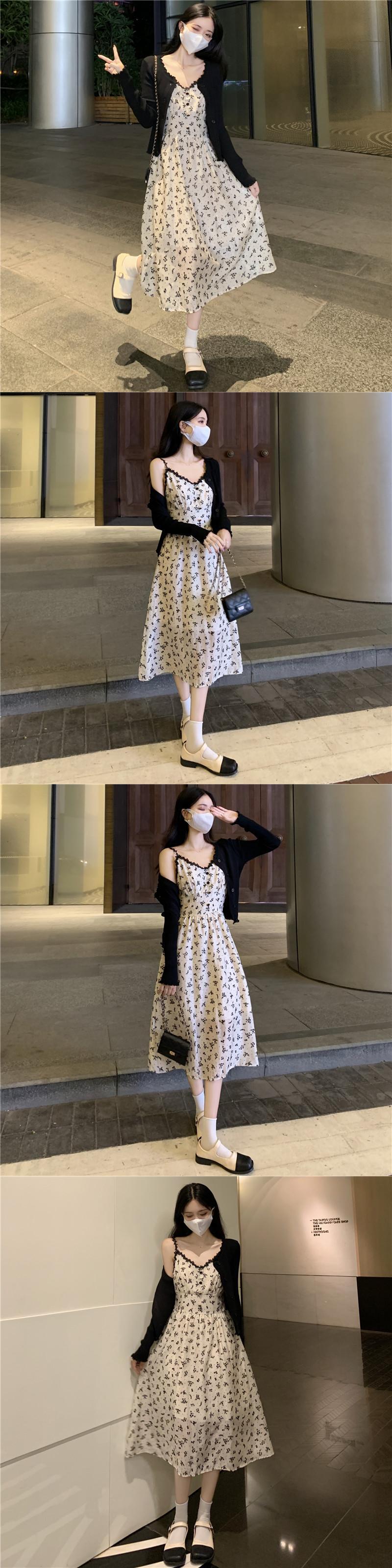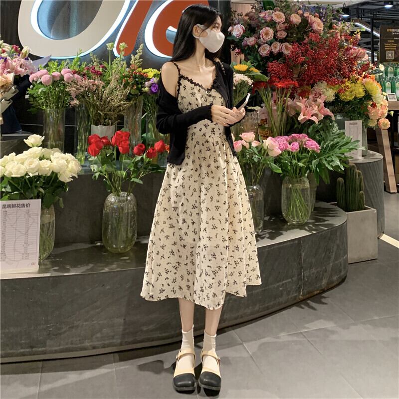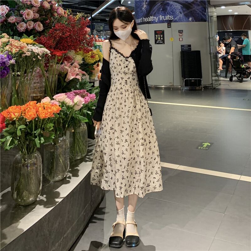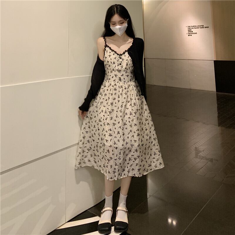 2022年夏の新しいレディースウェア、花柄サスペンダースカートボトミングティーブレイク初恋ロングスカートベルフラワーフレンチドレス サマー 夏物 フラワーデザイン 7460061721552720 | framboise21