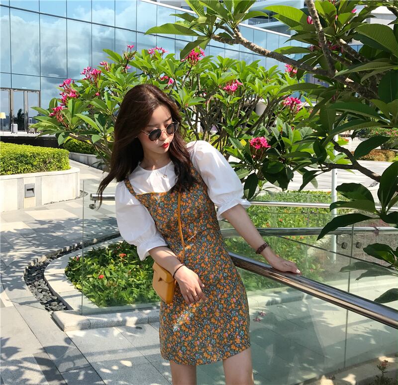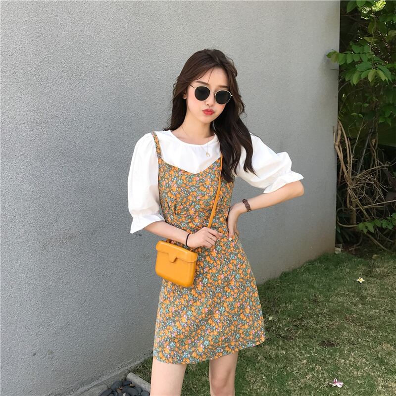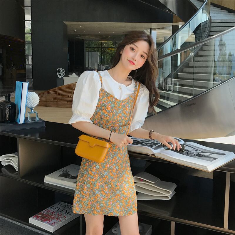 夏は塩辛くて甘いツーピーススーツシックなカレッジスタイルのレトロなフレンチフローラルサスペンダードレス女性小 大人ガーリー スウィート キュート カジュアル サマー 夏物 花柄 746002559431312 | framboise21