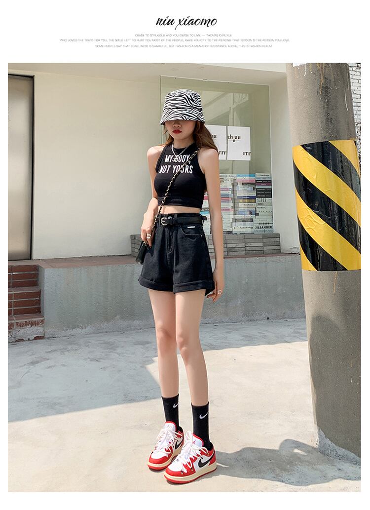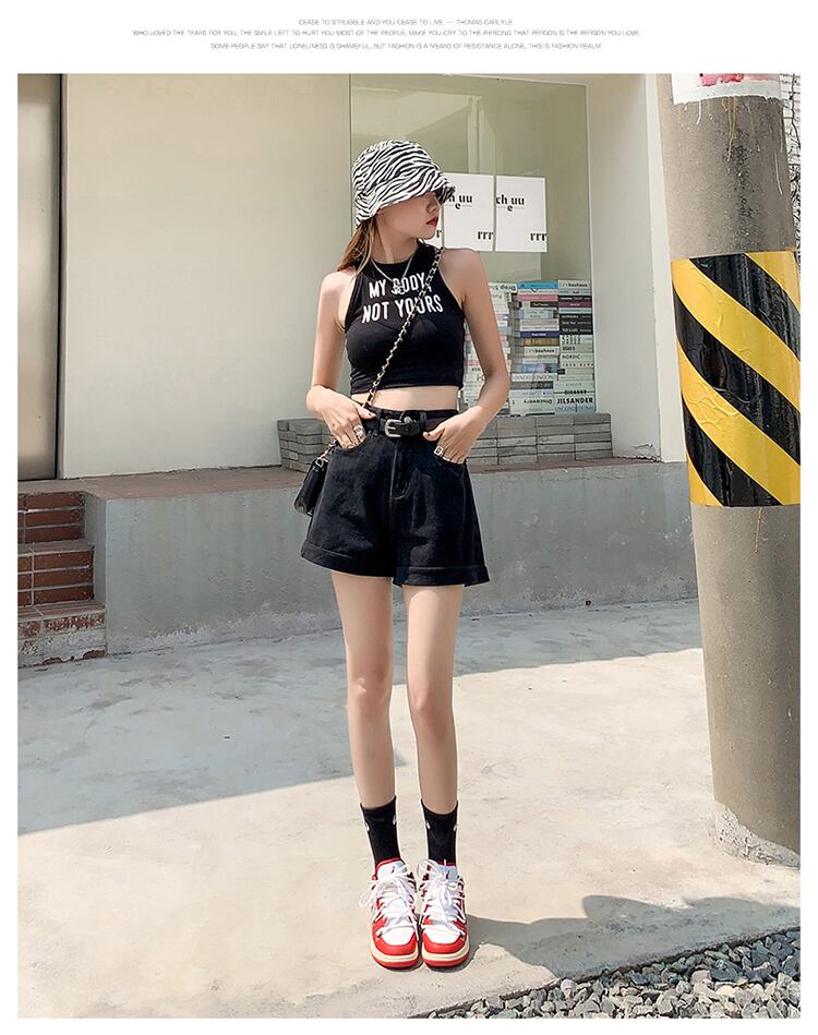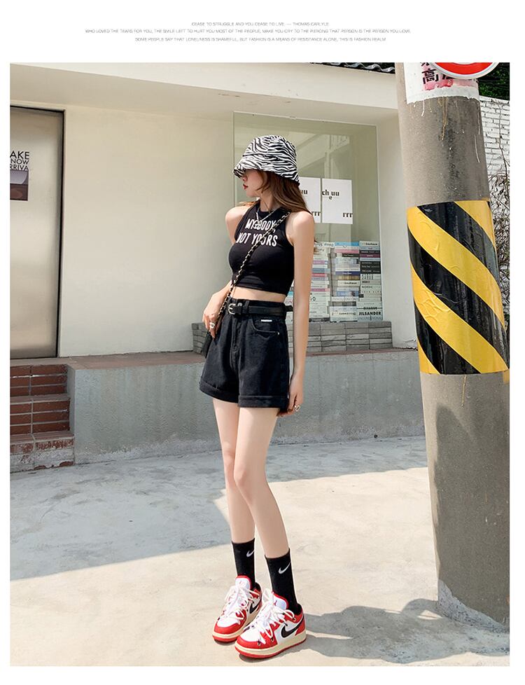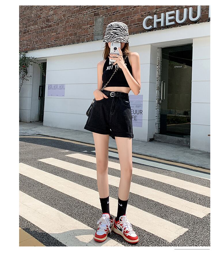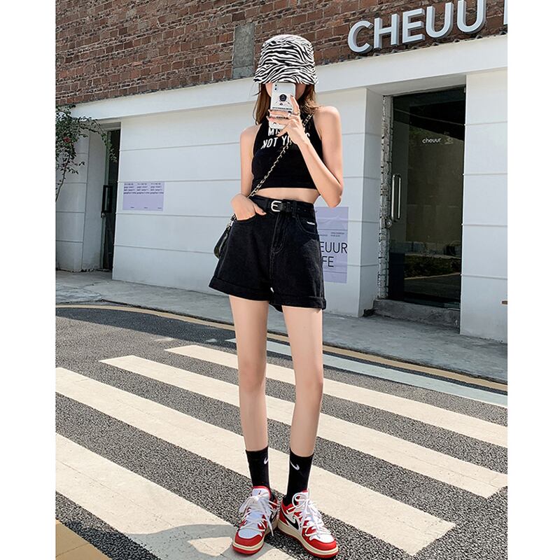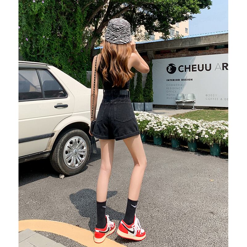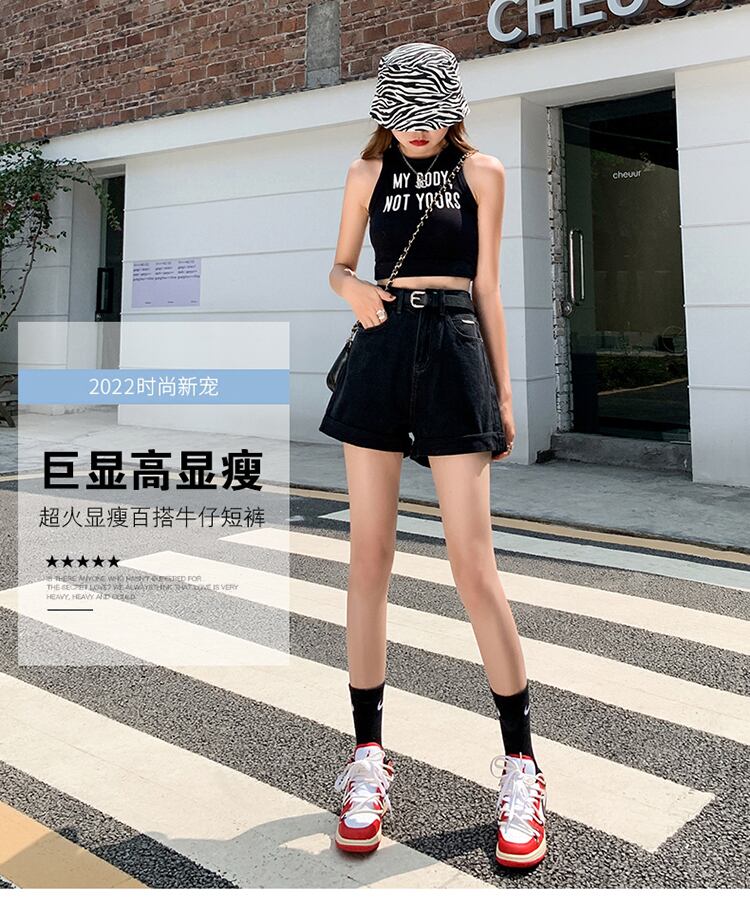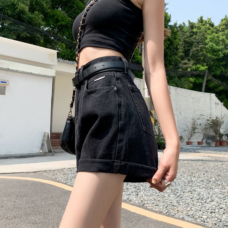 夏の薄手のブラックデニムワイドレッグパンツレディース2022年新作スモールスーパーハイウエストAラインショーツキュロット ハイウェスト サマー 夏物 ブルマー 7460013774531796 | framboise21