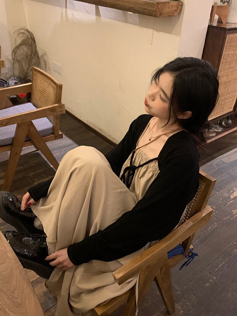 黒の日焼け止めカーディガン女性の夏の薄い小さなベストブラウスコート、サスペンダースカート、短い長袖ショール ショート ロング ブラック サマー 夏物 7460023070668576 | framboise21
