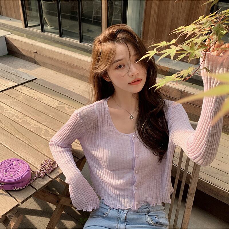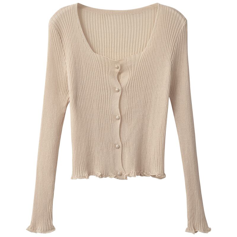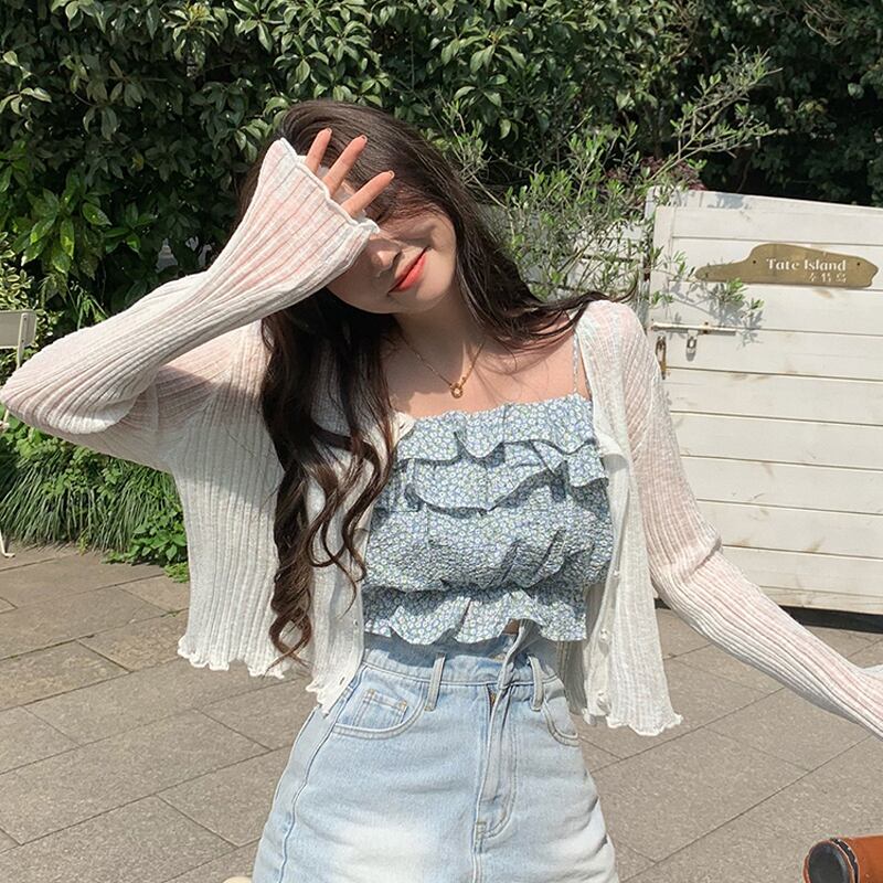 アプリコットニットカーディガン薄手の女性用アイスシルク日焼け止めジャケット夏、サスペンダースカートとフレンチスモールベストブラウス サマー 夏物 7460015072793422 | framboise21