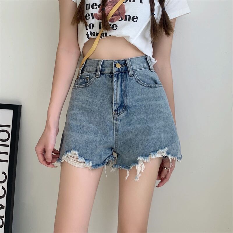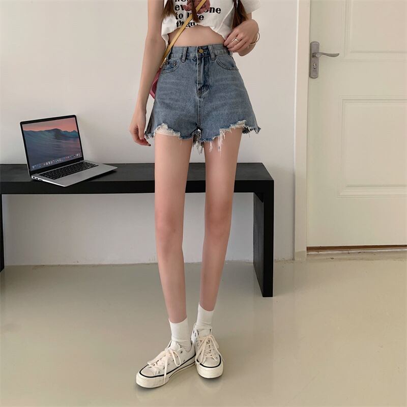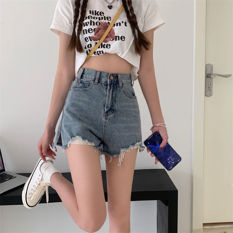 2022年夏新作センスニッチハイウエストブルーデニムワイドレッグショーツレディース生エッジスリット薄パンツ ハイウェスト サマー 夏物 ブルマー ワイドパンツ 7460016784969342 | framboise21
