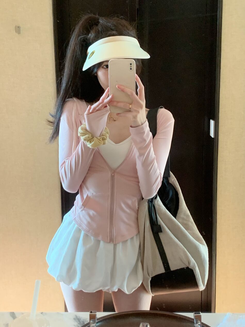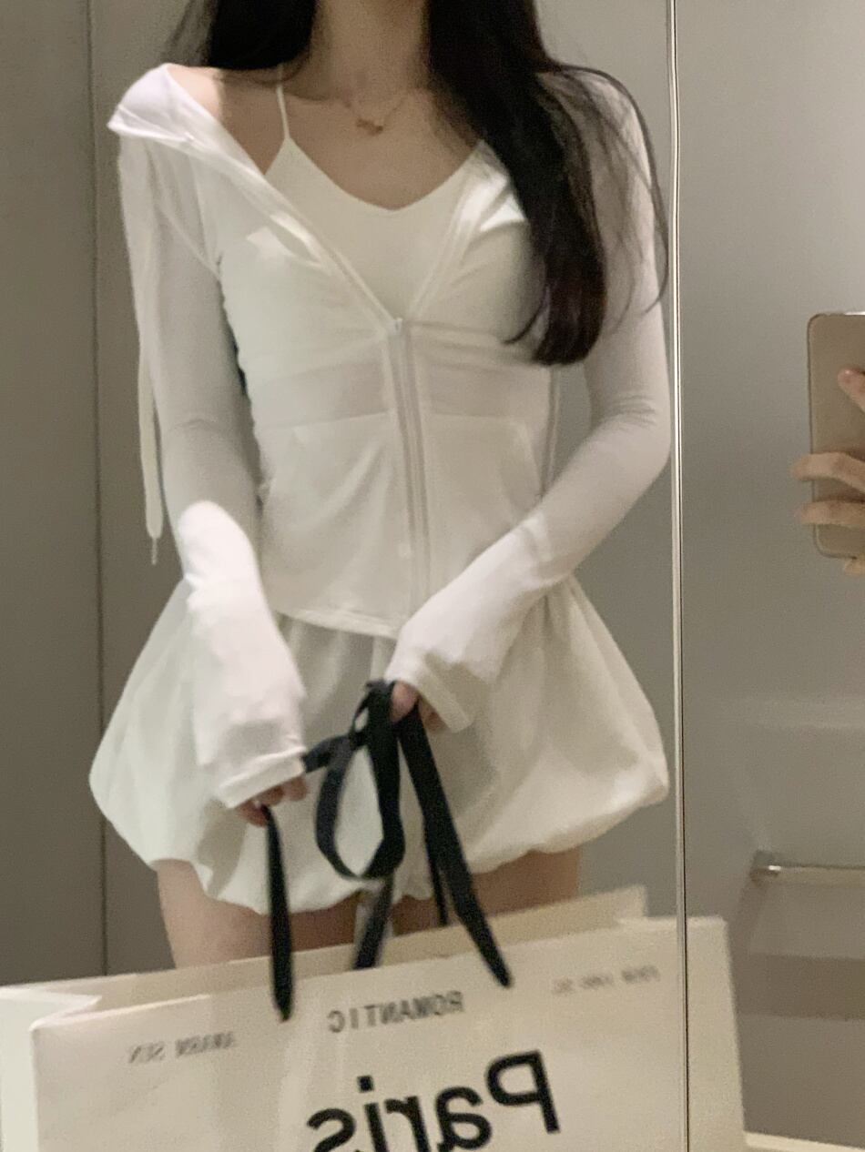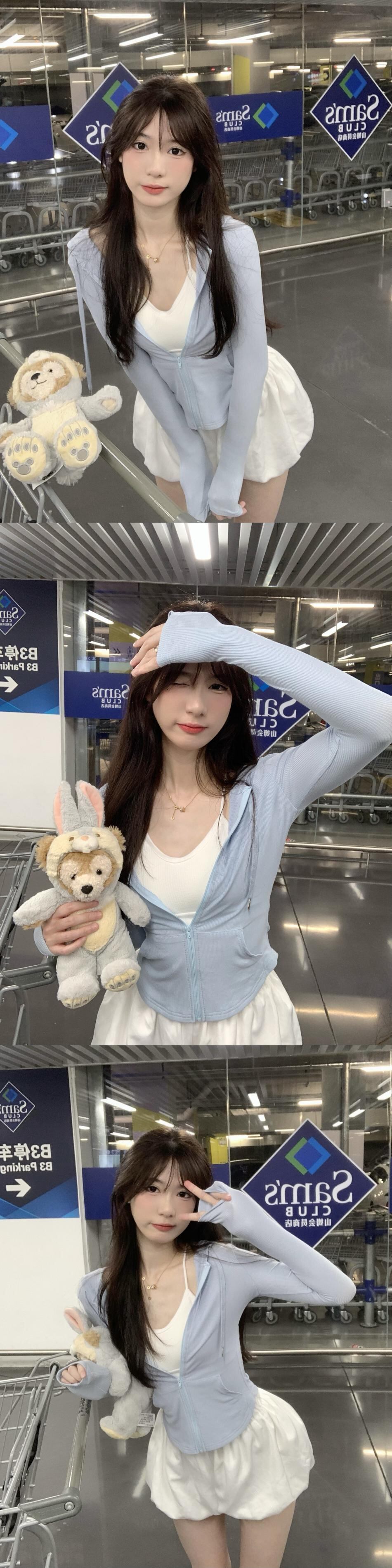 ブルーのフード付き日焼け止め服女性の夏のデザインセンススリムアウターウェアショートシンイレギュラースポーツカーディガンジャケット サマー 夏物 7460086942238571 | framboise21