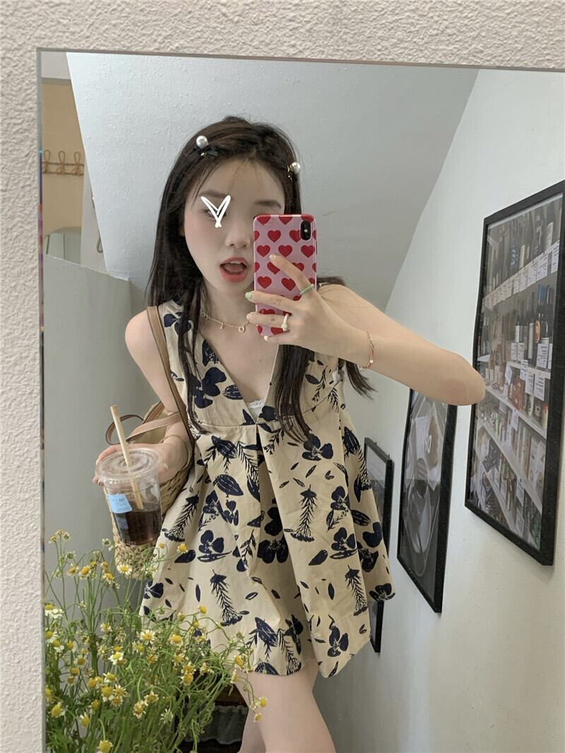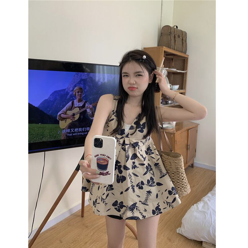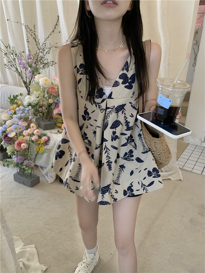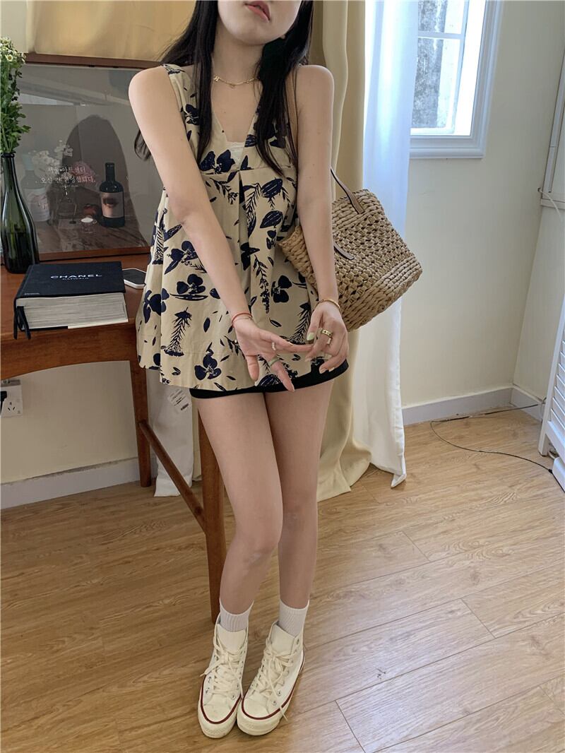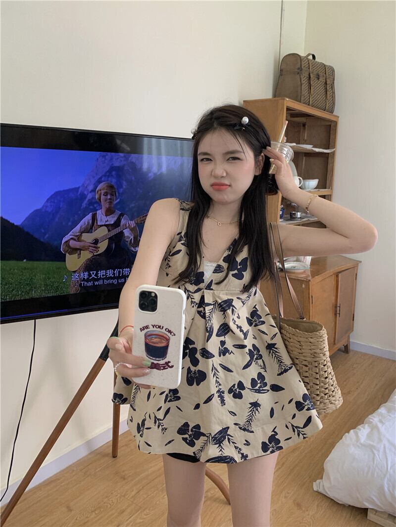 フレンチフローラルふくらんでいるキャミソールレディースサマーデザインアウターウェアのセンスルーズシックスウィートでスパイシーなノースリーブトップスベビーシャツ 大人ガーリー キュート カジュアル 夏物 花柄 7460092509530105 | framboise21