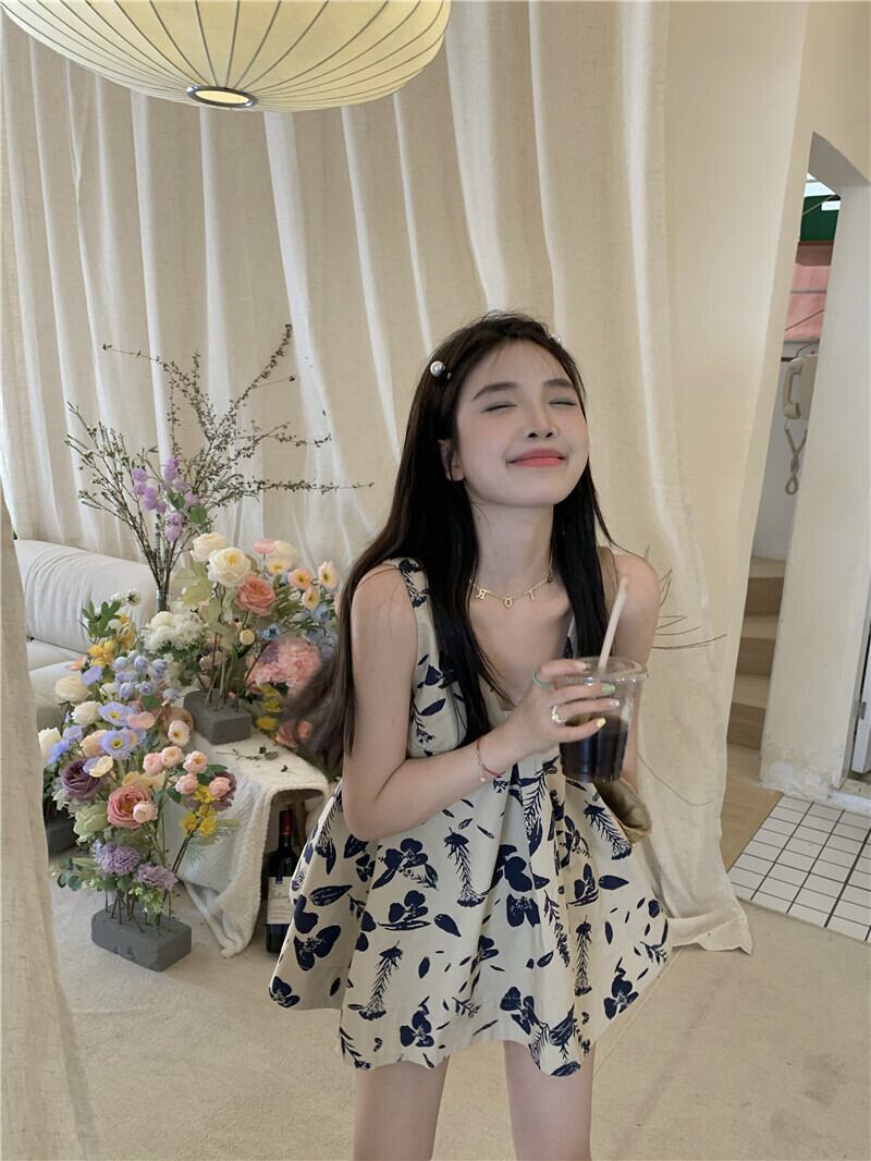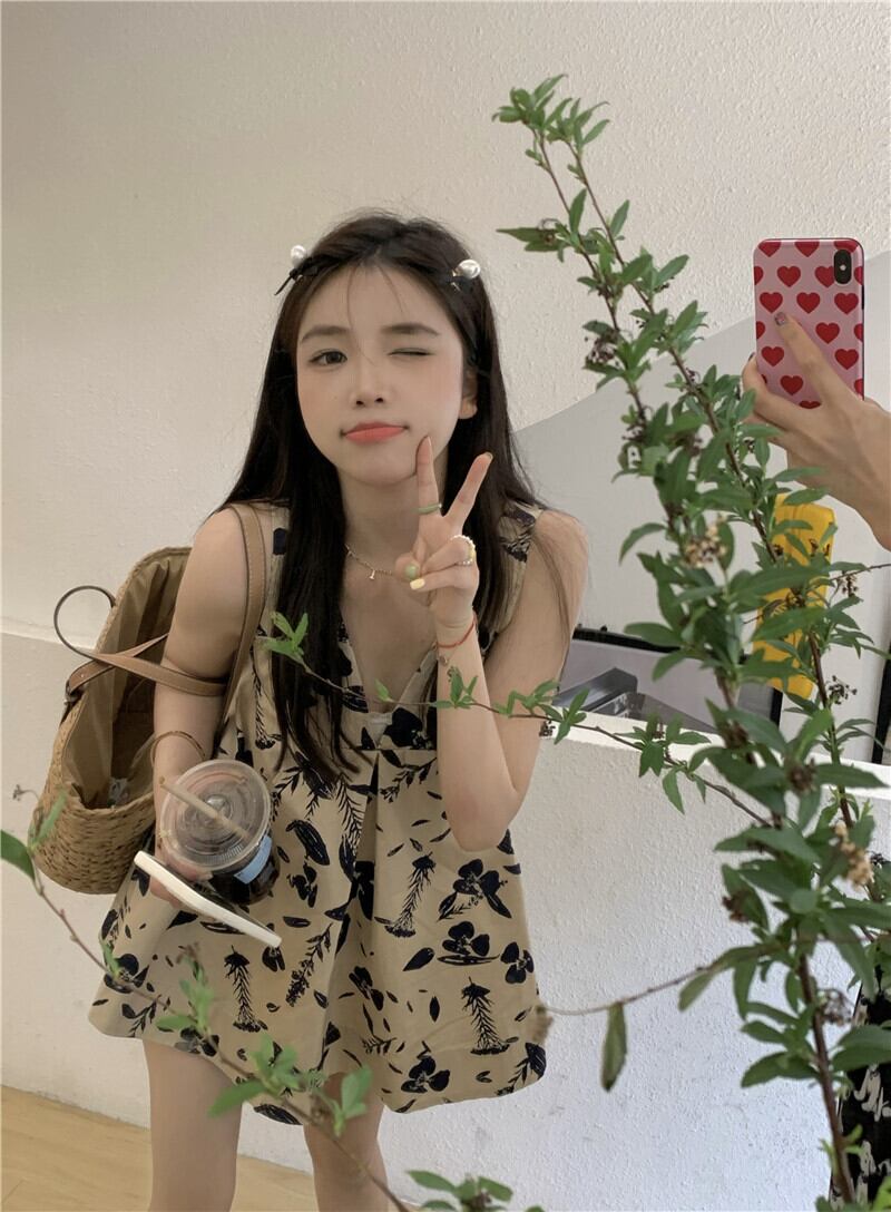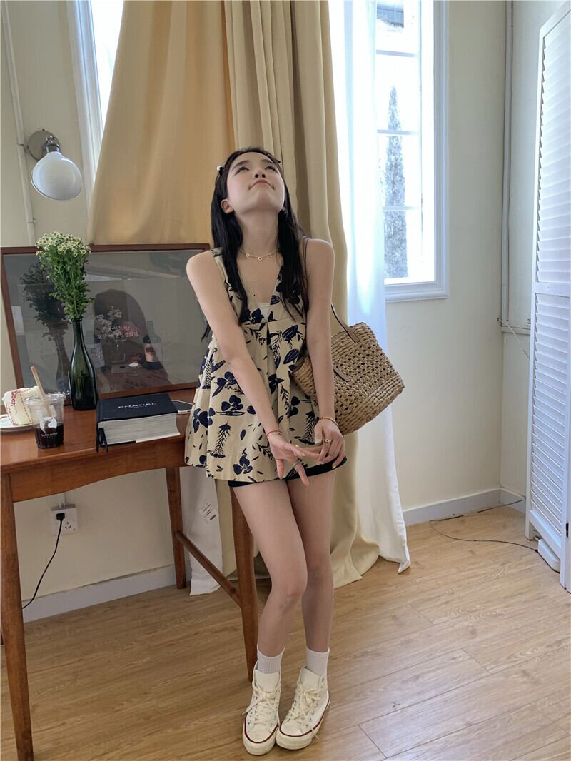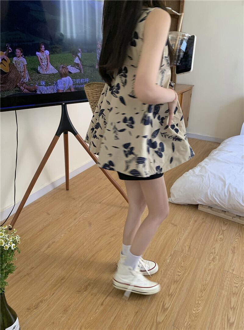 フレンチフローラルふくらんでいるキャミソールレディースサマーデザインアウターウェアのセンスルーズシックスウィートでスパイシーなノースリーブトップスベビーシャツ 大人ガーリー キュート カジュアル 夏物 花柄 7460092509530105 | framboise21