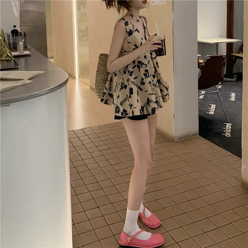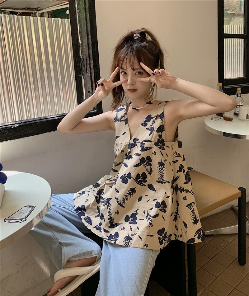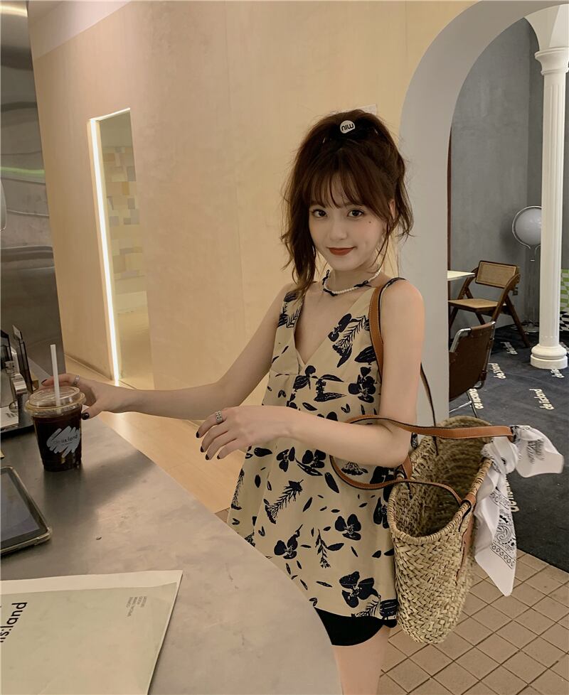 フレンチフローラルキャミソールベストレディースサマーアウターデザインルーズでシックなノースリーブTシャツトップサマーレディースモデル 夏物 花柄 7460060033542446 | framboise21