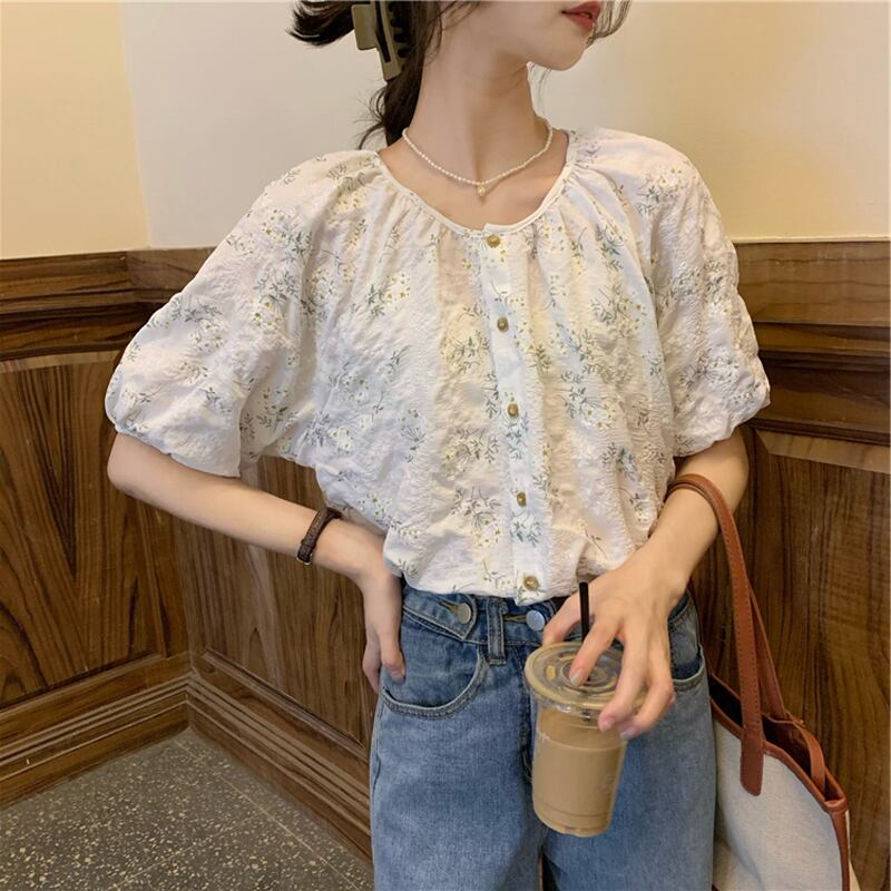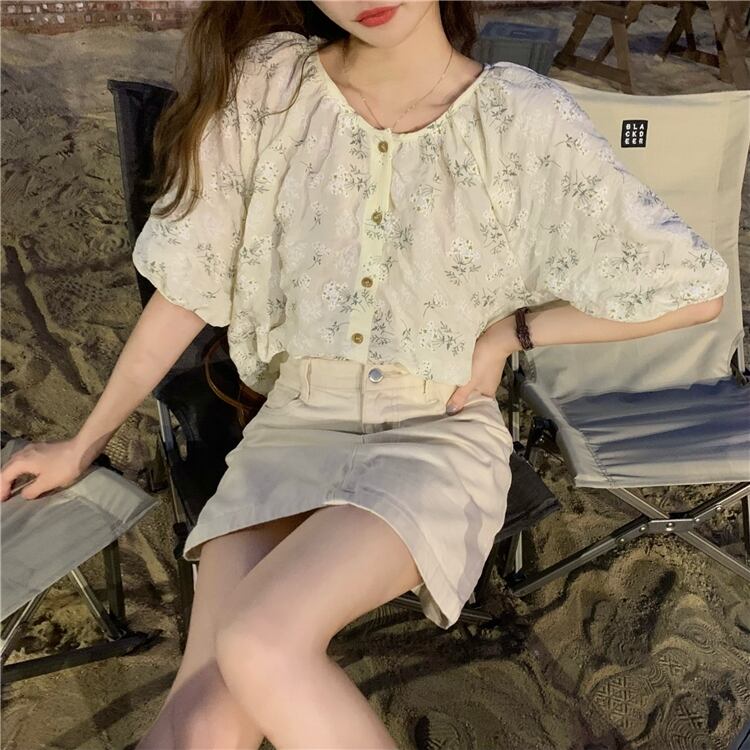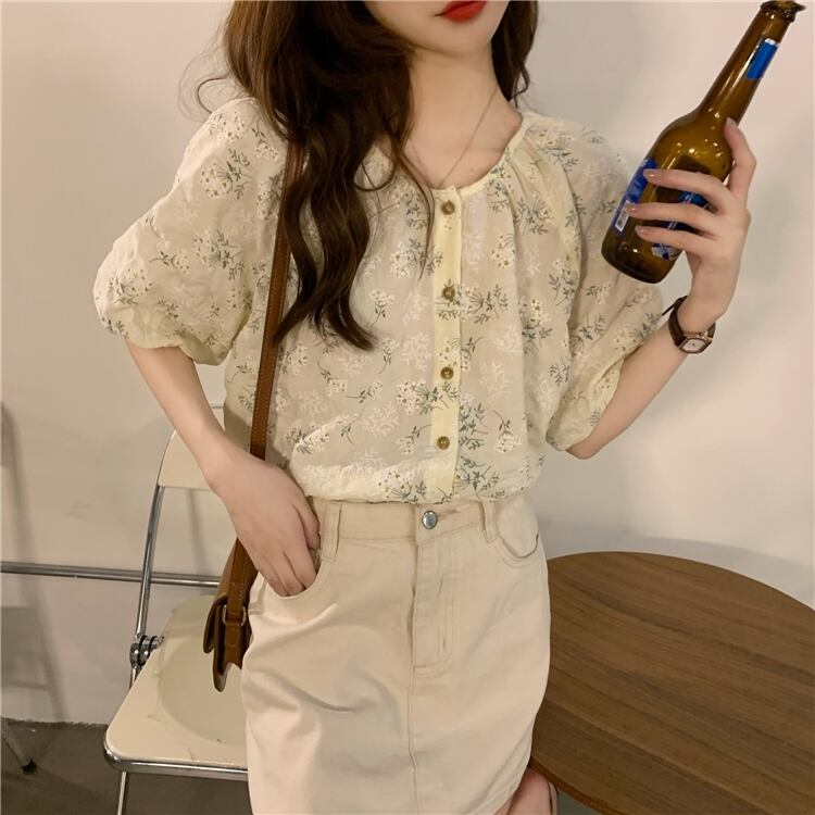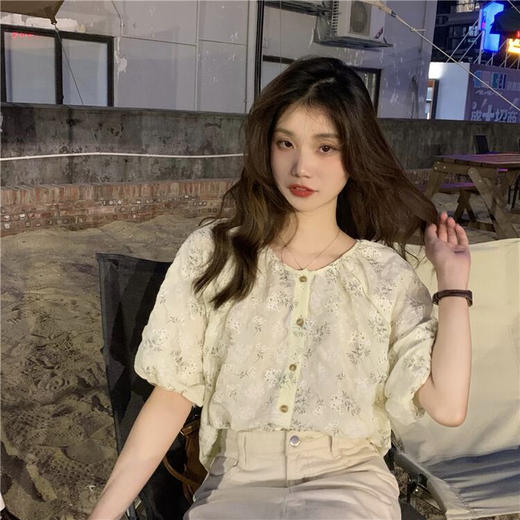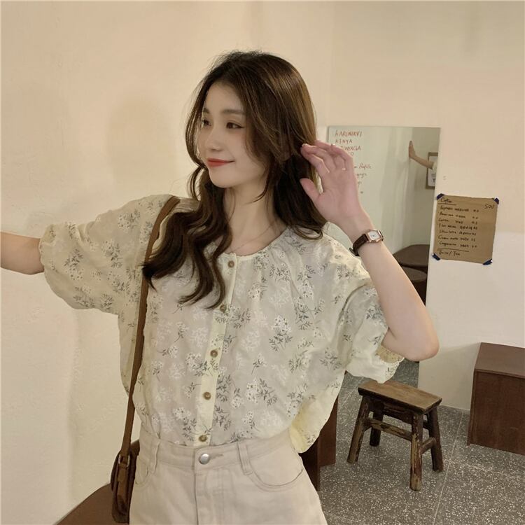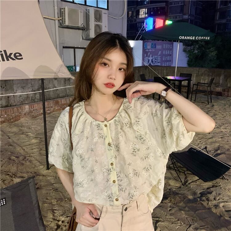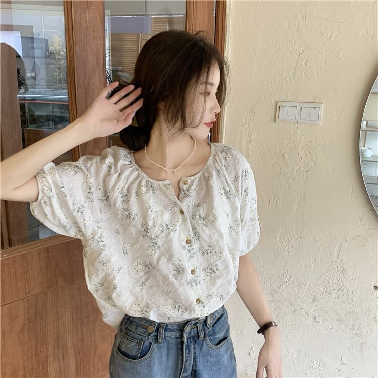 年齢を減らすために壊れた花のルーズインデザインセンスの2022年夏の新バージョンラウンドネック気質半袖シャツトップ女性 サマー 夏物 Oネック フラワーデザイン 7460030718971617 | framboise21