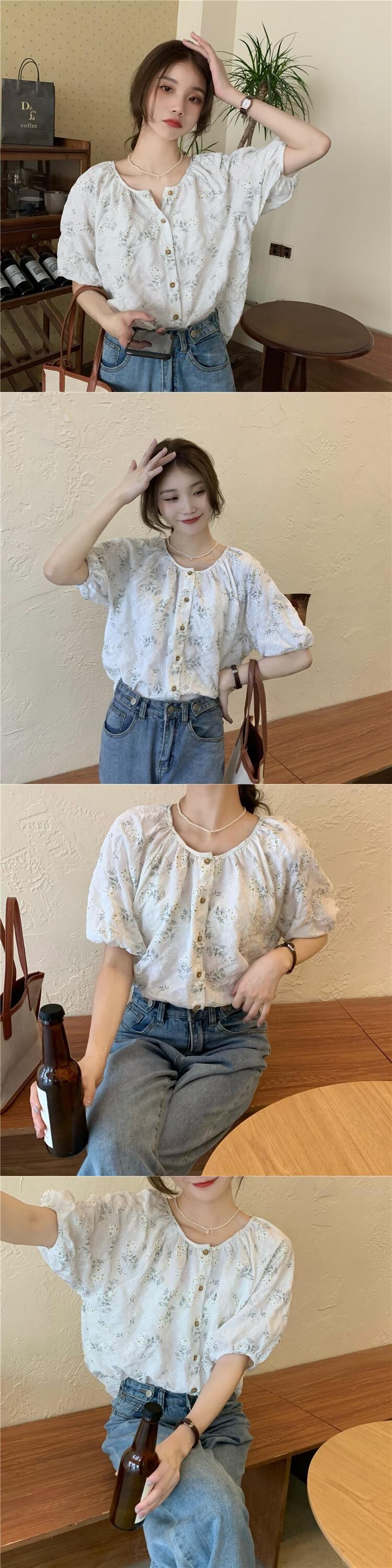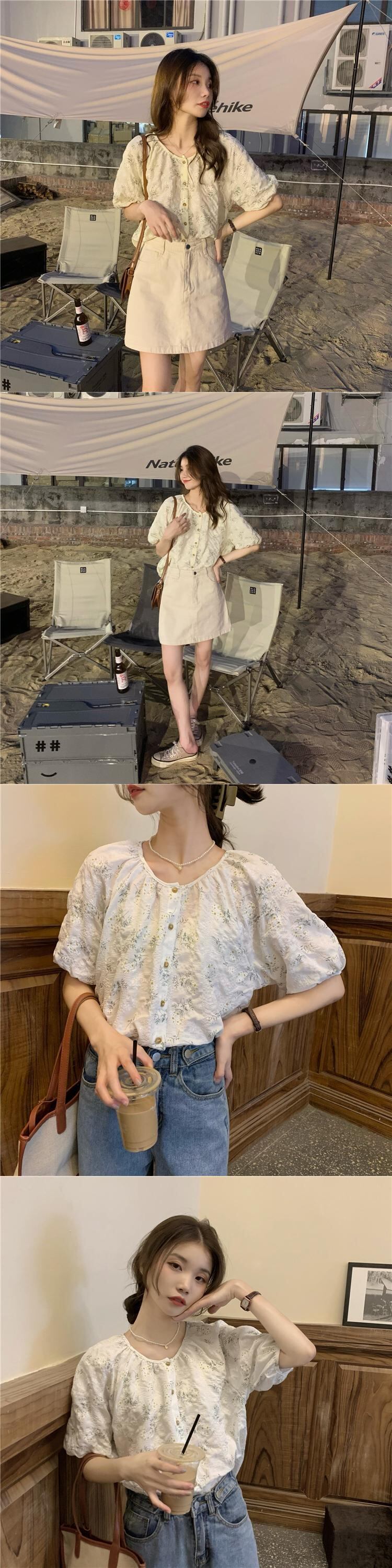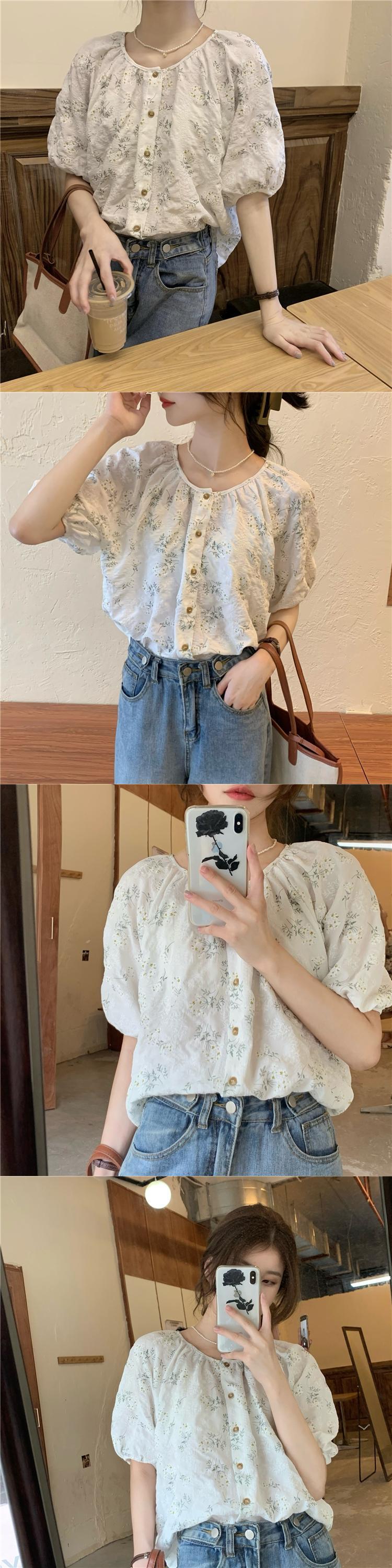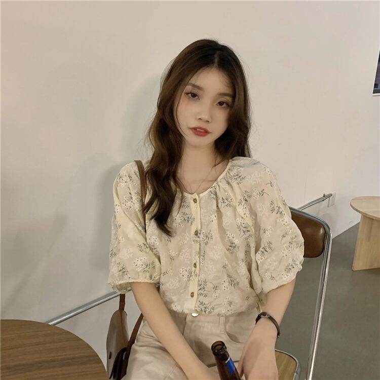 年齢を減らすために壊れた花のルーズインデザインセンスの2022年夏の新バージョンラウンドネック気質半袖シャツトップ女性 サマー 夏物 Oネック フラワーデザイン 7460030718971617 | framboise21