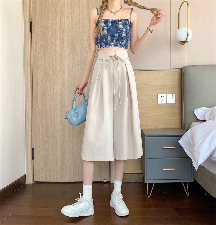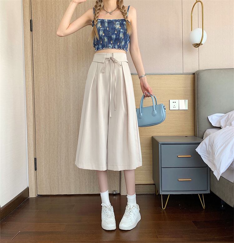 ワイドレッグキュロット7点スモールウィメンズニューサマーカジュアルパンツハイウエストドレープローズパンツニッチなデザイン感 ハイウェスト 夏物 ワイドパンツ 7460071956570028 | framboise21