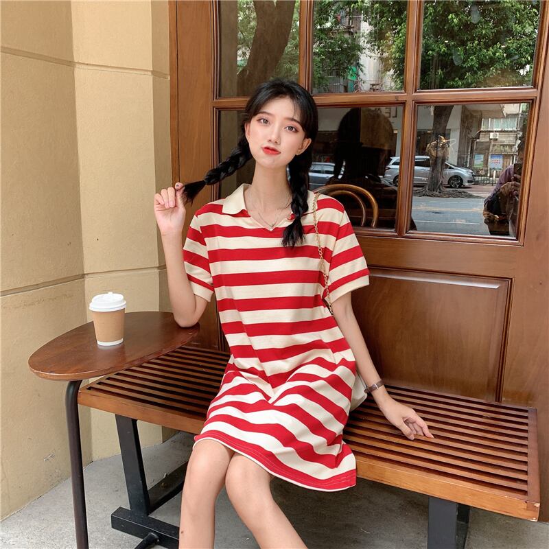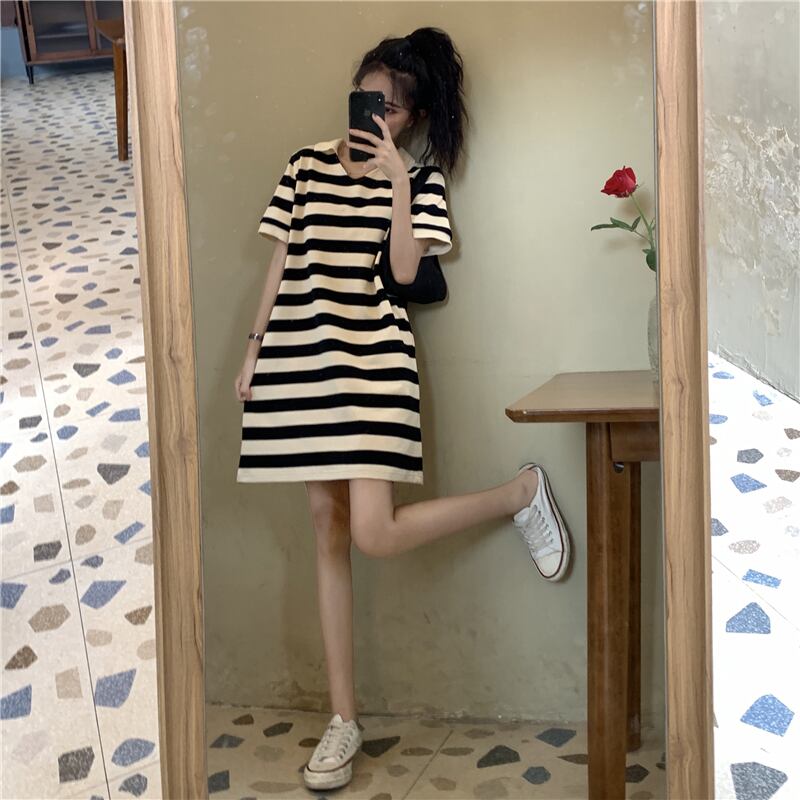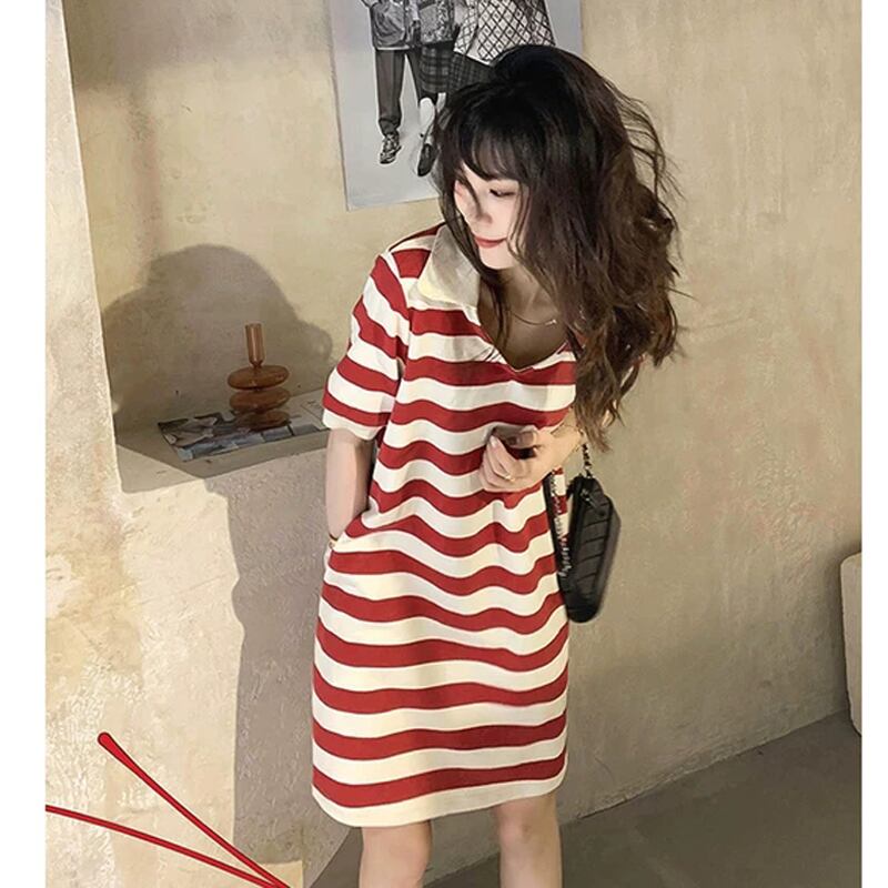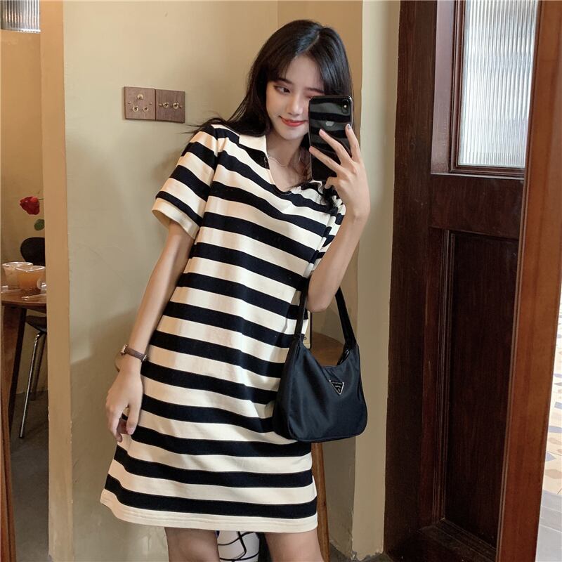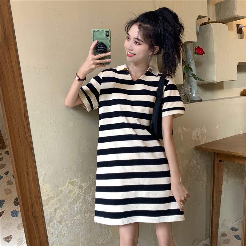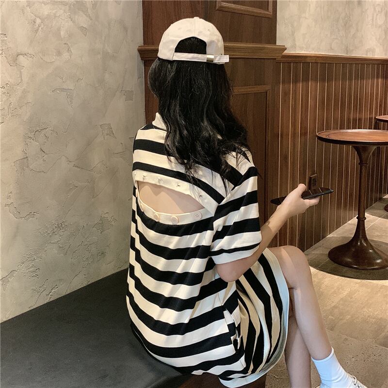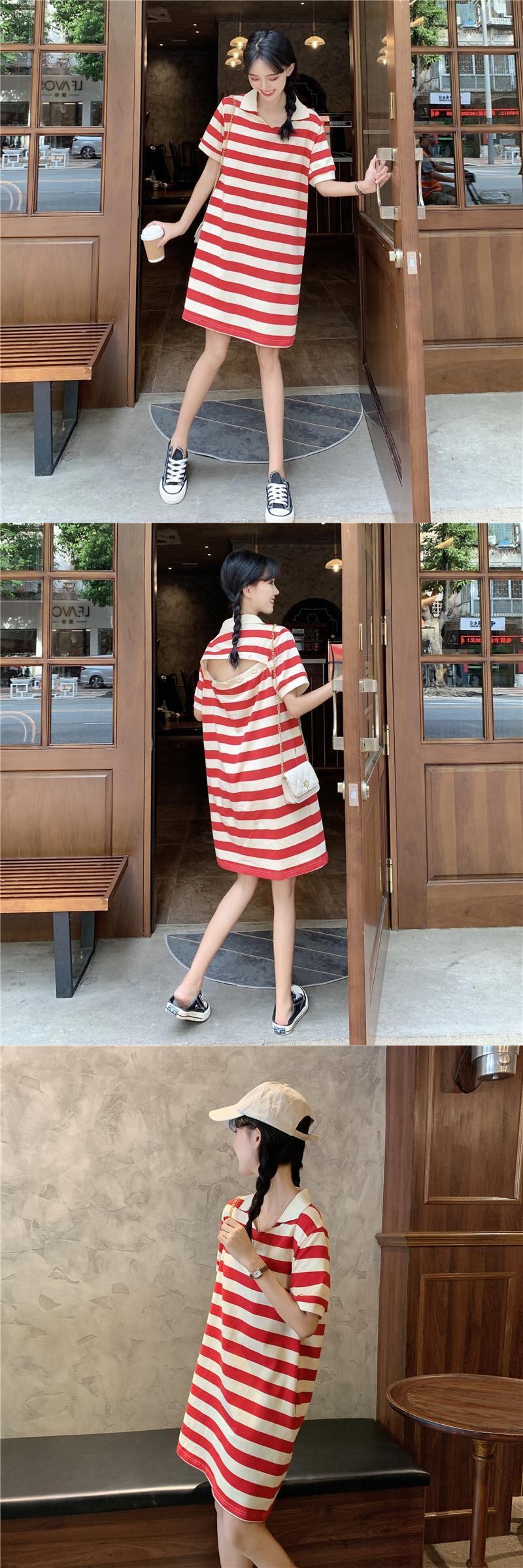 2022年夏の新しいティーブレイクフランスのニッチなデザインのハイエンドヘップバーンスタイルのポロストライプの背中の開いたドレスの女性 サマー 夏物 7460035551836304 | framboise21