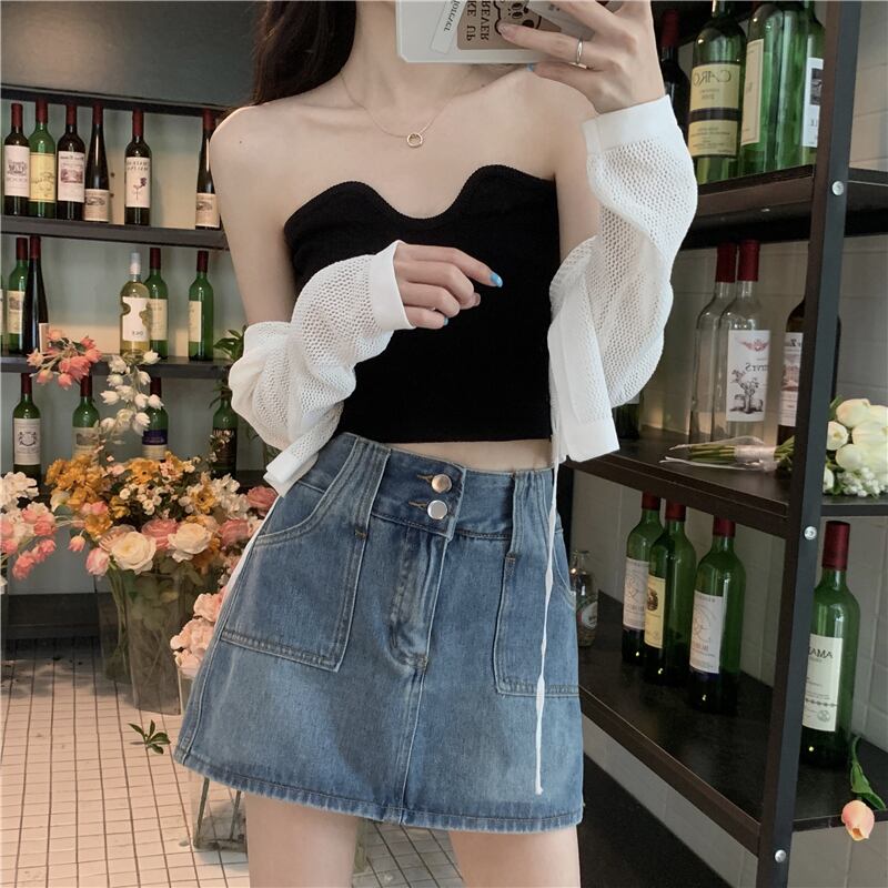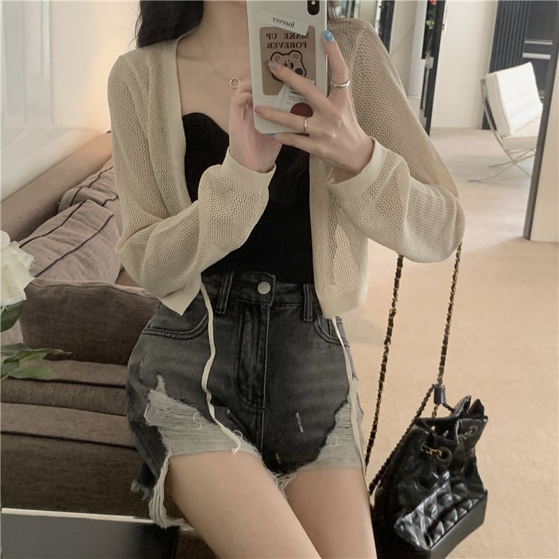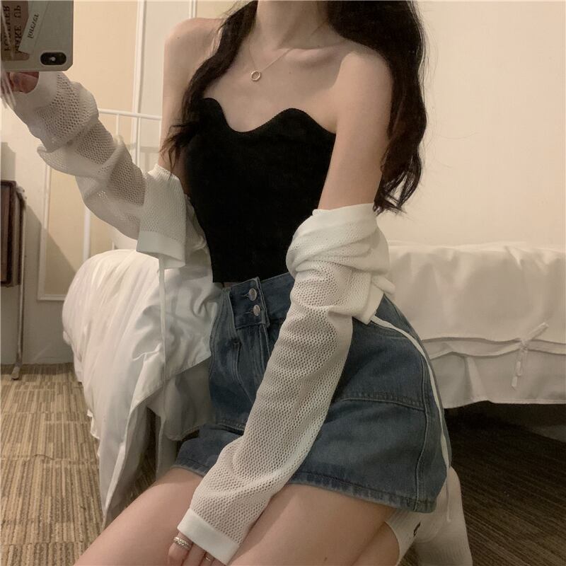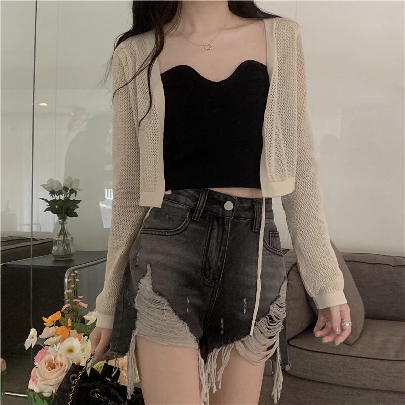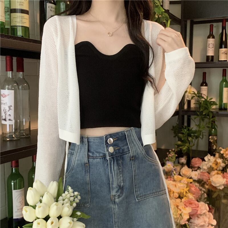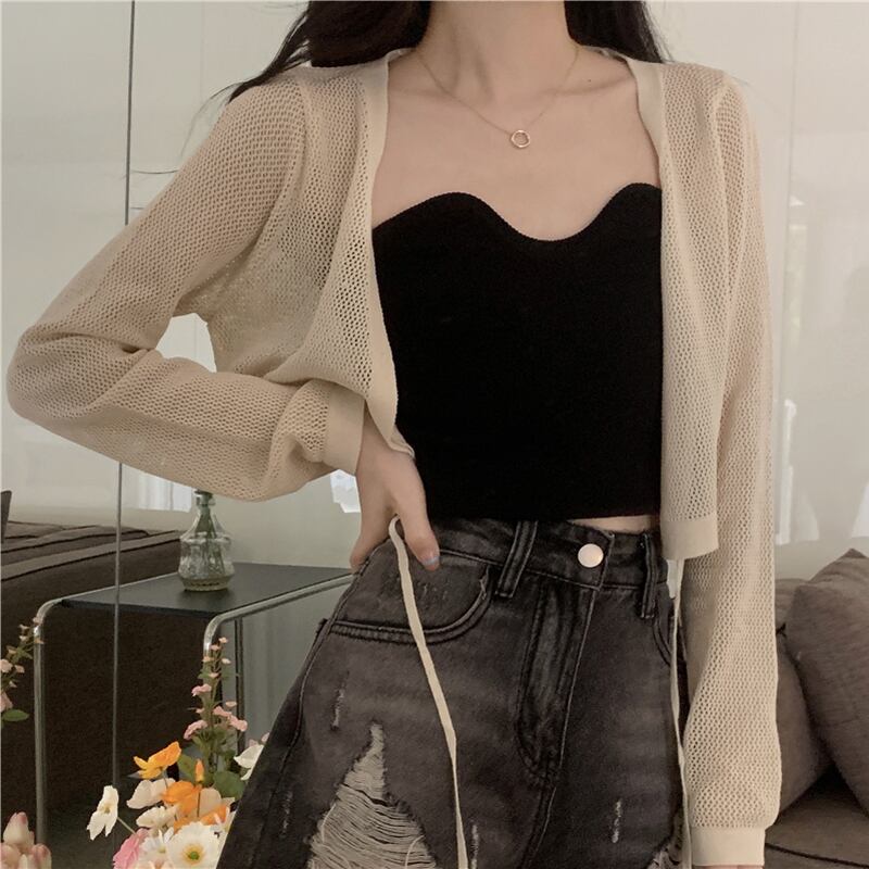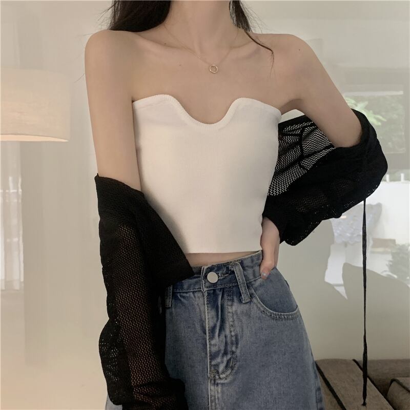 色:白いカーディガン,ブラックカーディガン,白いチューブトップ,アプリコットカーディガン,黒いチューブトップ