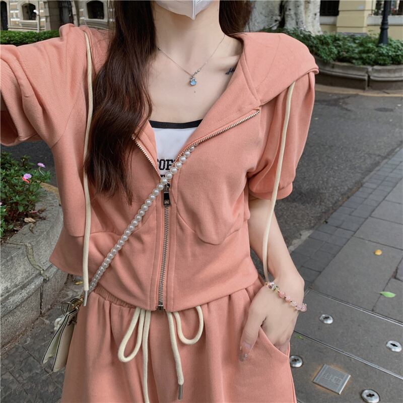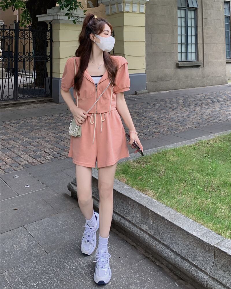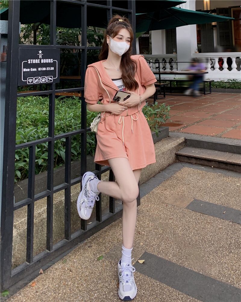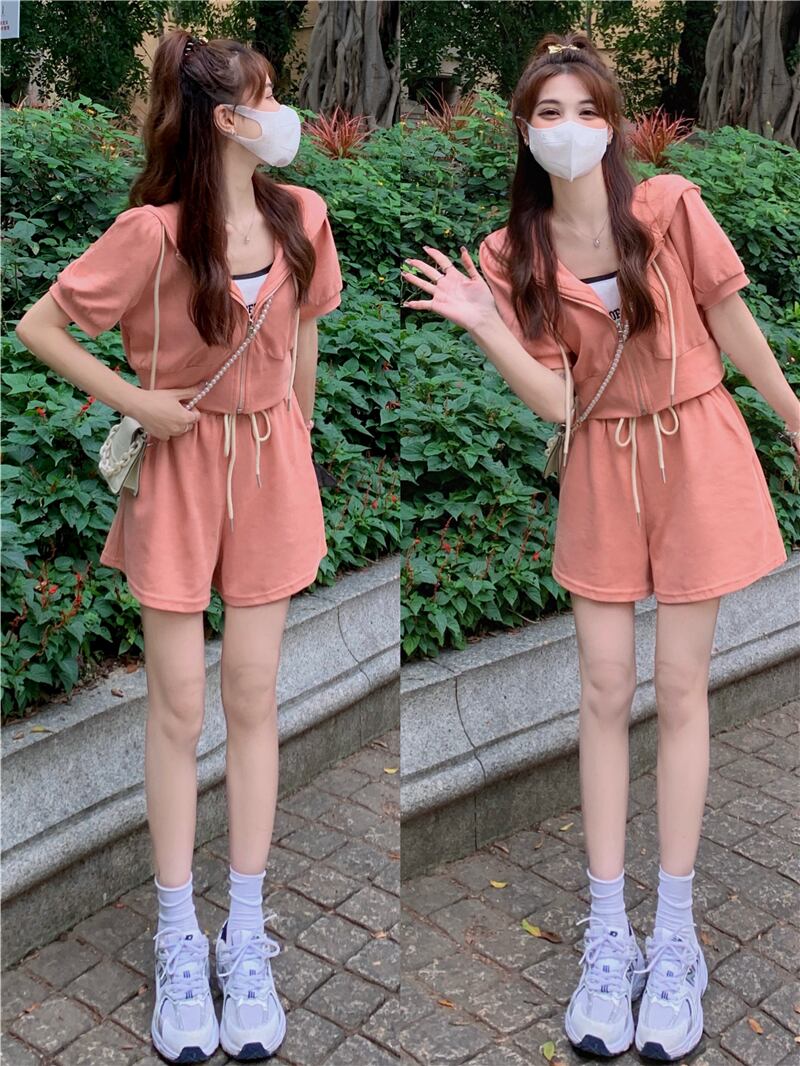 2022年インターネットセレブ年齢減塩半袖カジュアルスポーツスーツレディースサマースモールセーターショーツツーピースセット 夏物 ブルマー 7460086725519122 | framboise21