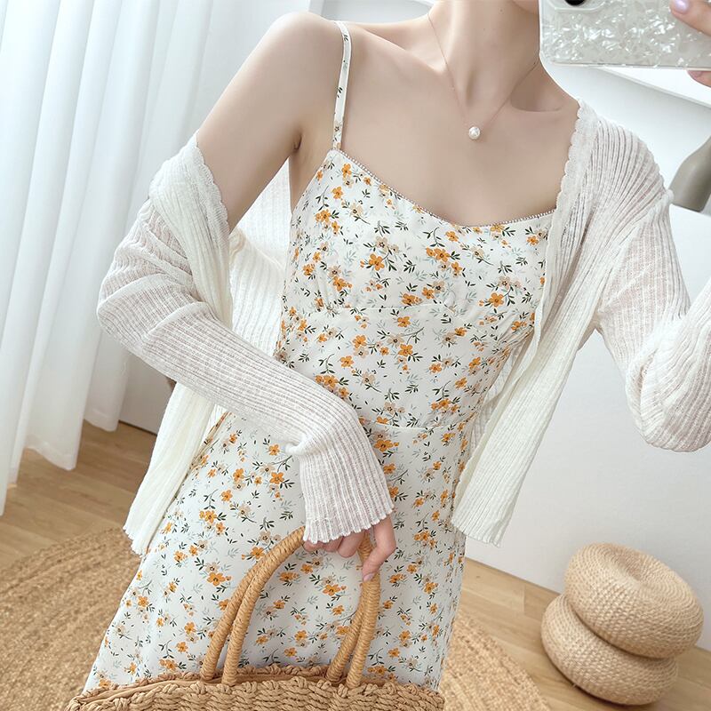 ニットサンスクリーンカーディガンレディースサマーシンアイスシルクブラウススモールコートホワイトショートエアコンシャツサスペンダースカート付き 夏物 746007597830460 | framboise21