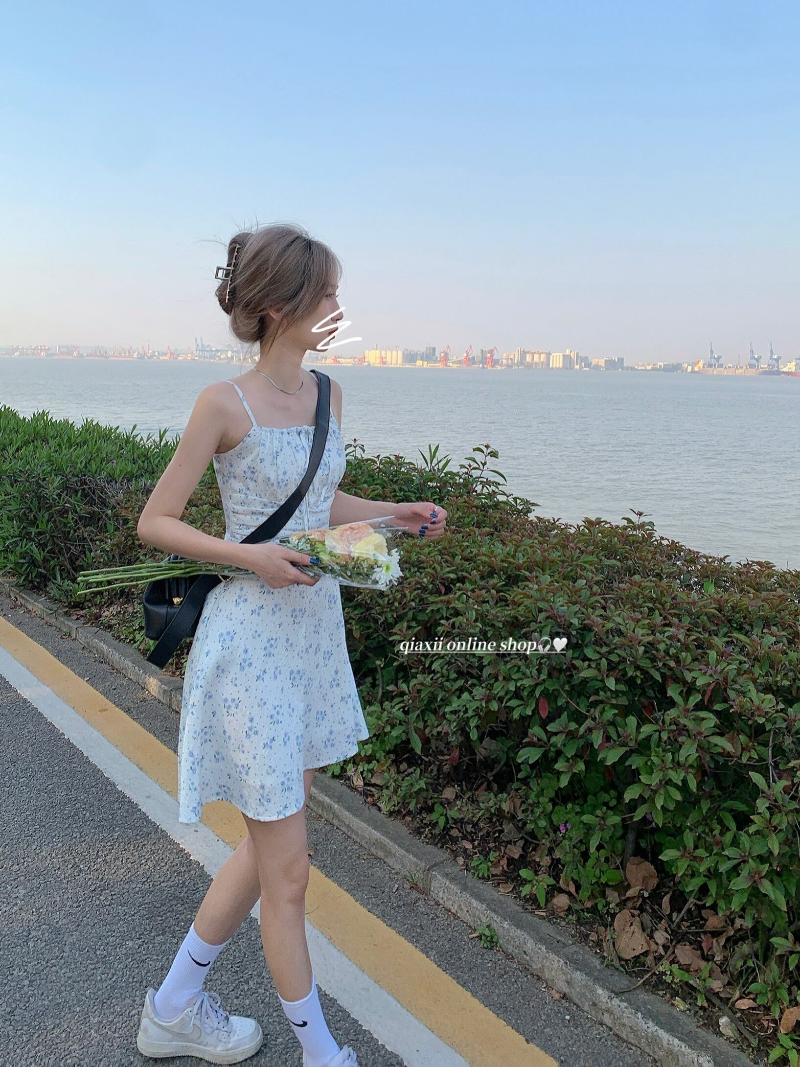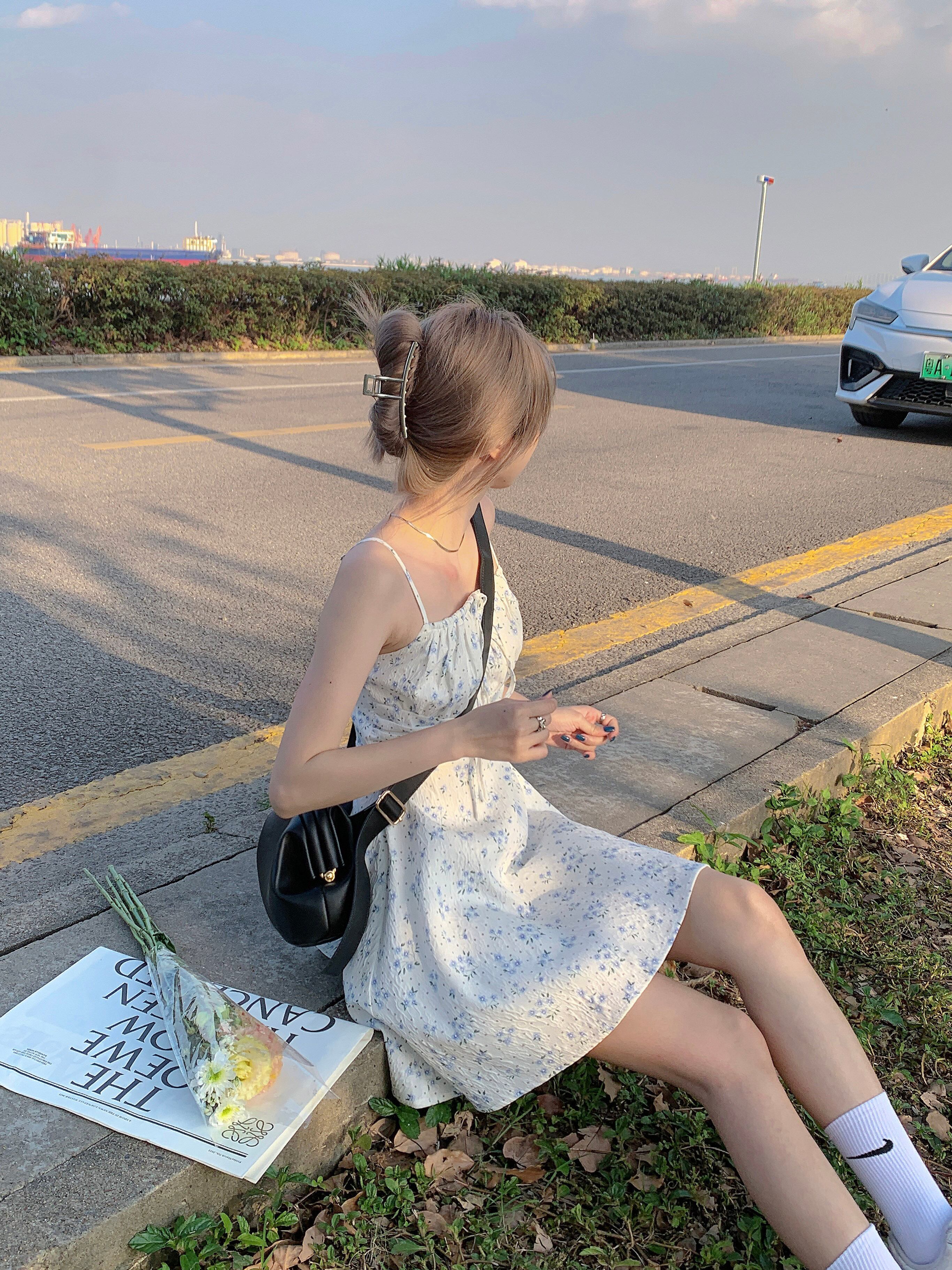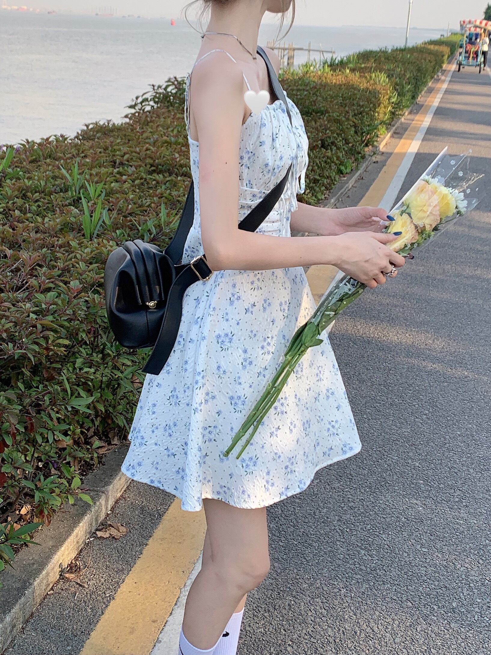 小さな花柄のドレス女性の夏の細いチューブトップサスペンダースカート甘いデザインウエストセクシーなワンショルダースカート 大人ガーリー スウィート キュート カジュアル サマー 夏物 7460077378134646 | framboise21