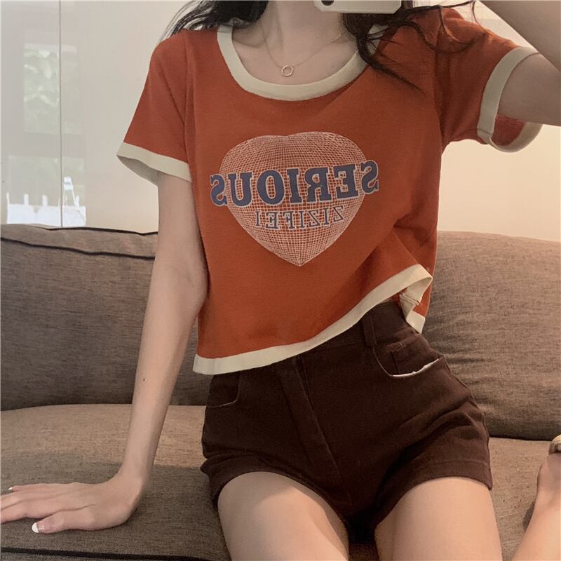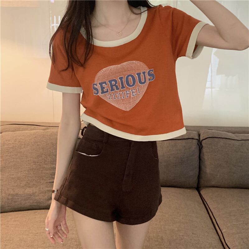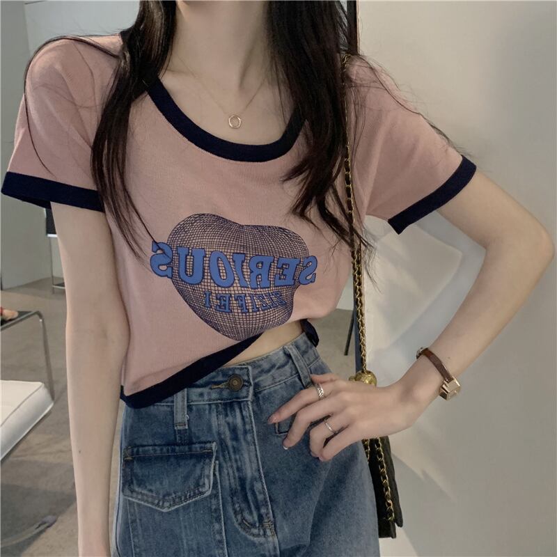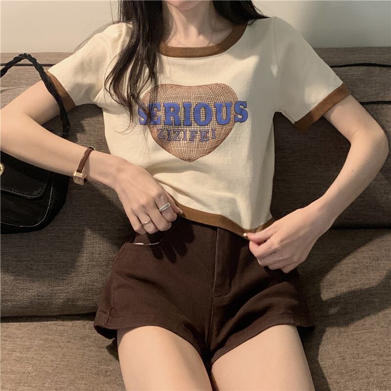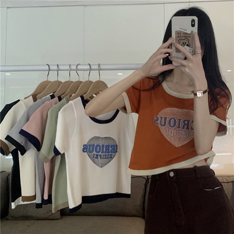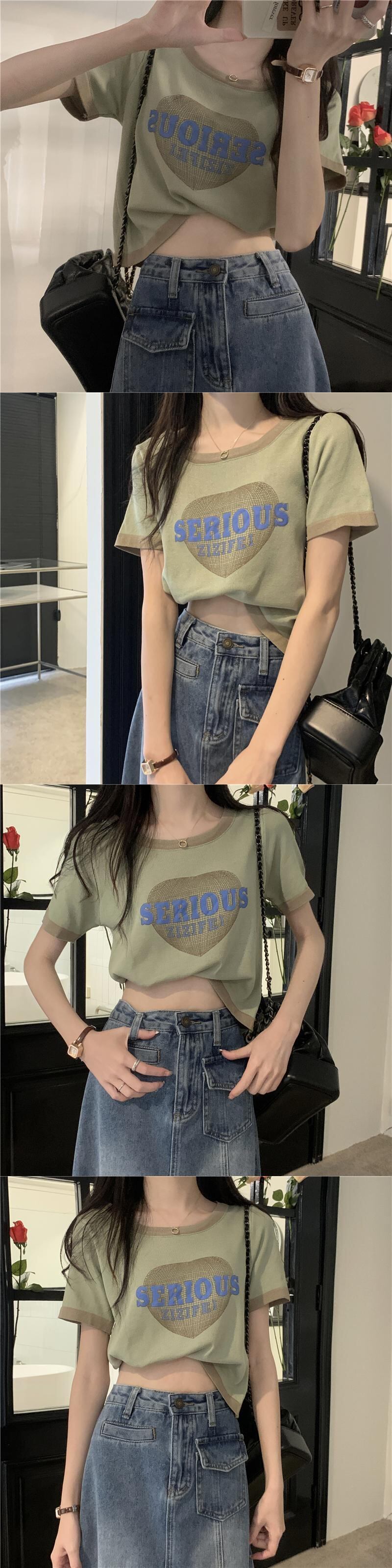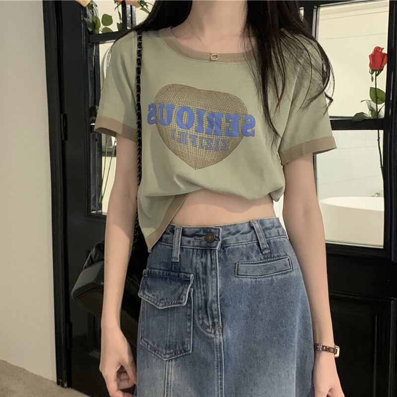 2022年夏新作アボカドグリーンアイスシルクニットトップレディースデザインセンスショートフロントショルダー半袖Tシャツ ハーフスリーブ サマー 夏物 7460088946961251 | framboise21