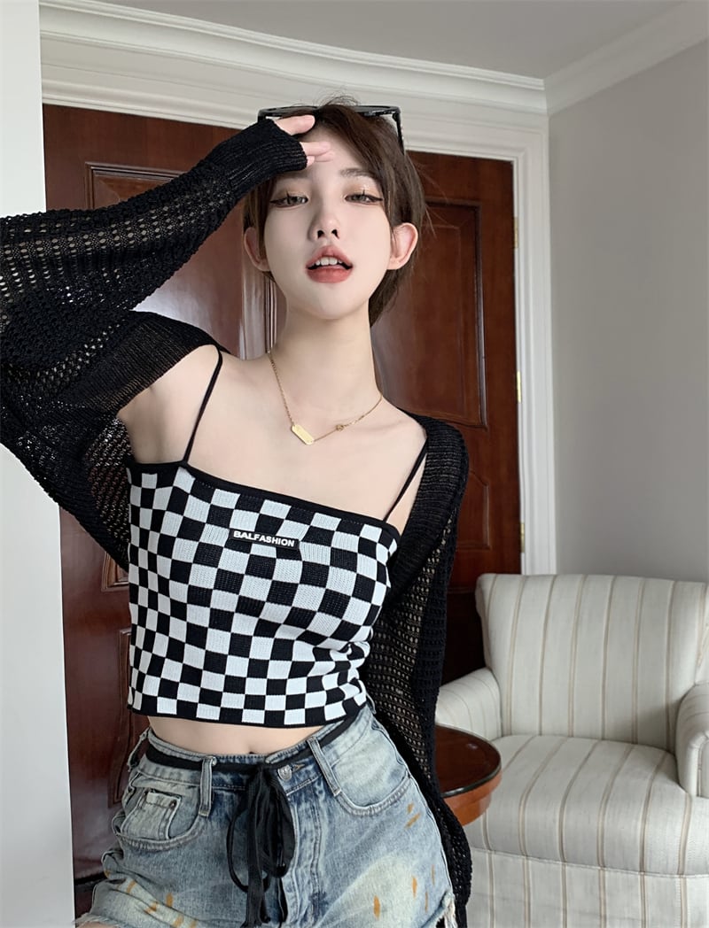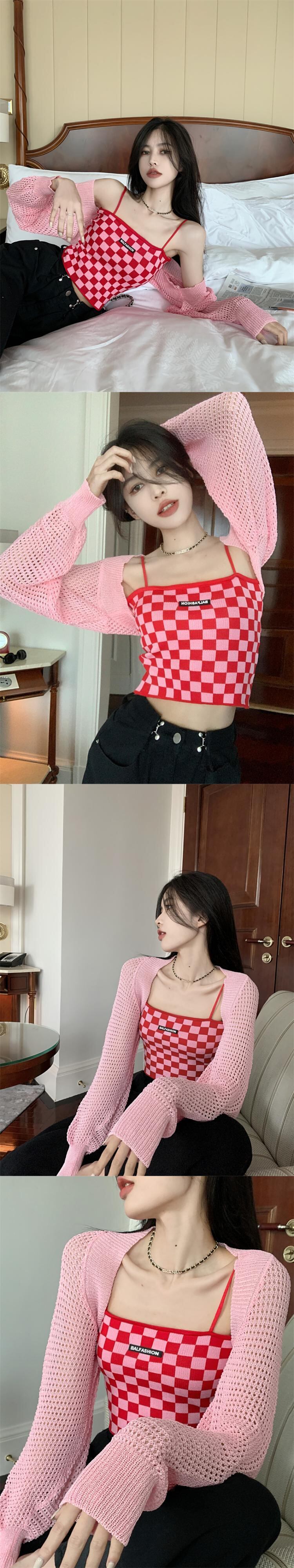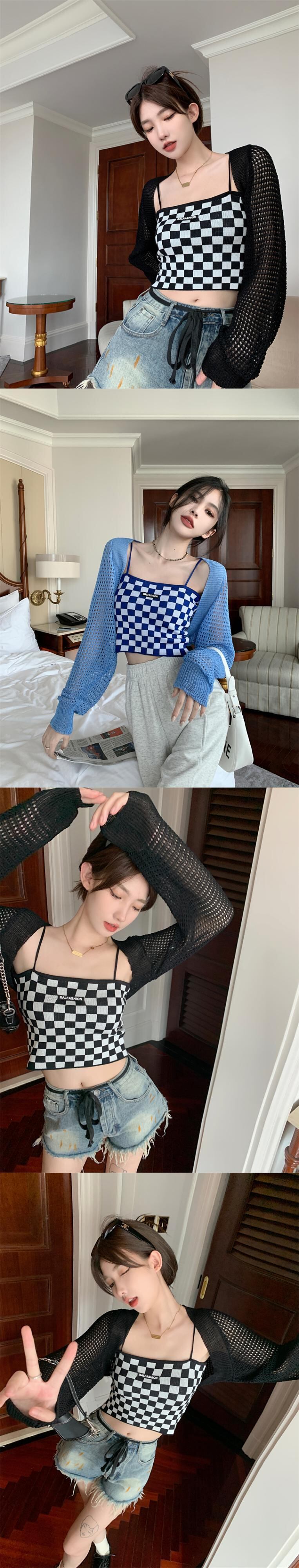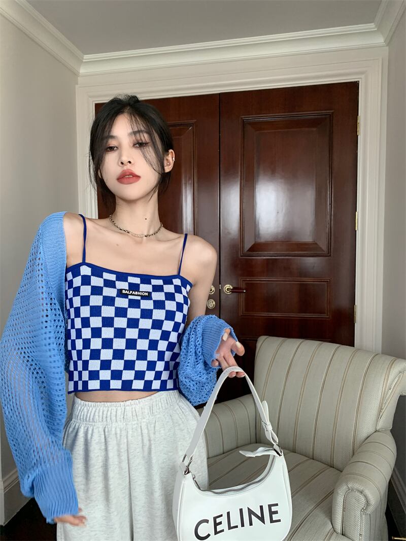 白い中空の日焼け止めカーディガン女性の夏の薄いニットのスモックコート、外側にサスペンダー、ハーフチョッキと小さなショール ホワイト サマー 夏物 7460043710586197 | framboise21