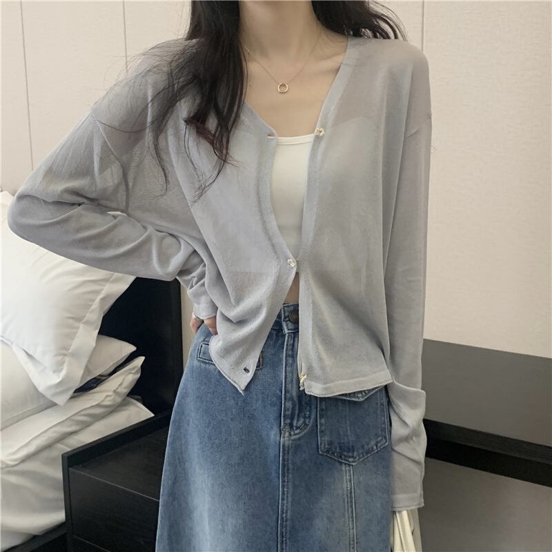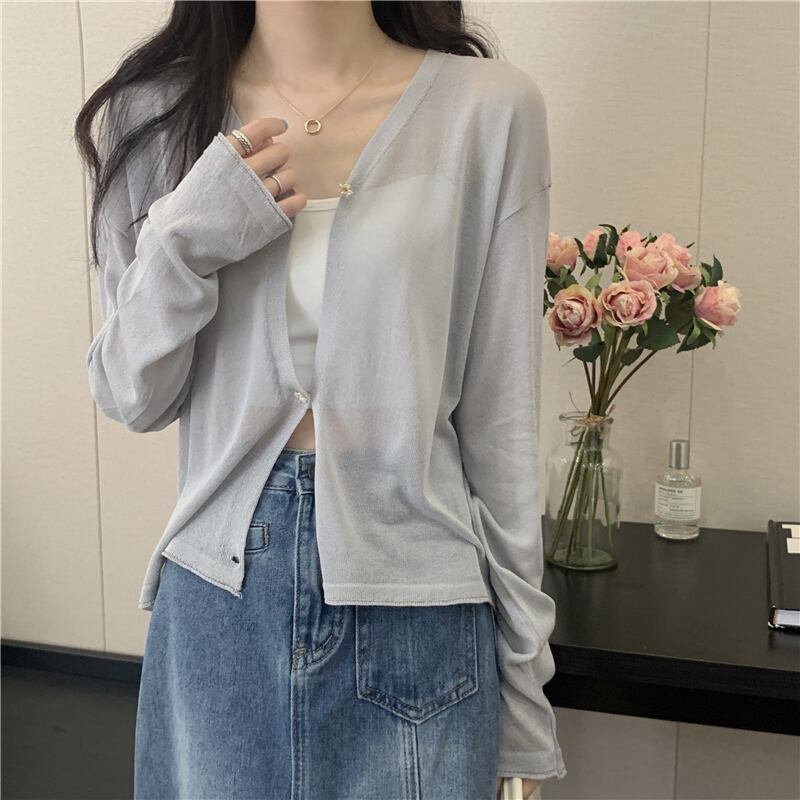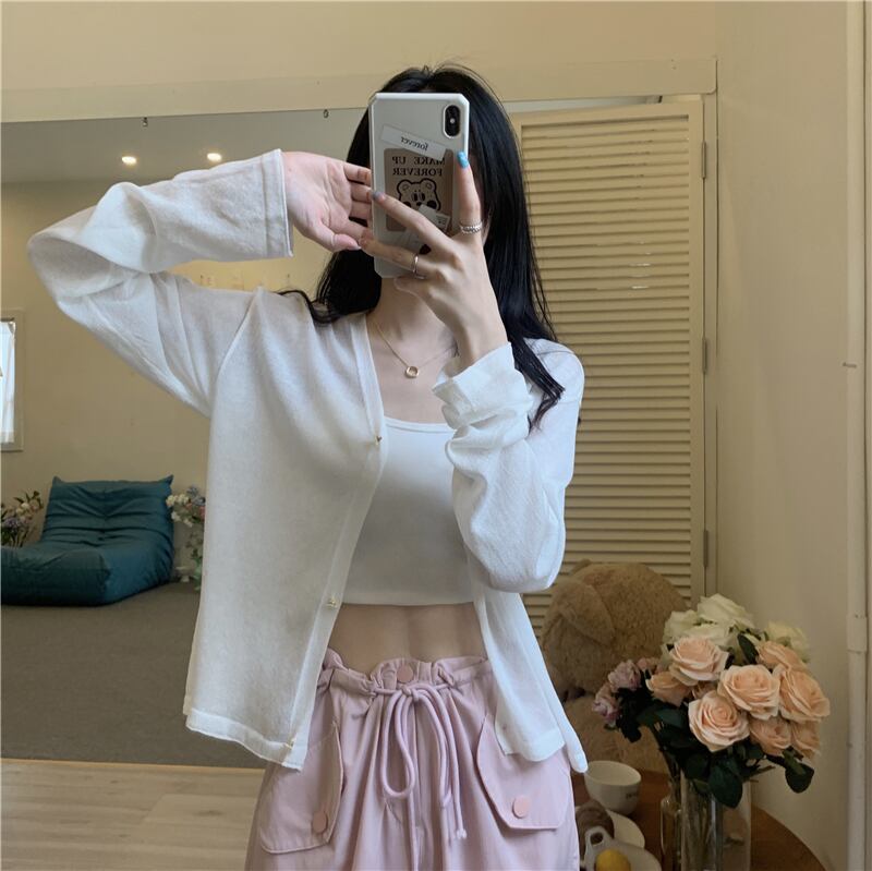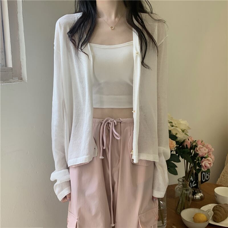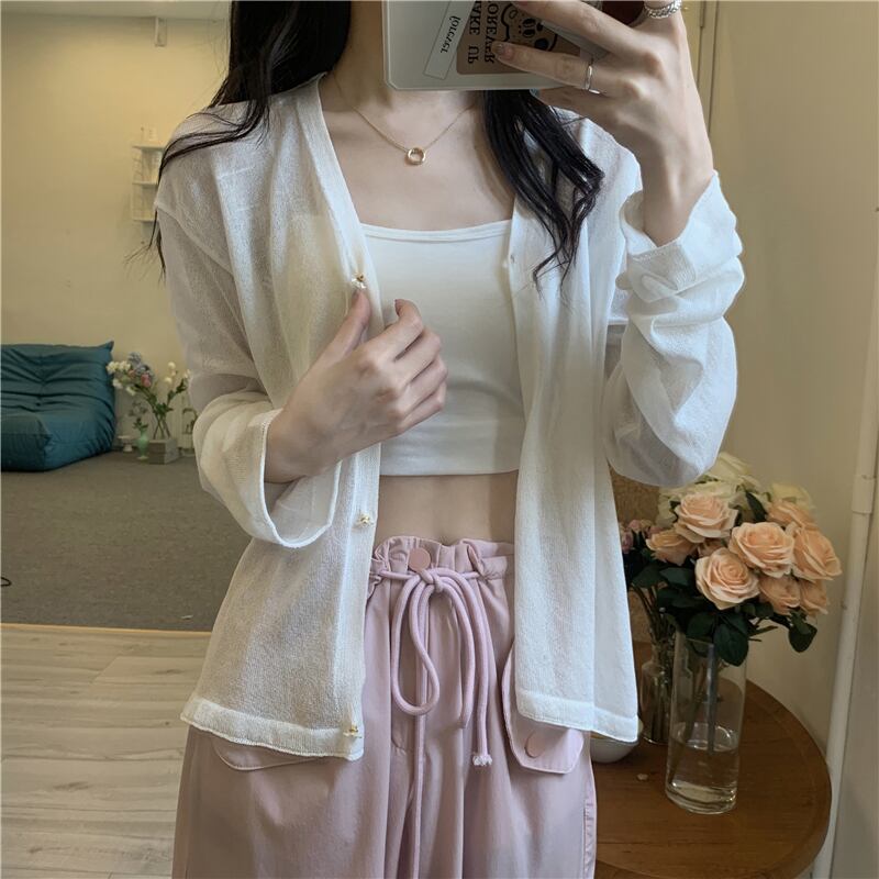 ホワイトアイスシルクサンスクリーンレディースサマー薄手ニットカーディガンコート、サスペンダーと半袖ショールブラウス ショート ロング 夏物 7460088575639485 | framboise21