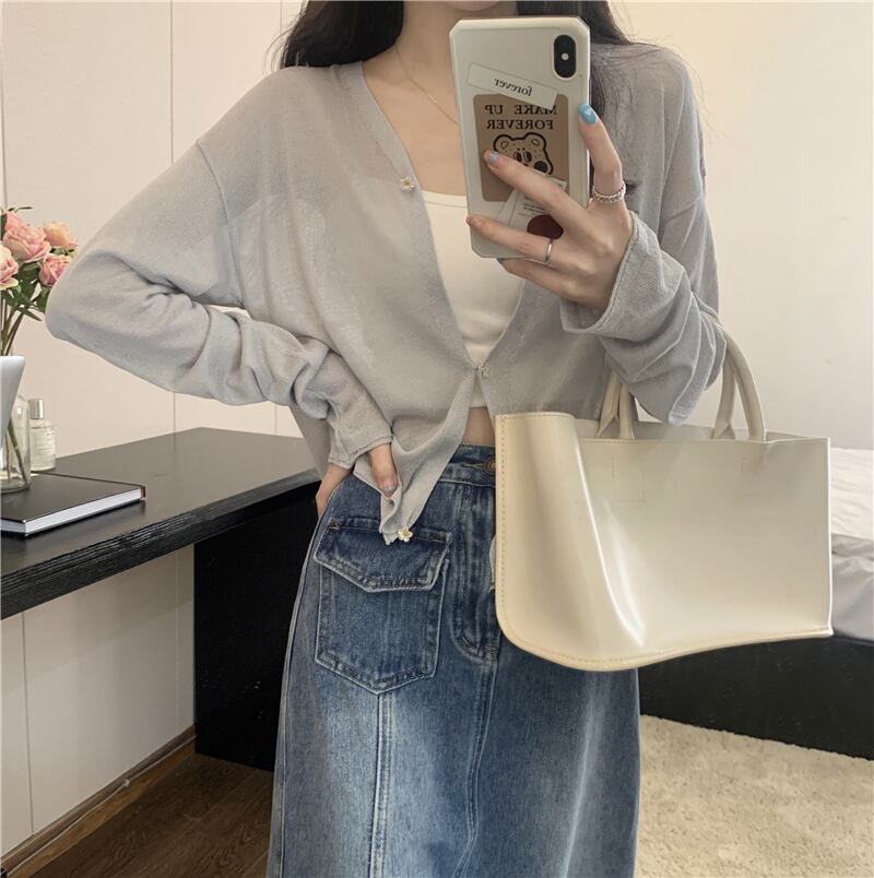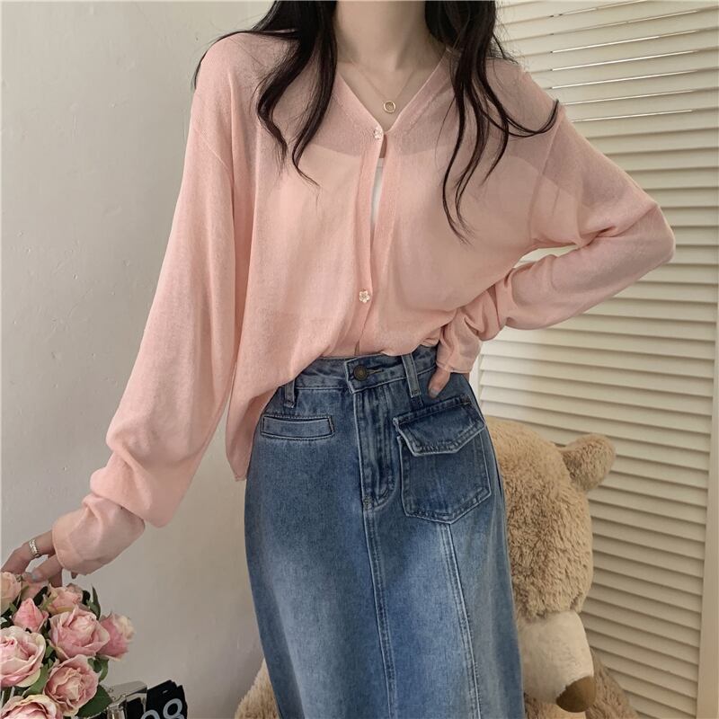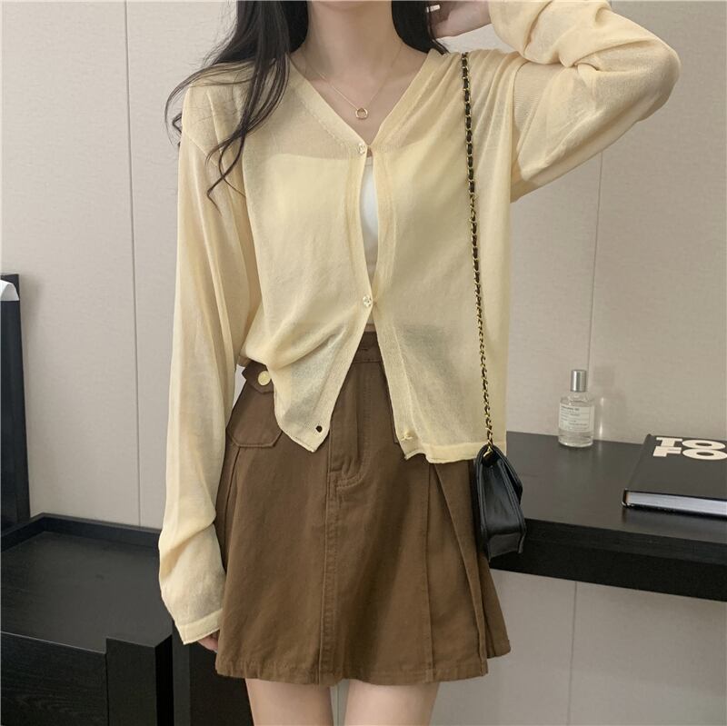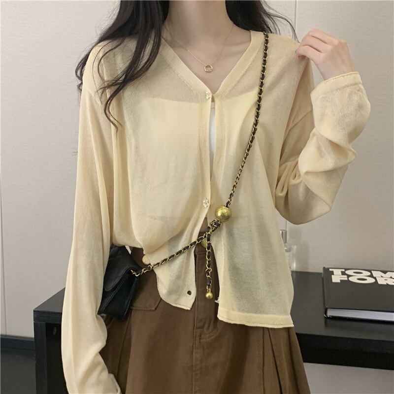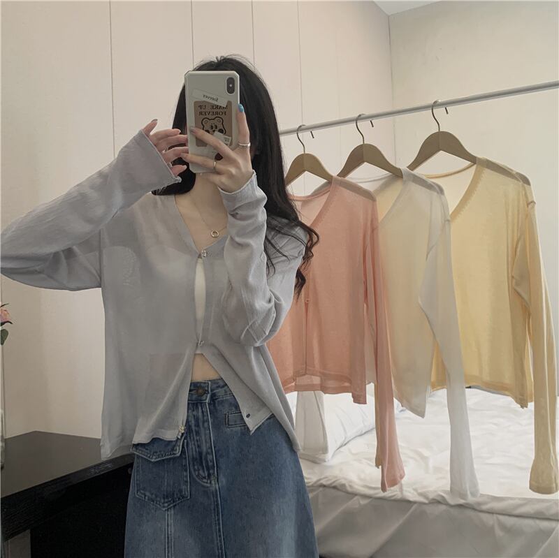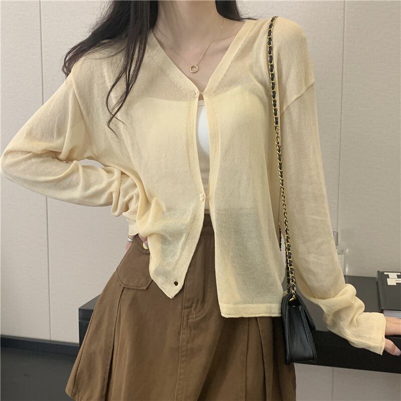 ホワイトアイスシルクサンスクリーンレディースサマー薄手ニットカーディガンコート、サスペンダーと半袖ショールブラウス ショート ロング 夏物 7460088575639485 | framboise21
