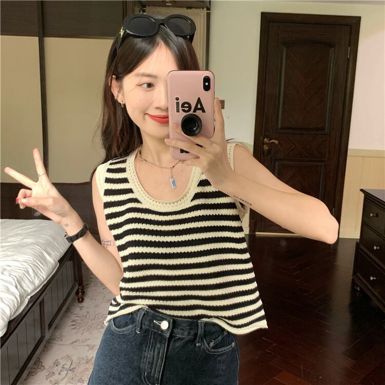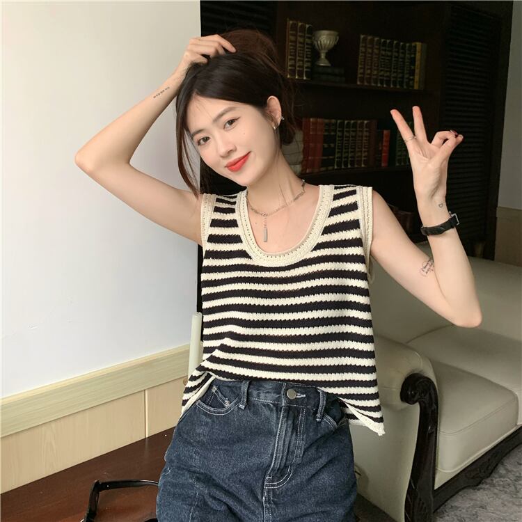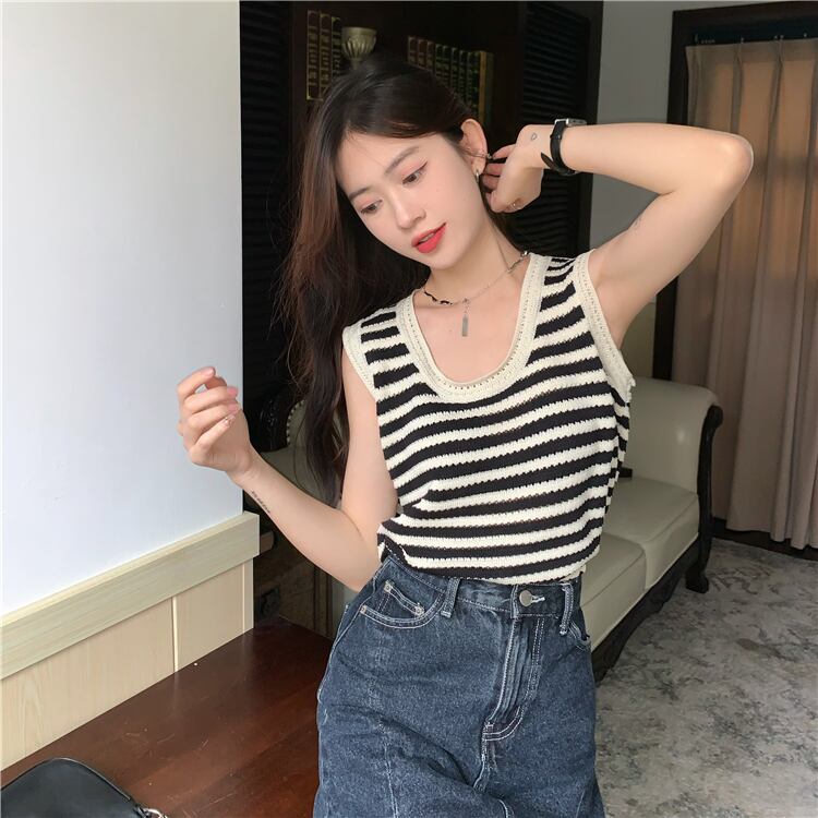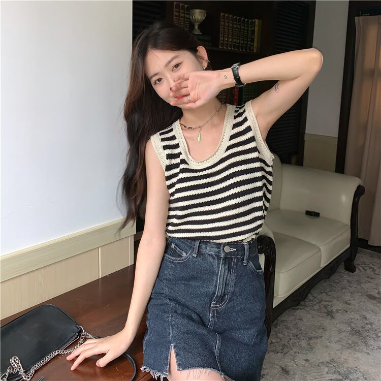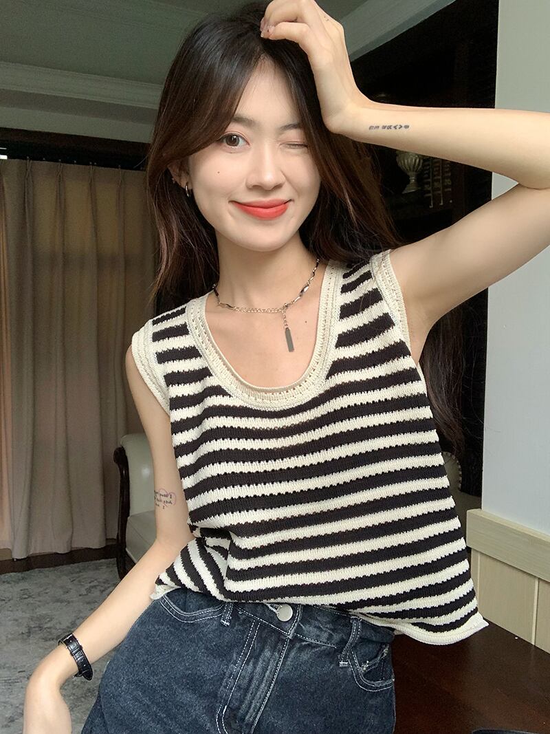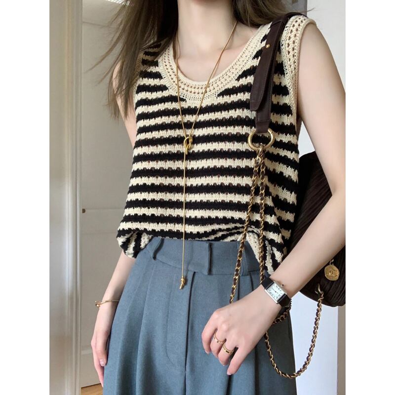 ストライプの小さなキャミソールの女性の夏のデザインセンスのニッチな内側と外側の摩耗薄いチョッキ中空ボトミングシャツトレンディ サマー 夏物 7460070308566159 | framboise21