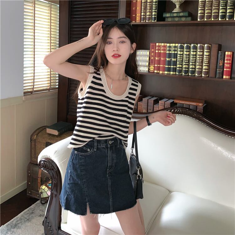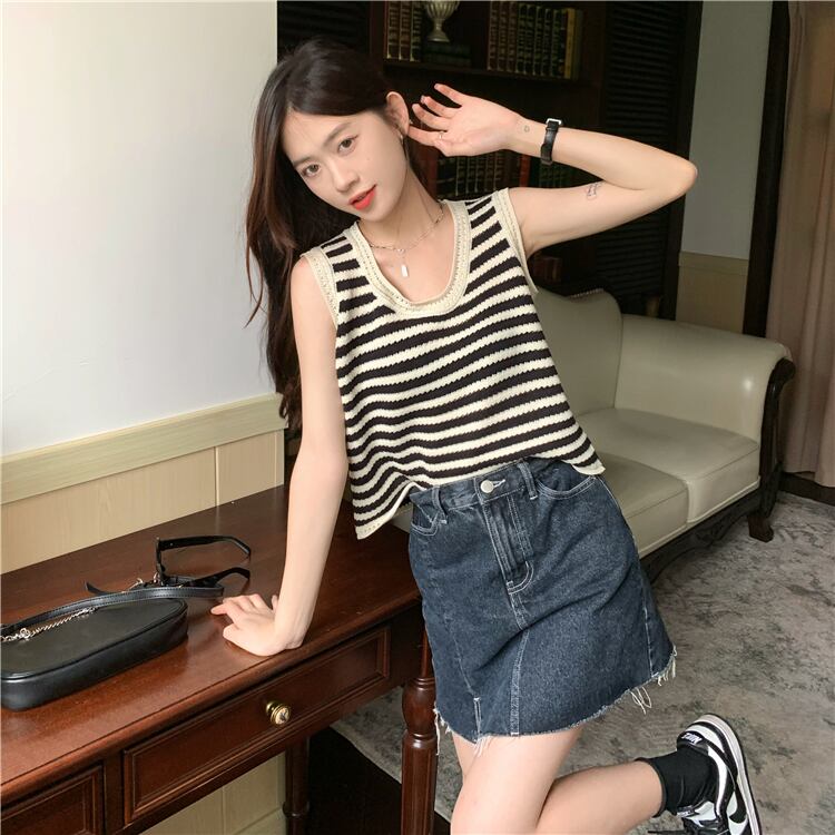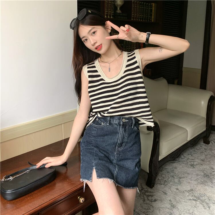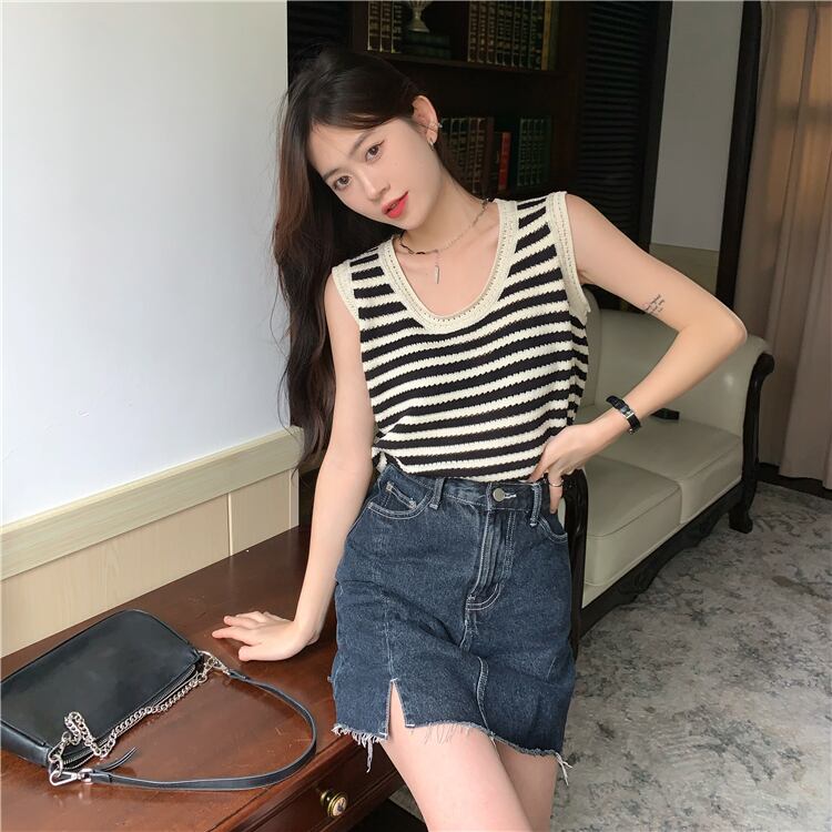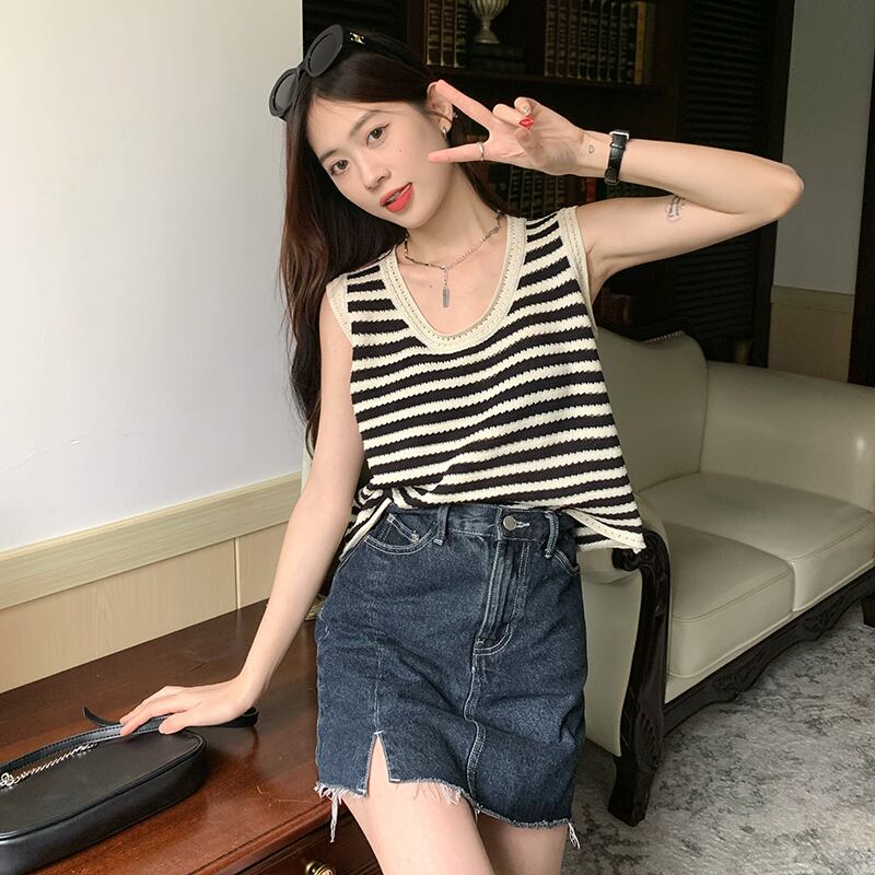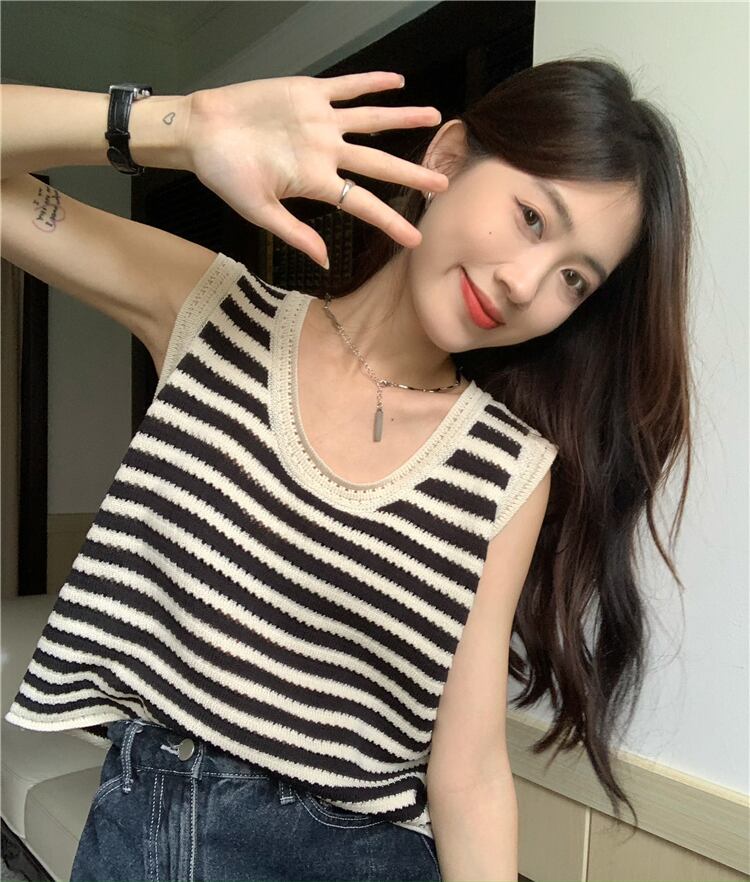 ストライプの小さなキャミソールの女性の夏のデザインセンスのニッチな内側と外側の摩耗薄いチョッキ中空ボトミングシャツトレンディ サマー 夏物 7460070308566159 | framboise21
