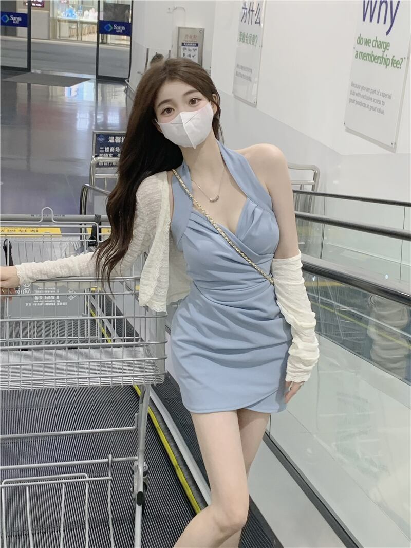 ハンギングネックドレス女性の夏の純粋な欲望スタイルのサスペンダースカートデザインスリムウエストセクシーバッグヒップショートスカート サマー 夏物 ピュア 7460060313454571 | framboise21