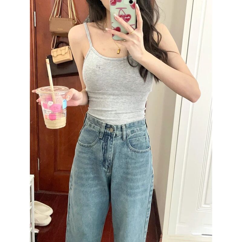 胸パッド付きグレーの小さなキャミソール女性の夏のインナーストラップチューブトップ下着デザインセンスアウタースポーツボトミングトップス サマー 夏物 7460021335761915 | framboise21