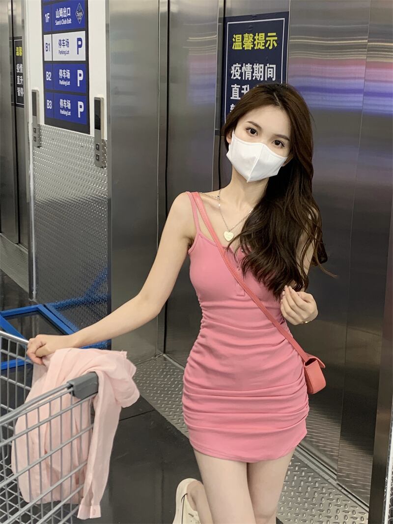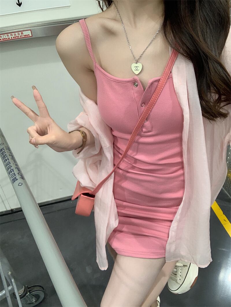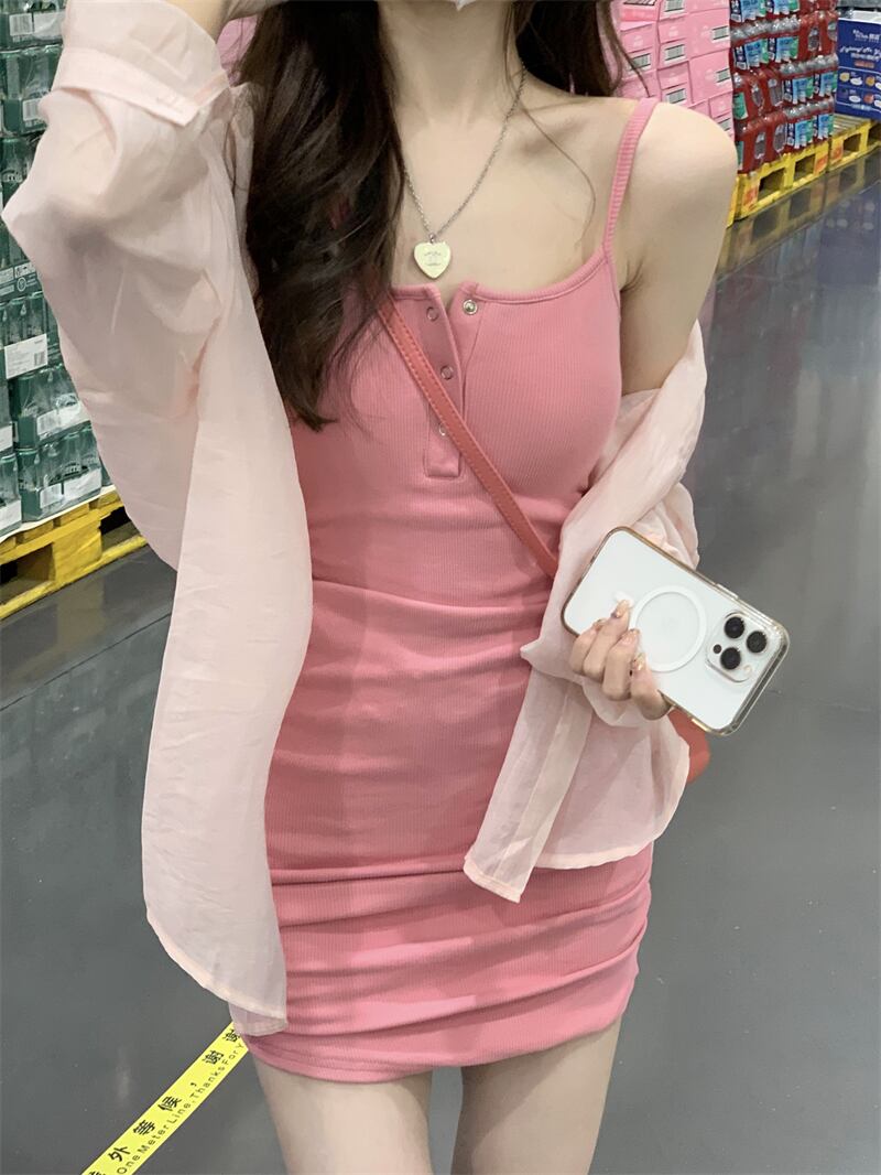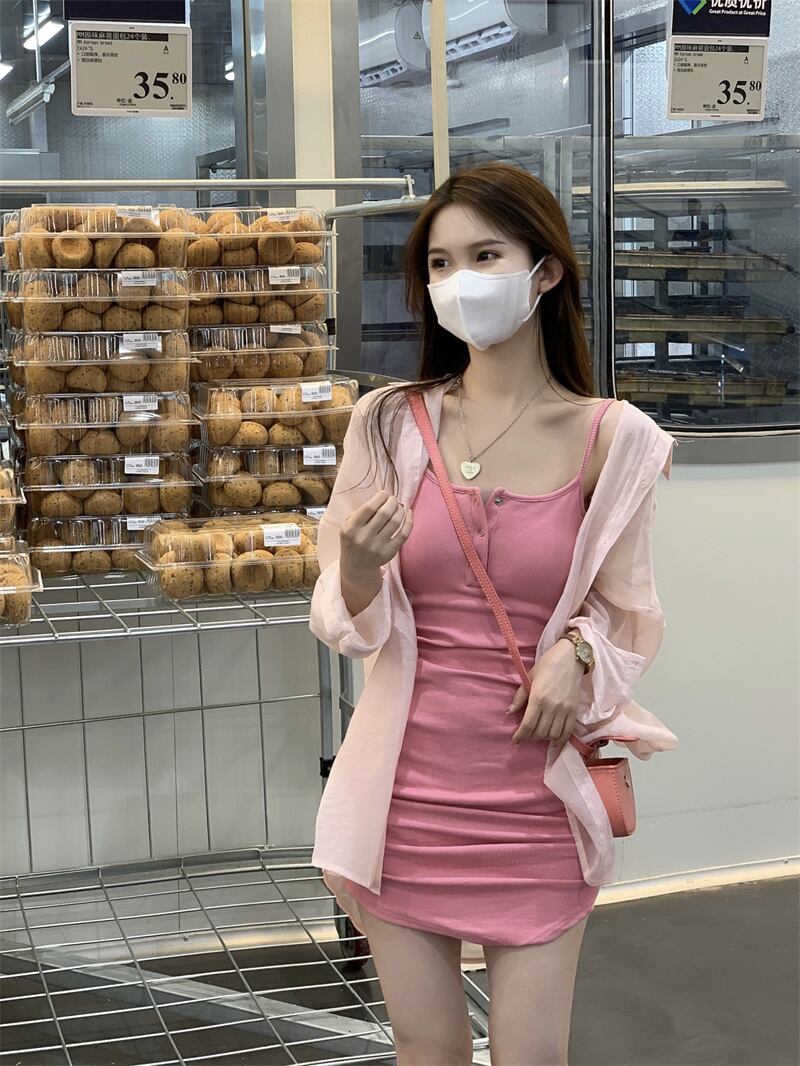 フランスの純粋な甘い小さな男純粋な欲望穏やかな風ピンクのサスペンダードレスツーピーススーツ女性の夏 大人ガーリー スウィート キュート カジュアル サマー 夏物 ピュア 7460022769803514 | framboise21