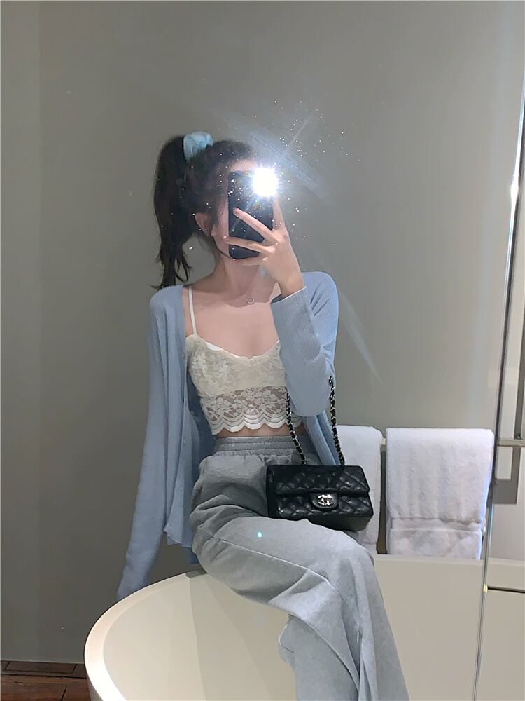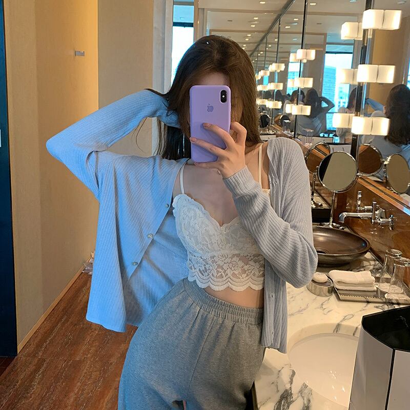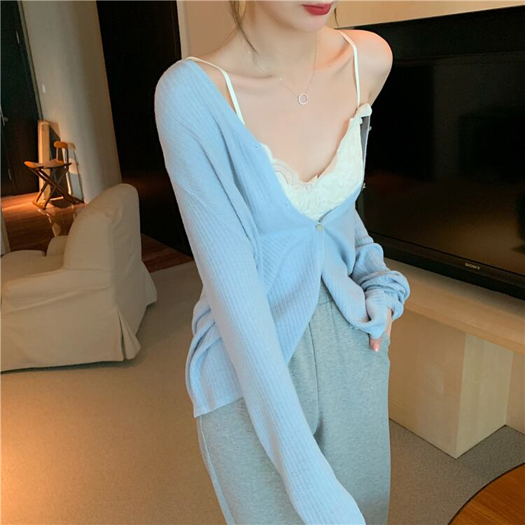 ブルーブラウス、アイスシルクエアコンシャツ、小さなショール、日焼け止めニットカーディガン、薄手のコート、長袖の女性用サマートップ ロング 夏物 7460090858790661 | framboise21