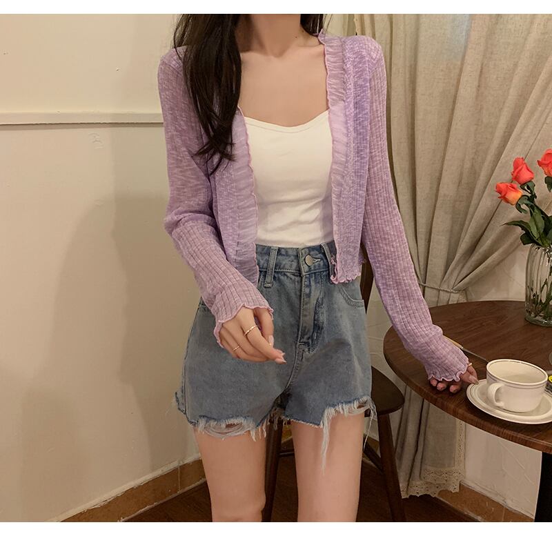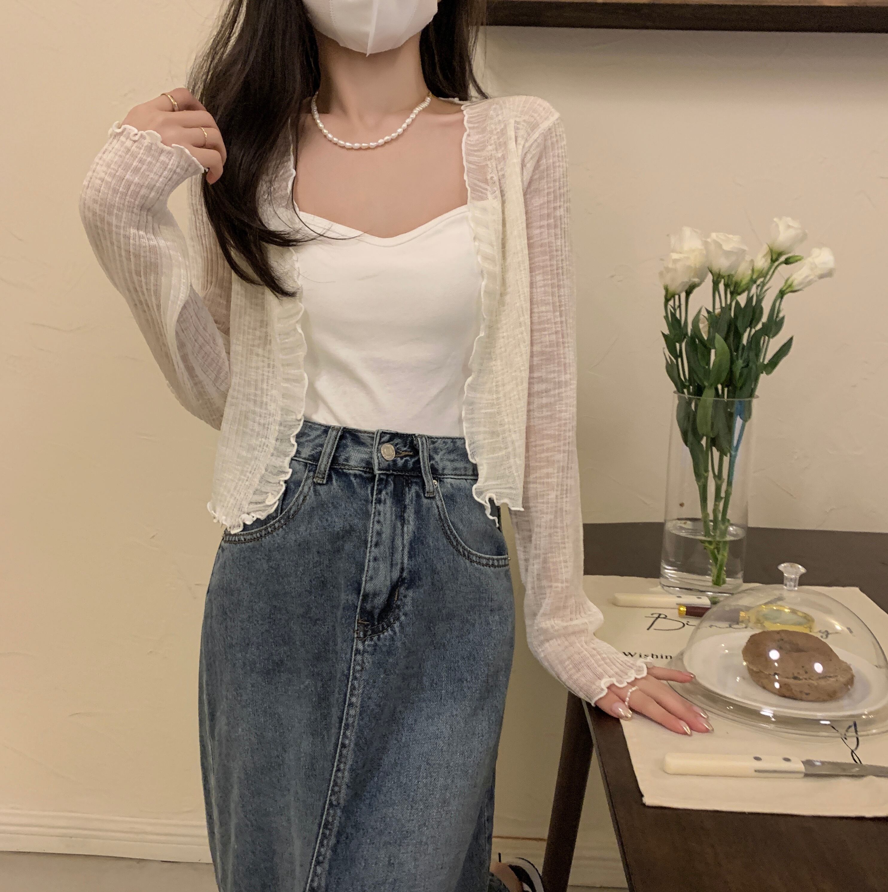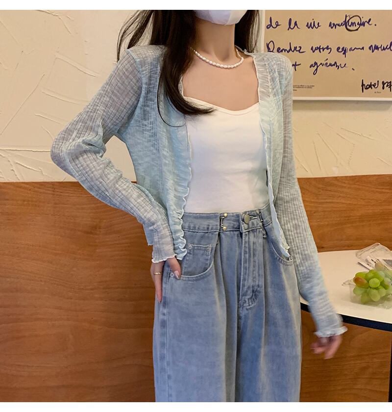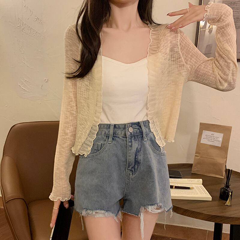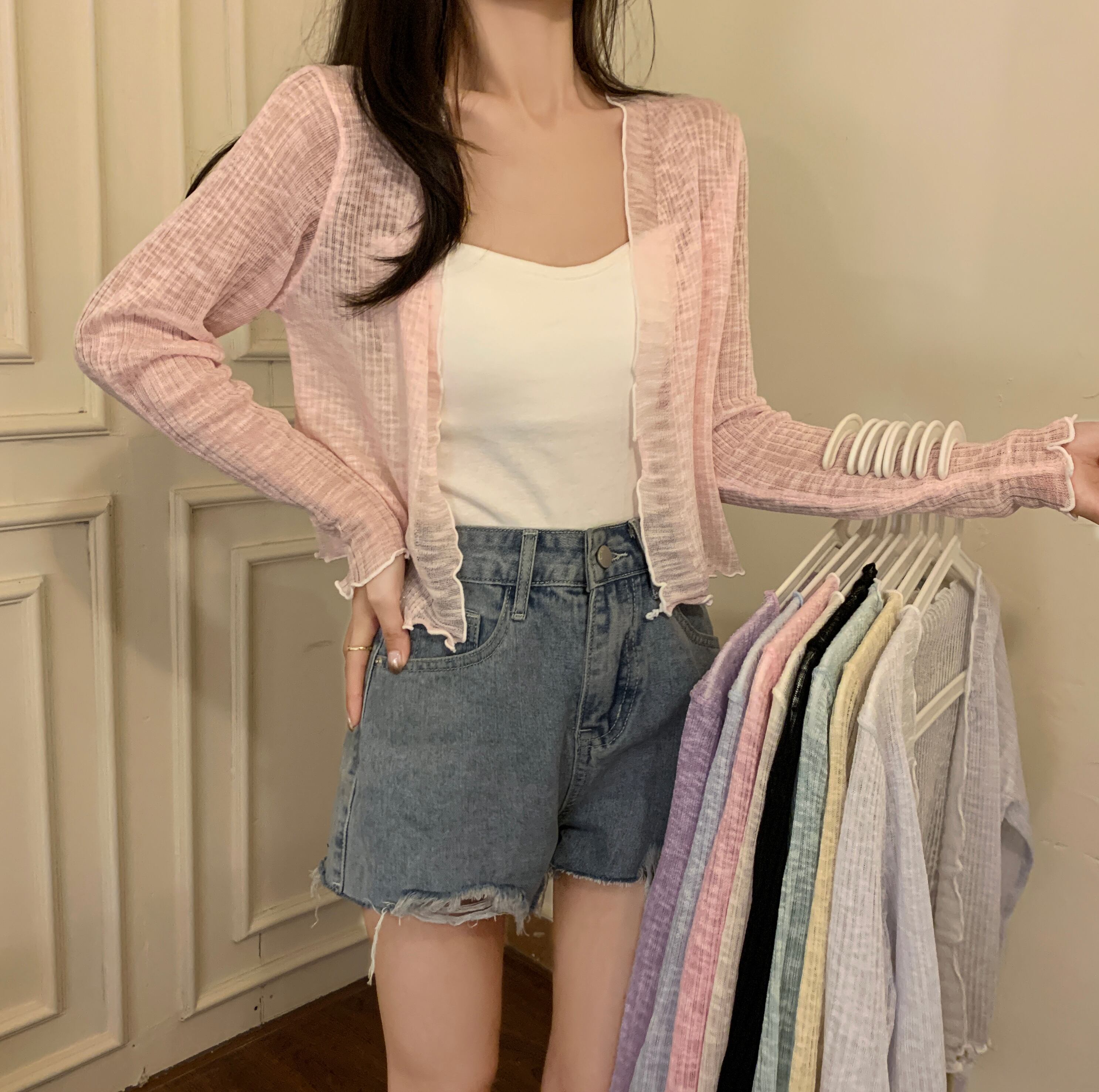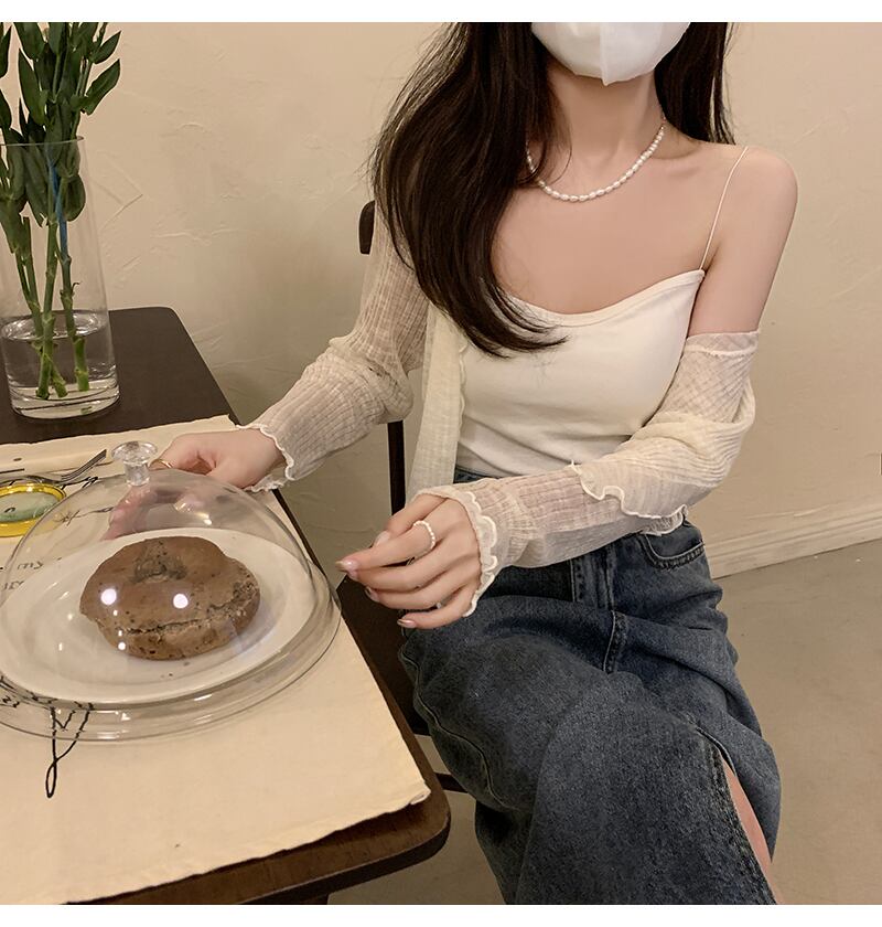 薄いアイスシルクニットブラウスジャケットショートわずかに透明なショール付きの小さなベスト日焼け止めカーディガン女性の夏のサスペンダー サマー 夏物 7460074949147835 | framboise21