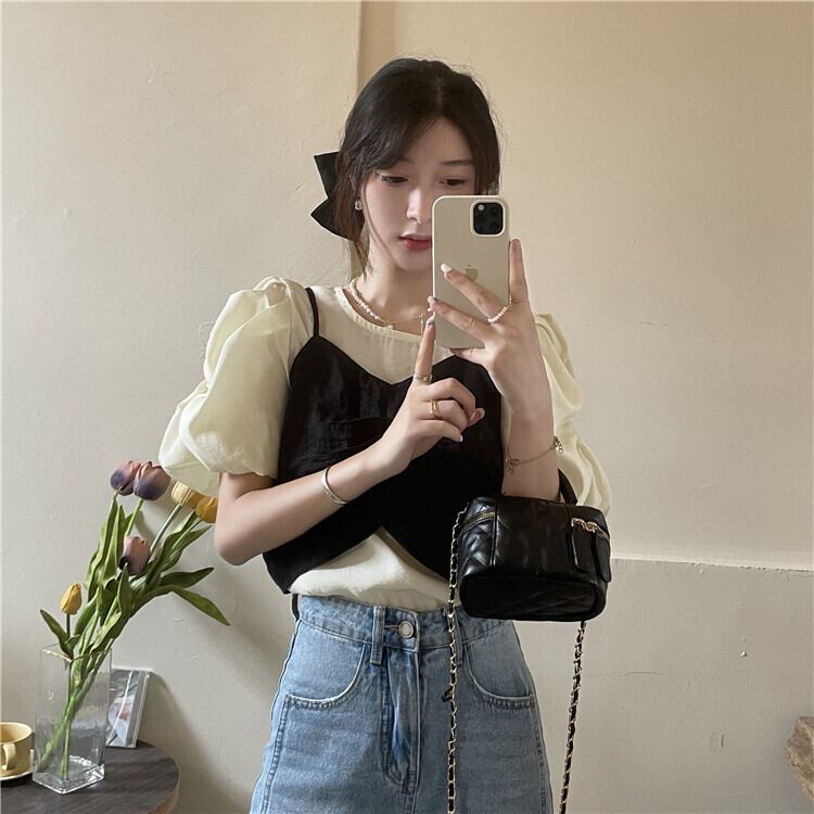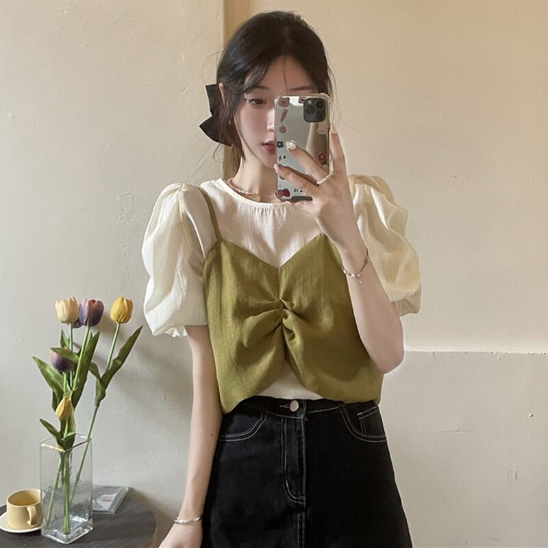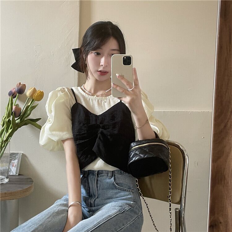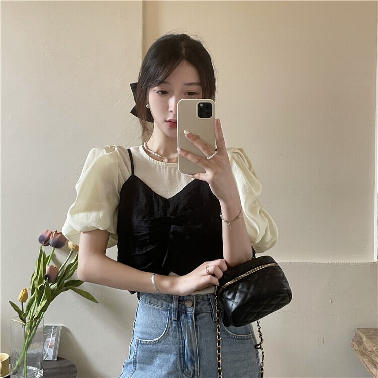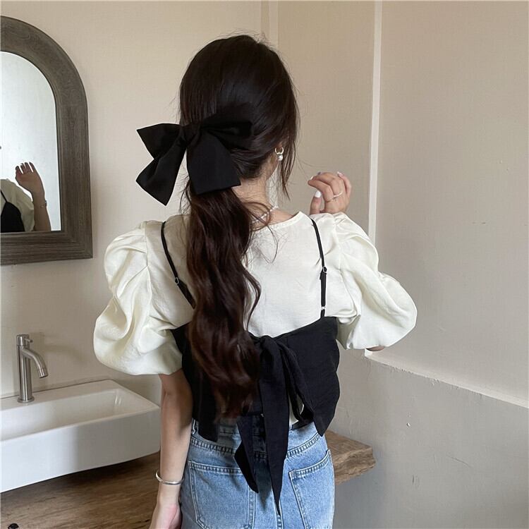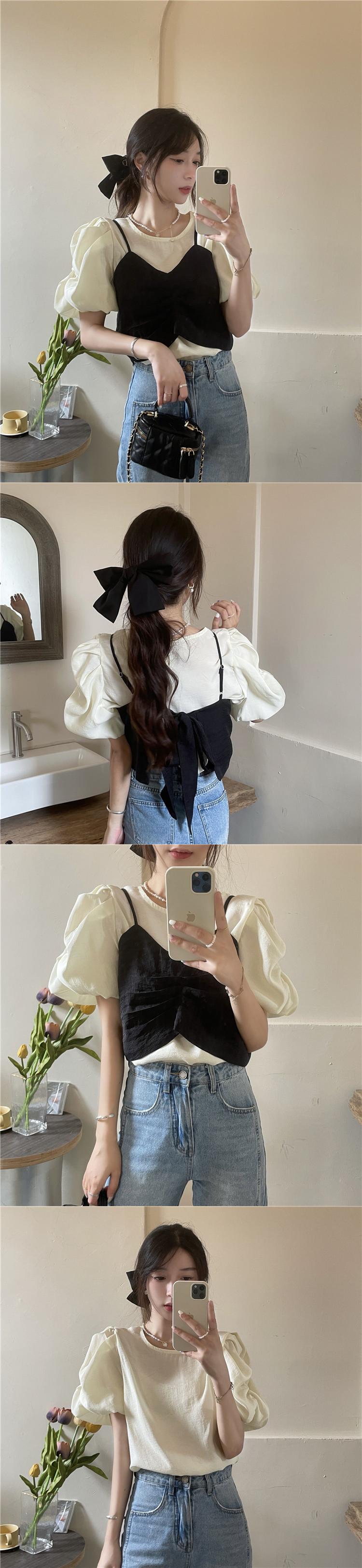 色:シフォンシャツアプリコット,ブラックサスペンダー,グリーンスリング