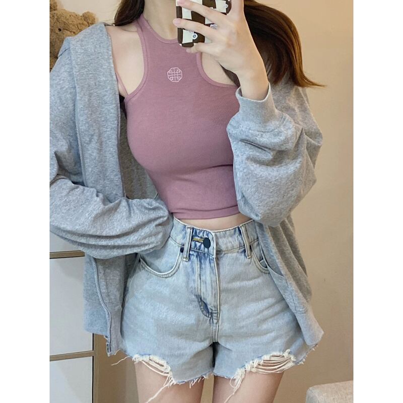 ピンクのスポーツキャミソール女性の夏のアウターウェアセンスインサイドホットガール美しいバック半ノースリーブボトムトップ ショート 半袖 ハーフスリーブ サマー 夏物 7460048391915849 | framboise21