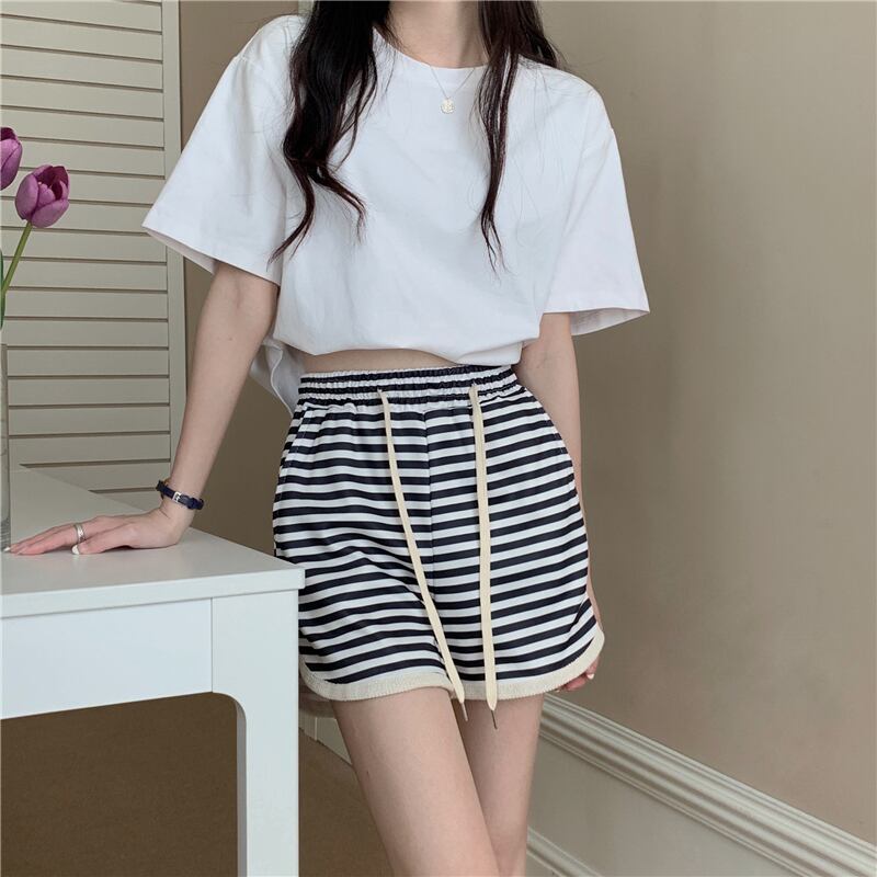 ホームショーツ女性は夏のストライプスポーツハイウエストランニングスモールカジュアルパンツルーズワイドレッグパジャマパンツを着用できます ハイウェスト サマー 夏物 ブルマー ワイドパンツ 7460068678607563 | framboise21