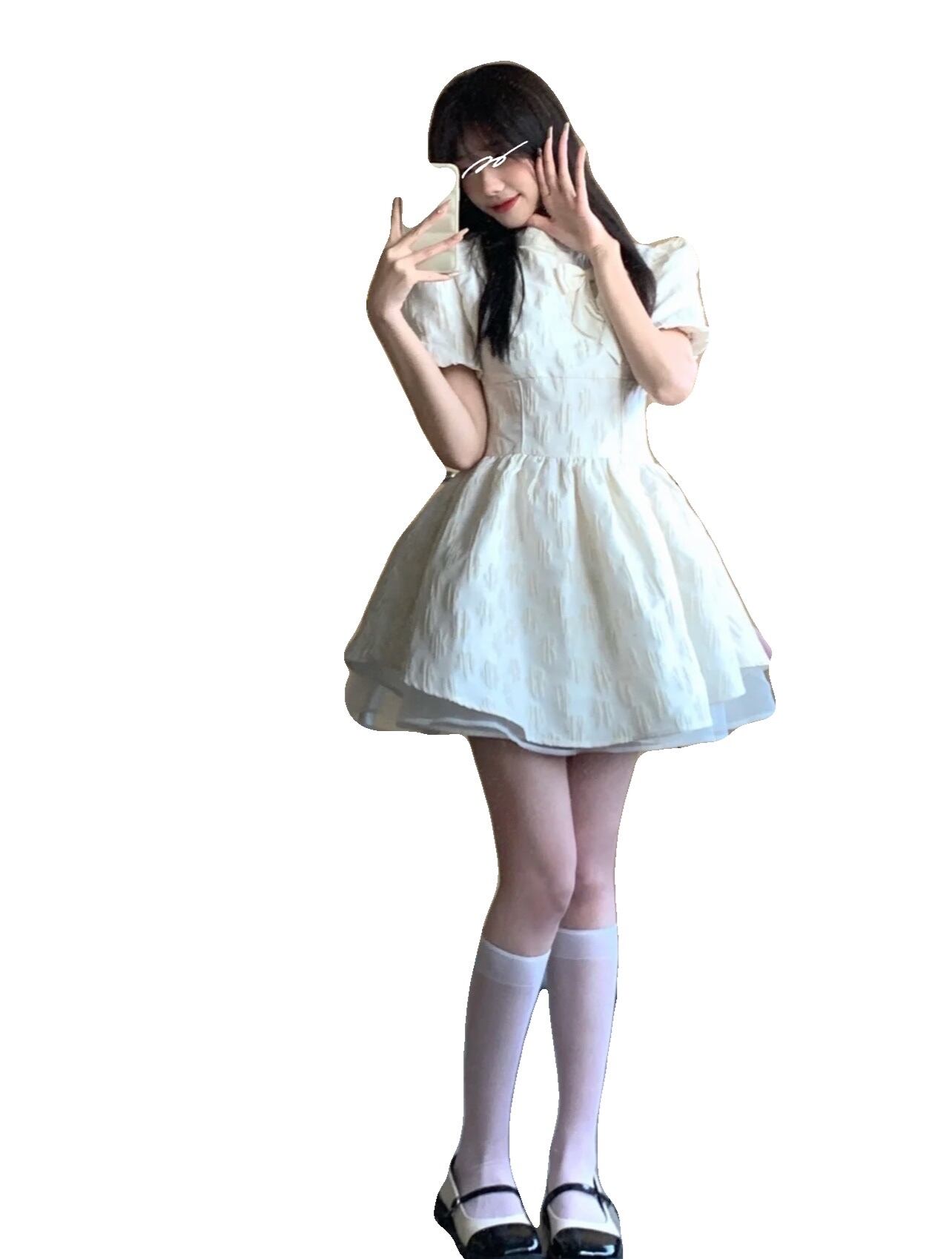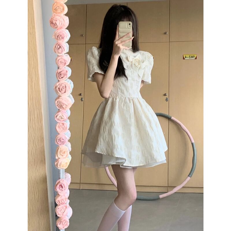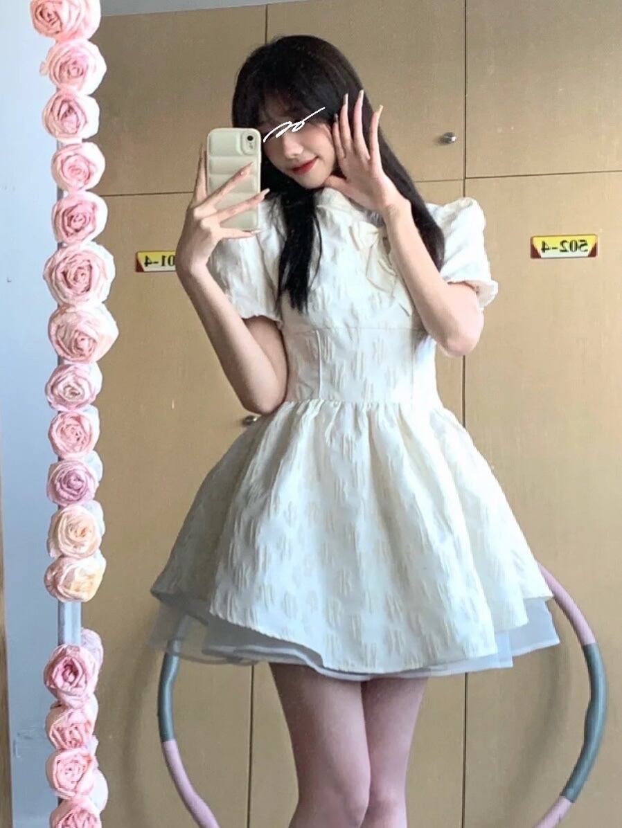 2022年夏の新しい塩と甘いシリーズ新しい中国の白いドレスのデザインセンスニッチウエストふくらんでいるスカートの女性 ホワイト 大人ガーリー スウィート キュート カジュアル サマー 夏物 7460039747075841 | framboise21