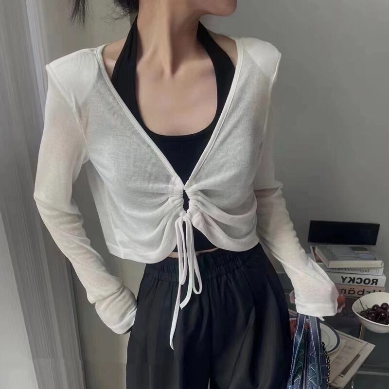 白のやや透明なアイスシルク日焼け止めニットカーディガンレディースサマー自家栽培気質揚げストリートシンサスペンダートップツーピースセット ホワイト 夏物 7460096913081123 | framboise21