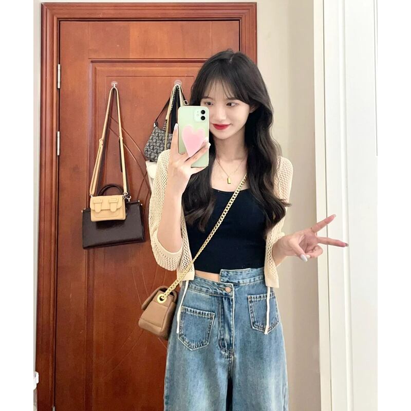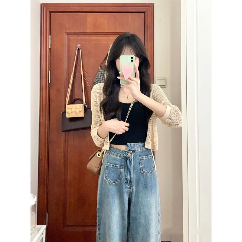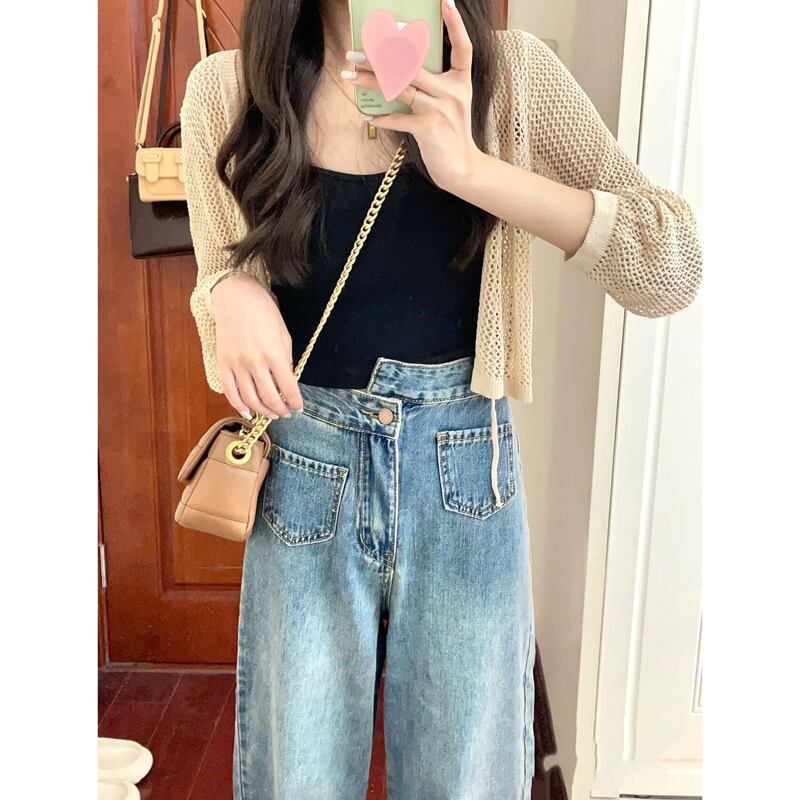ニット長袖ショールジャケットの外側の中空日焼け止めカーディガン女性の夏の薄いシースルーブラウス小さなベストサスペンダー ロング サマー 夏物 7460083894022753 | framboise21