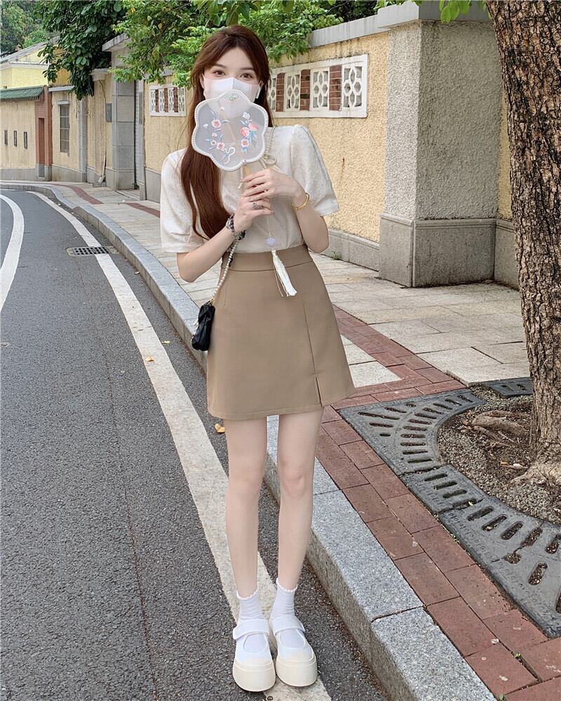ブラウンスプリットスカートレディースサマーハイウエストバッグヒップAラインショートスカートサマーユニークピンチウエストスカートサマー ハイウェスト 夏物 74600725083776 | framboise21