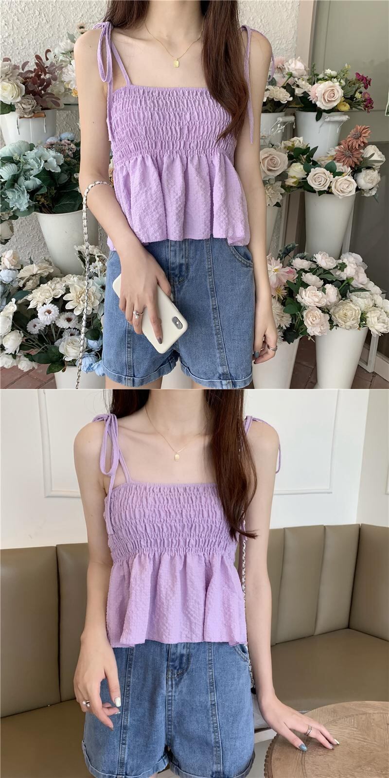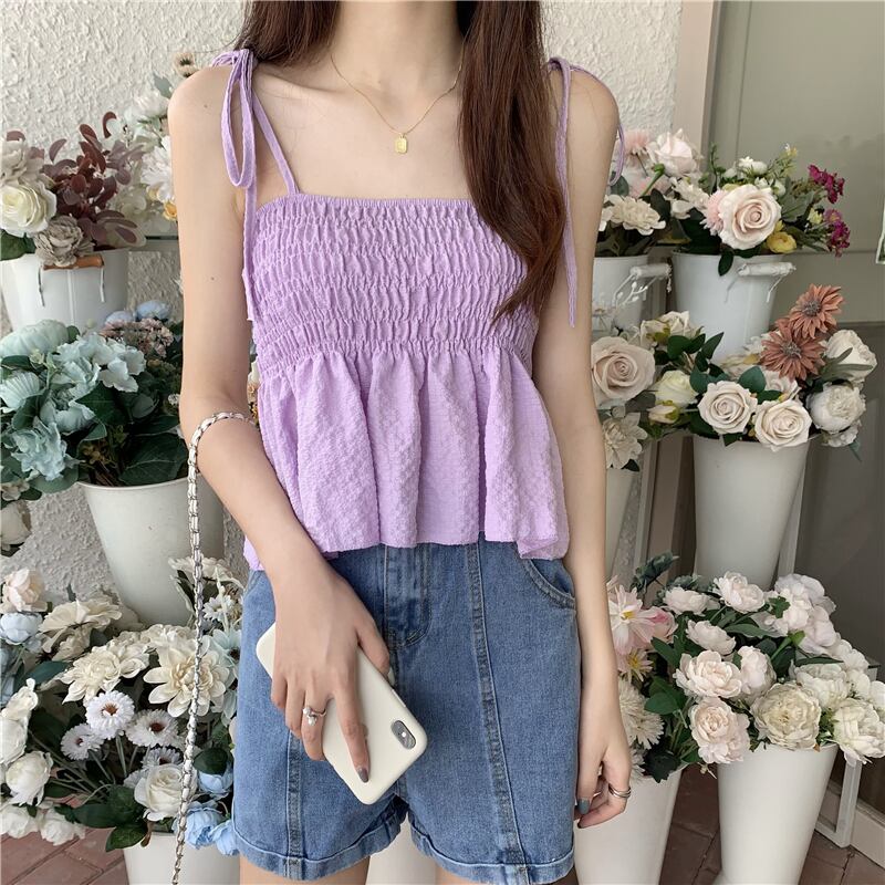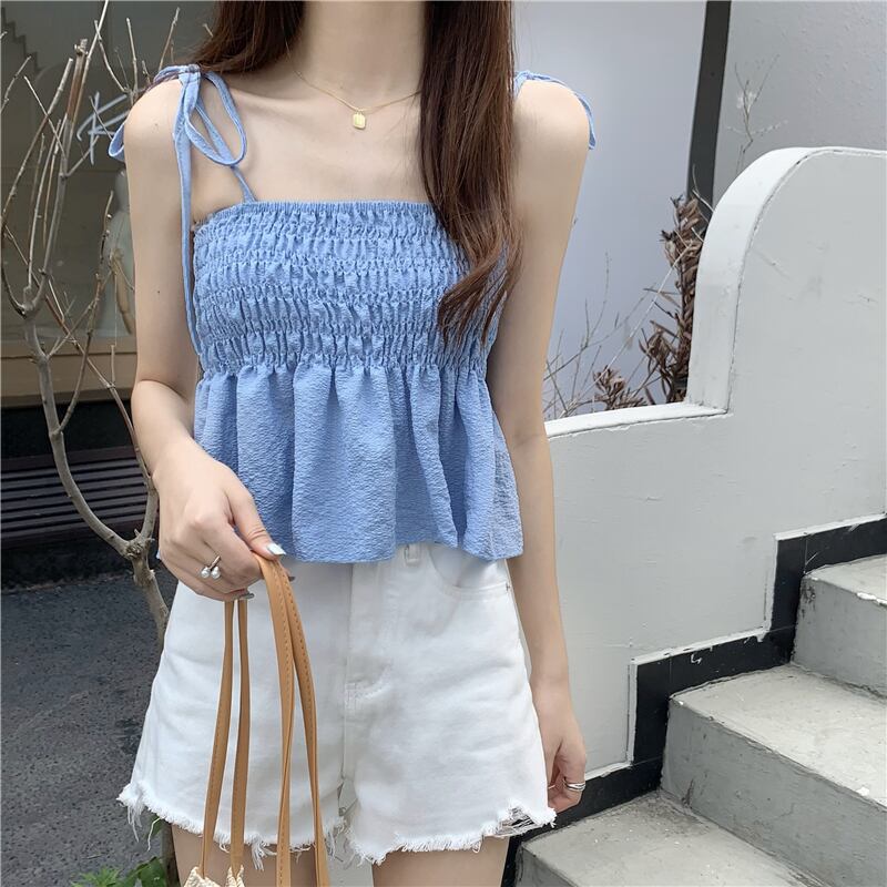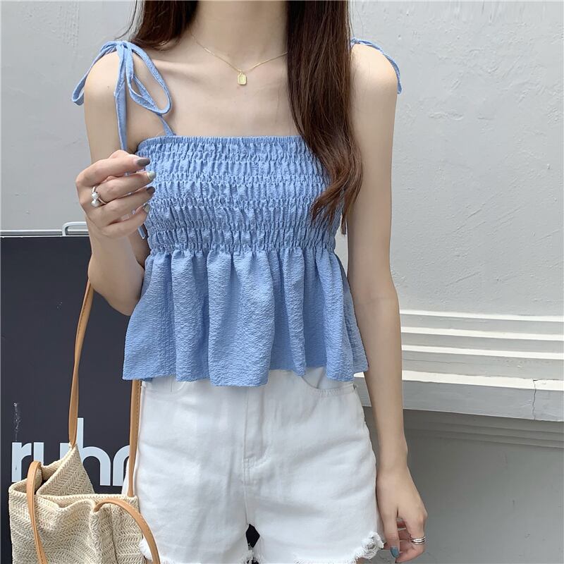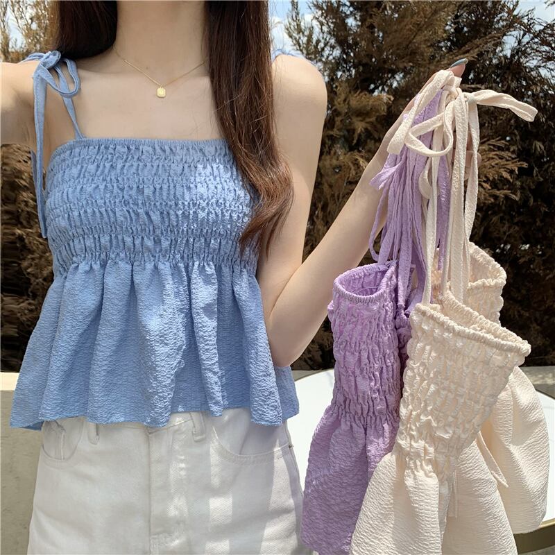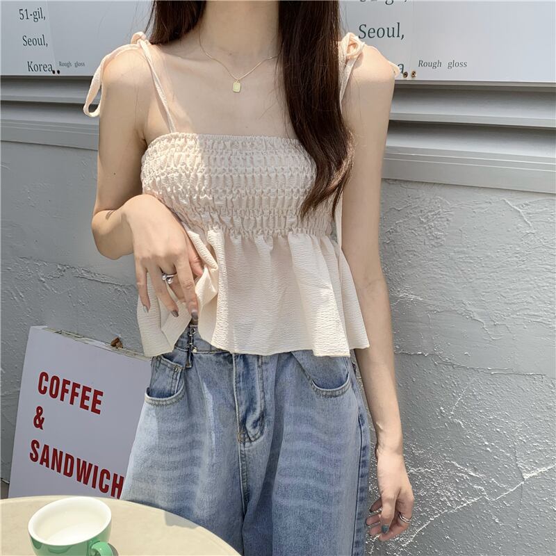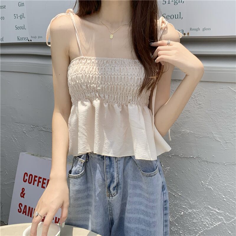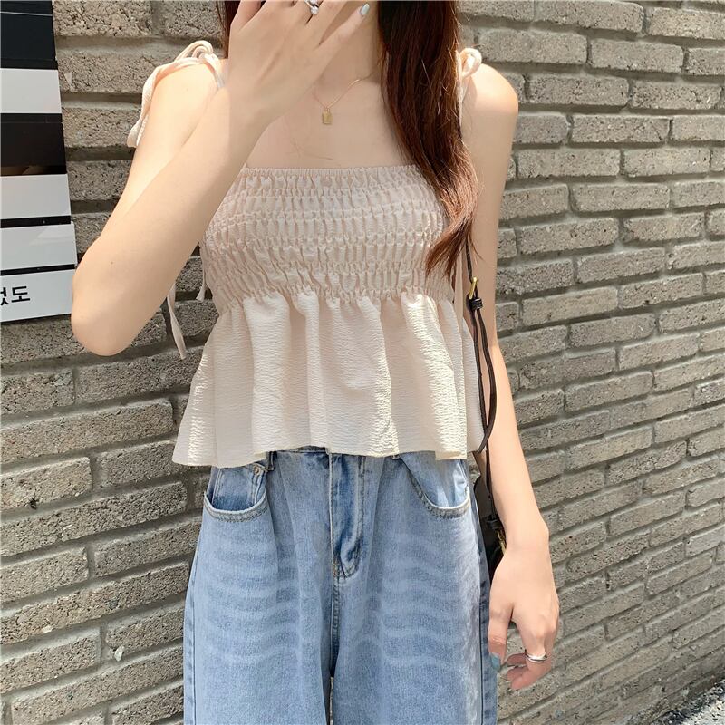 フランスの甘いプリーツチューブトップアンチグレアベスト女性のインナーとアウターウェアロータスリーフショートシーサイドサスペンダートップ夏 大人ガーリー スウィート キュート カジュアル サマー 夏物 7460085658832628 | framboise21
