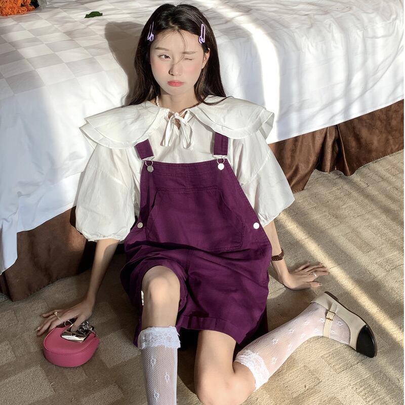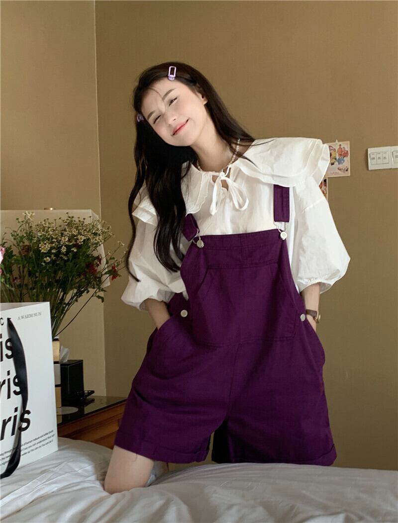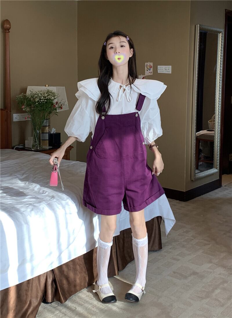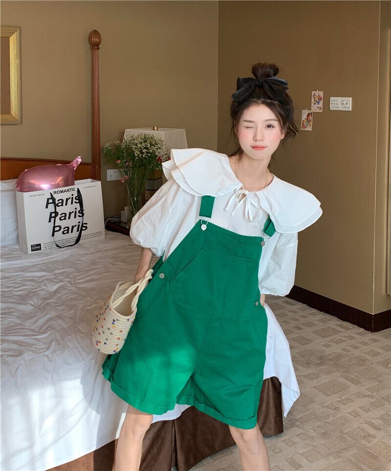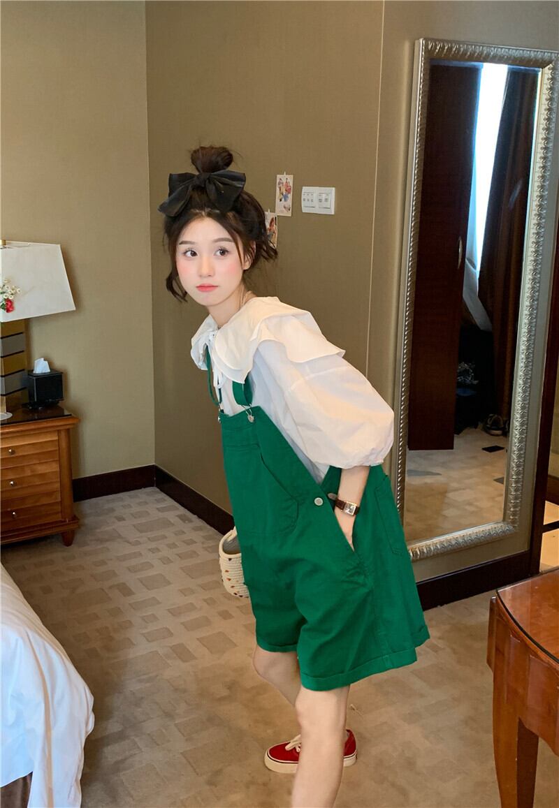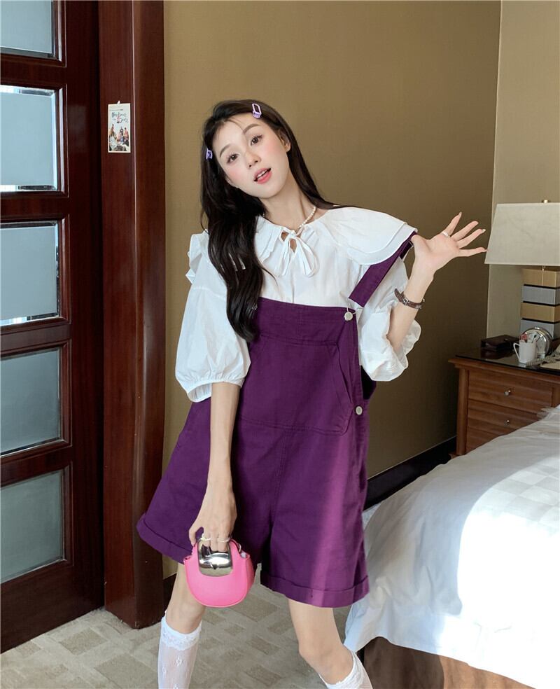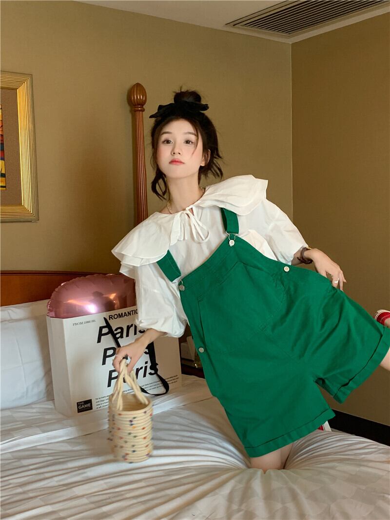 スモールカジュアルオーバーオール女子2022年夏新バージョンルーズワンピースワイドレッグショーツ学生ツーピースセット サマー 夏物 ブルマー 7460079055592496 | framboise21