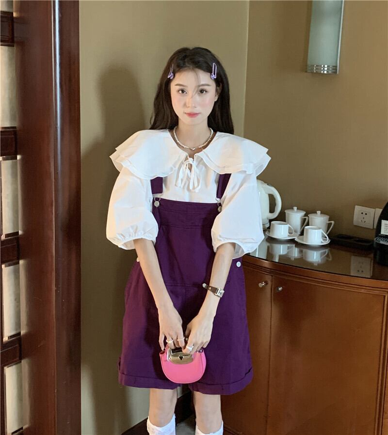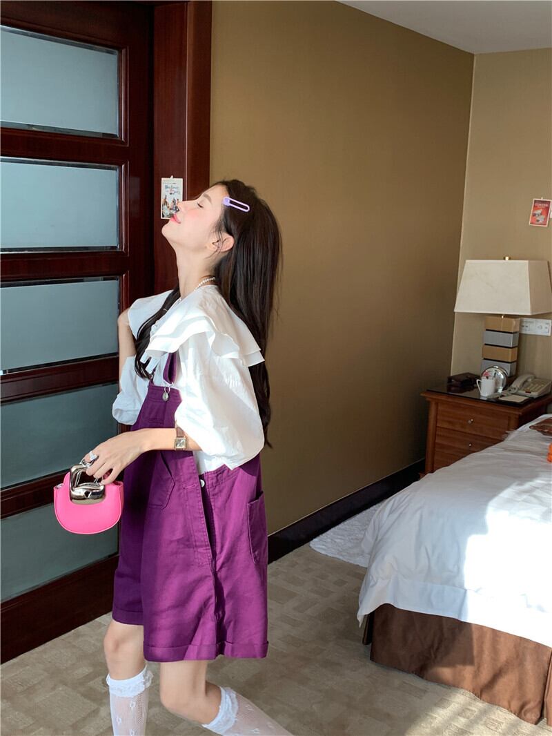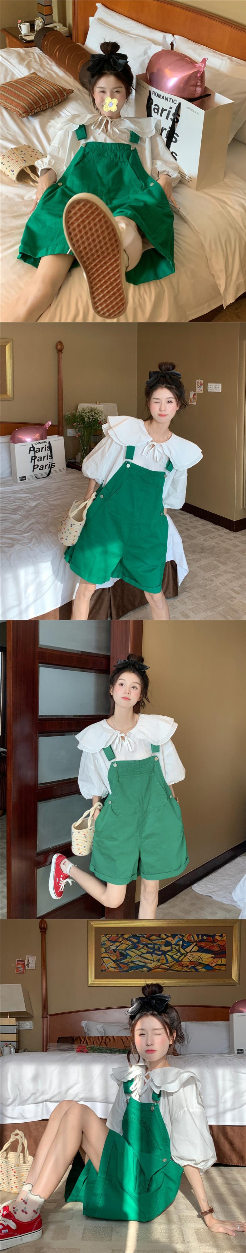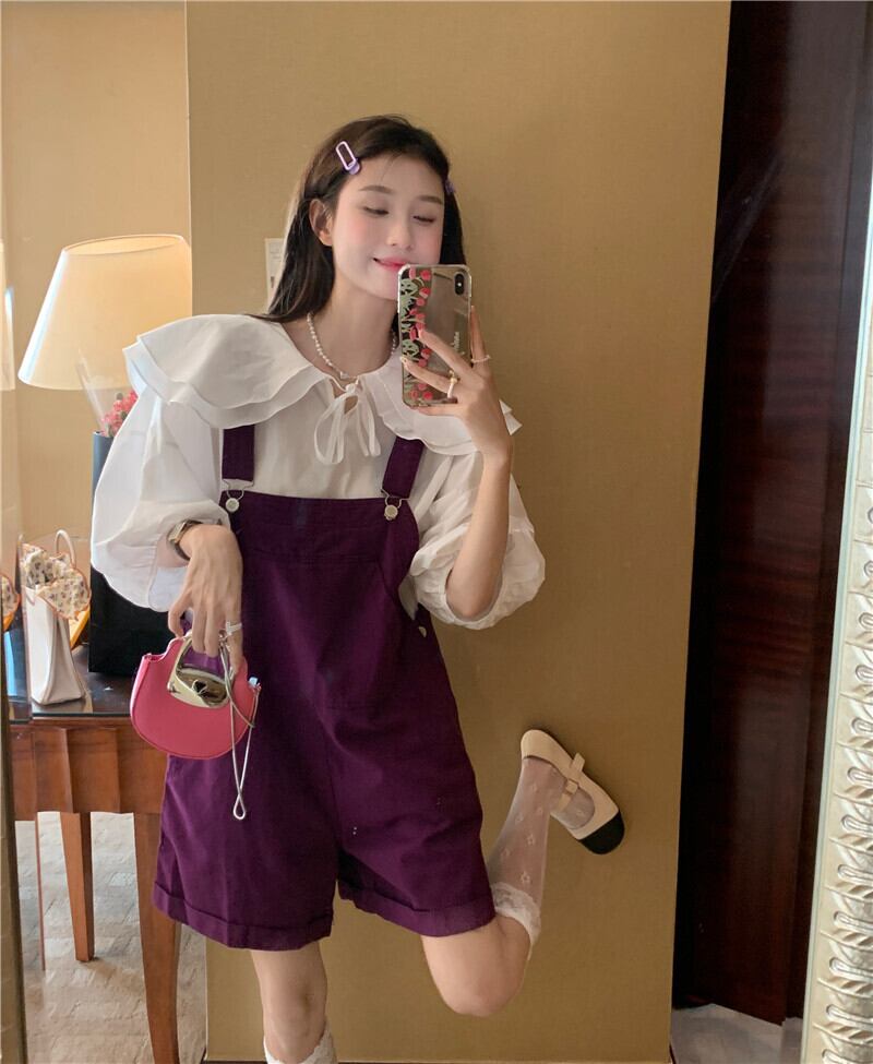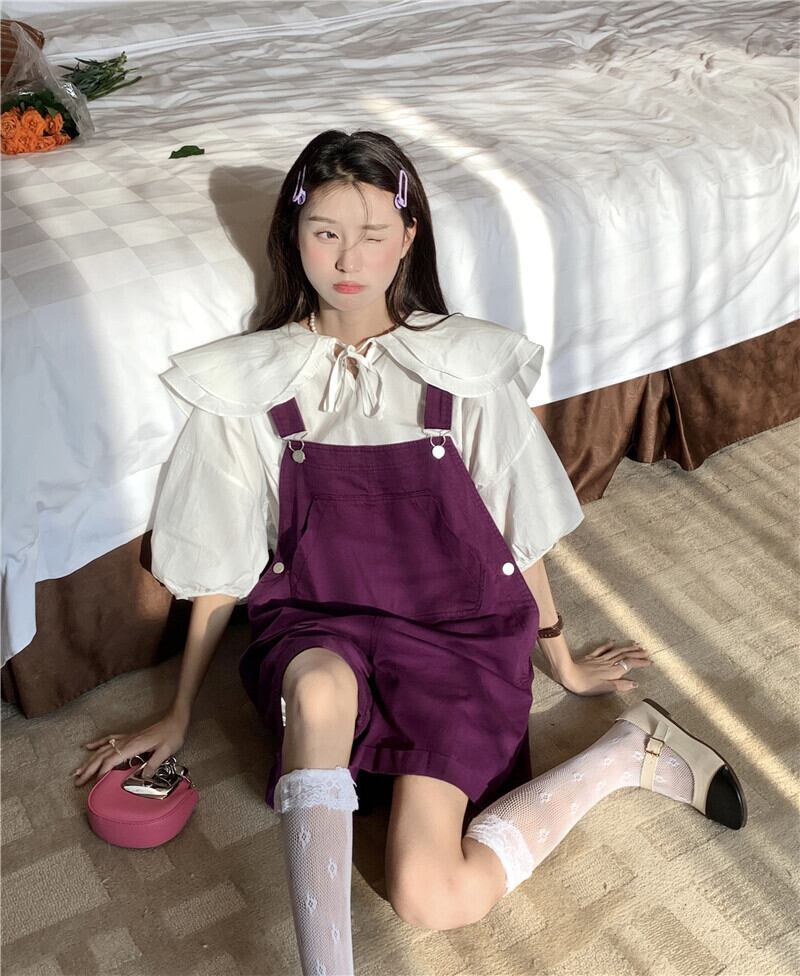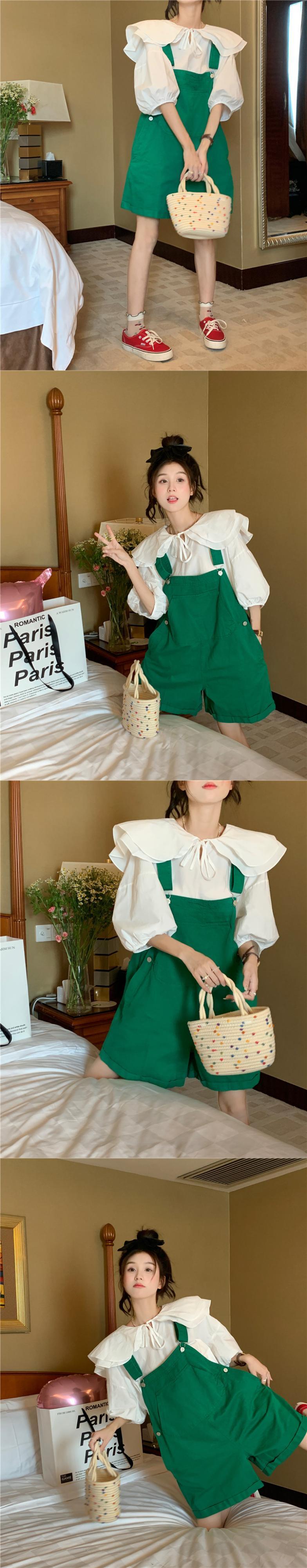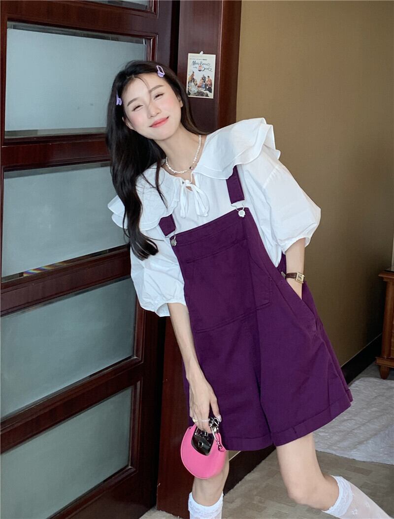 スモールカジュアルオーバーオール女子2022年夏新バージョンルーズワンピースワイドレッグショーツ学生ツーピースセット サマー 夏物 ブルマー 7460079055592496 | framboise21