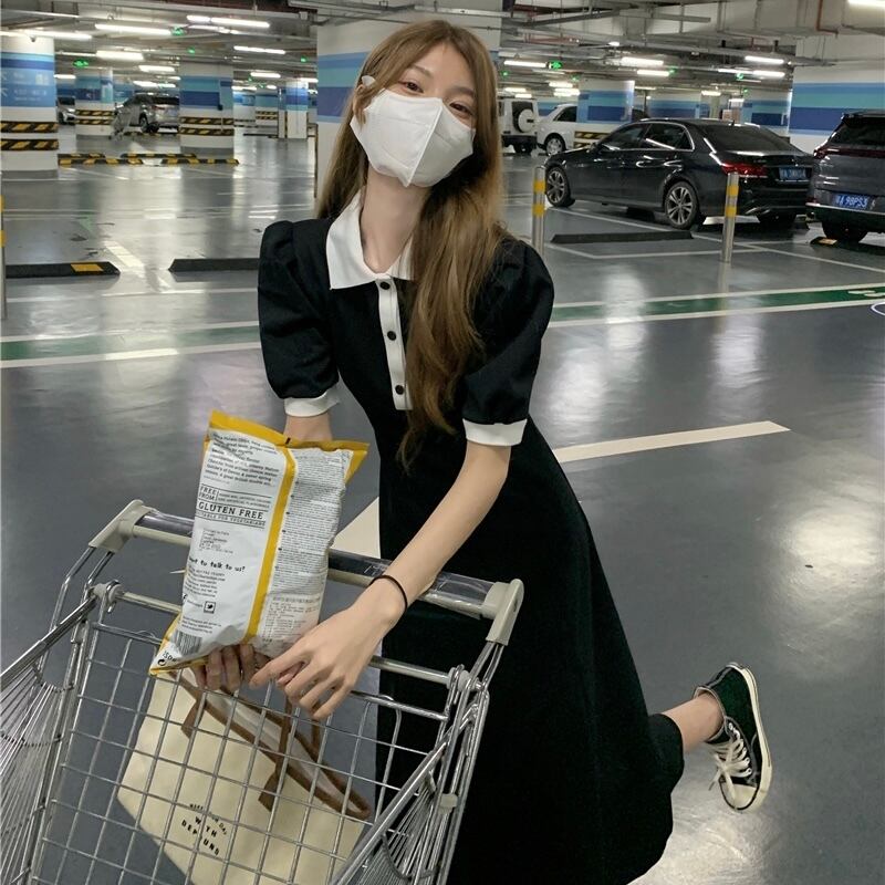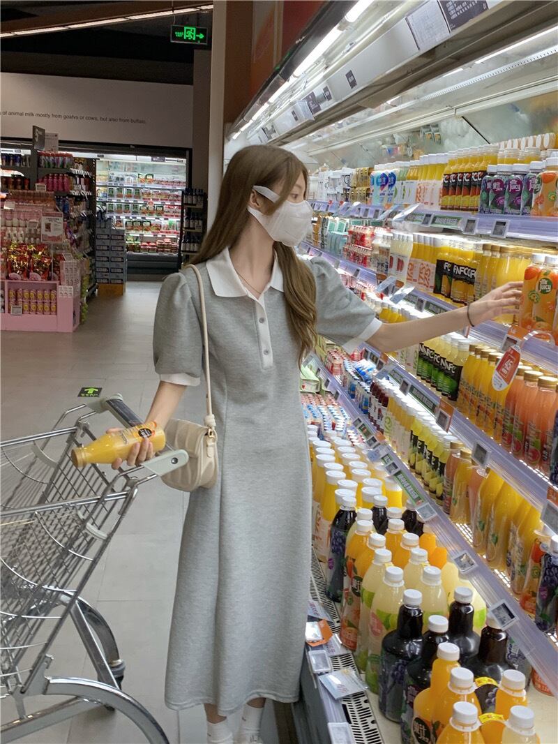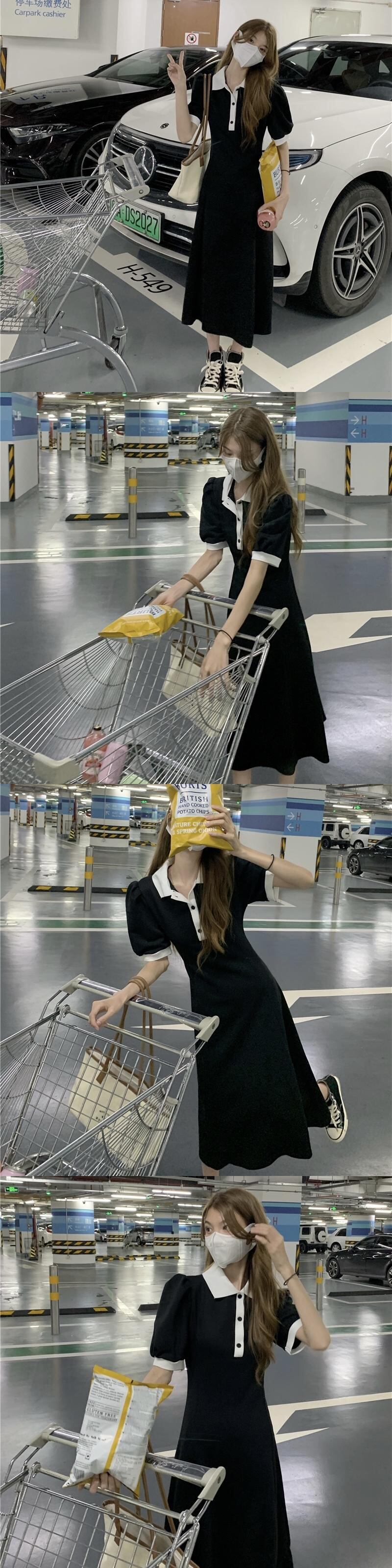 ポロカラードレスレディースサマーバブルランタンスリーブウエストオーバーニーロングスカート半袖セーターコントラストカラーTシャツスポーツスカート 夏物 7460052592616360 | framboise21