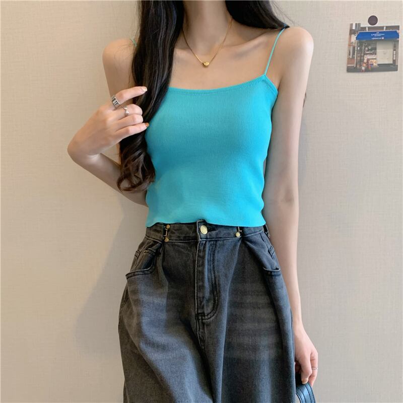 外側にアイスシルクニットの小さなスリング、サマーショート、ボトミング、チューブトップ、レディースインスーパーノースリーブベストを着用 夏物 7460047924837129 | framboise21