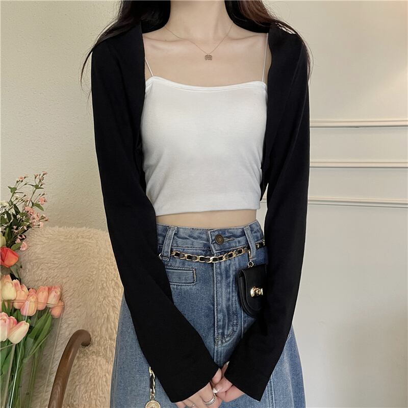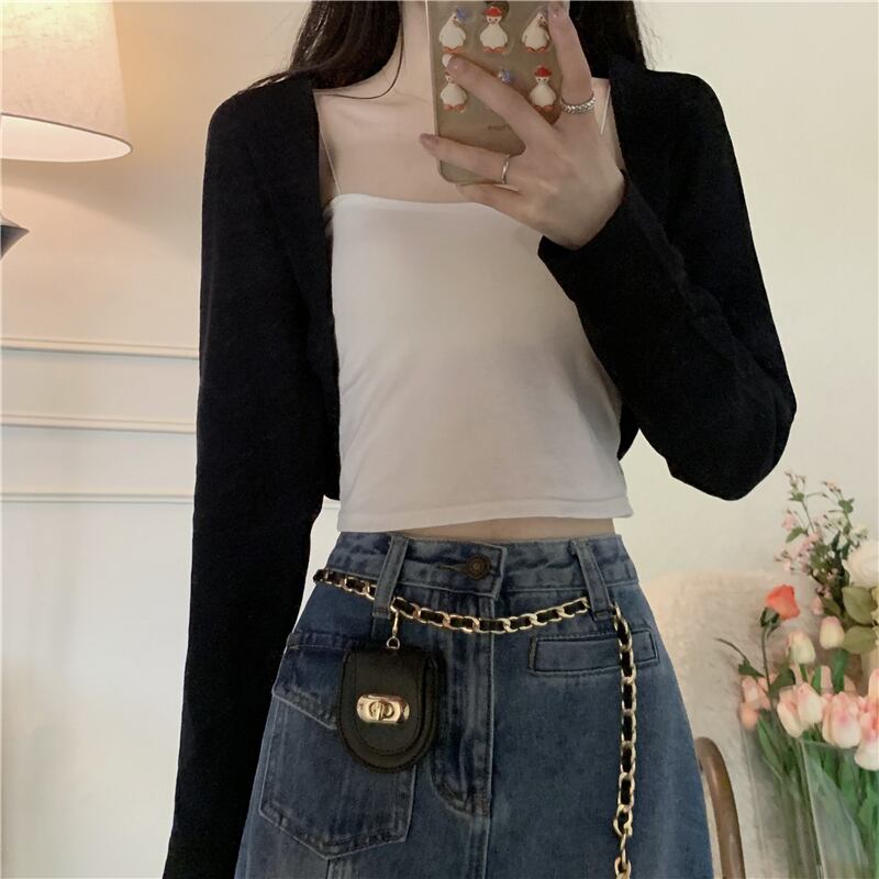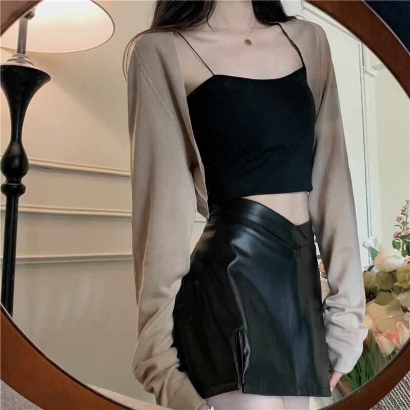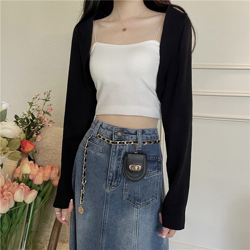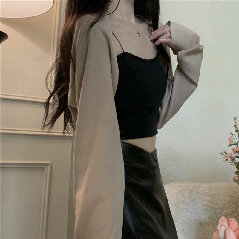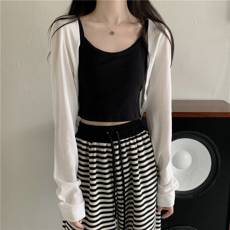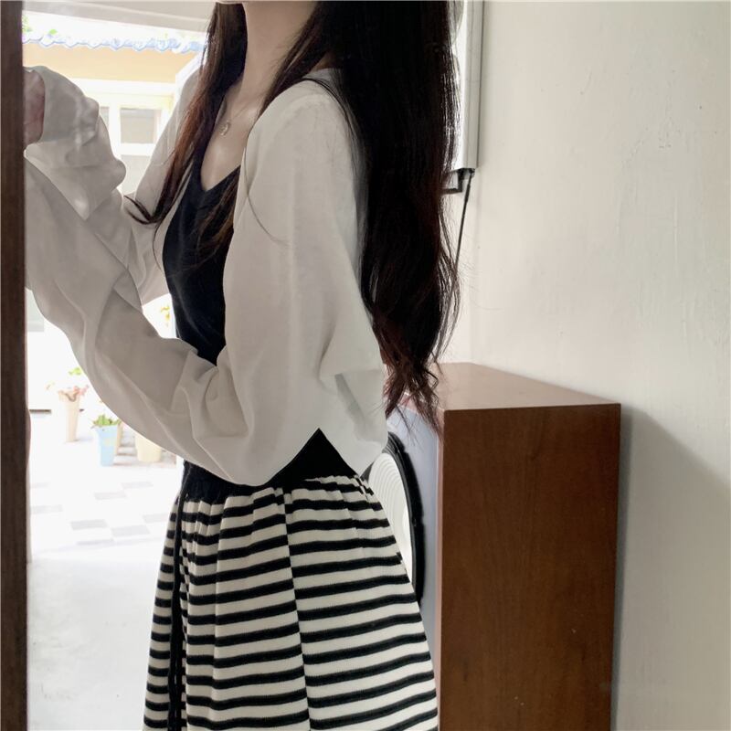 アイスシルクニットサンスクリーンカーディガンレディースサマーアウターウェア薄手のチョッキ長袖ブラウスショールサスペンダースカート付きスモールコート ロング 夏物 746008300727198 | framboise21