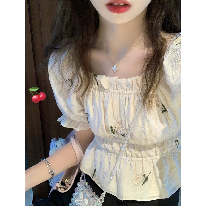花柄シャツ女性の2022年夏新しいフレンチデザインのニッチなファッションセンスショートスクエアカラーバブル半袖トップス サマー 夏物 スクウェア 7460078848325927 | framboise21
