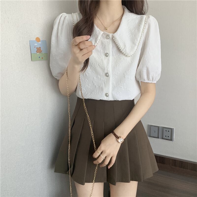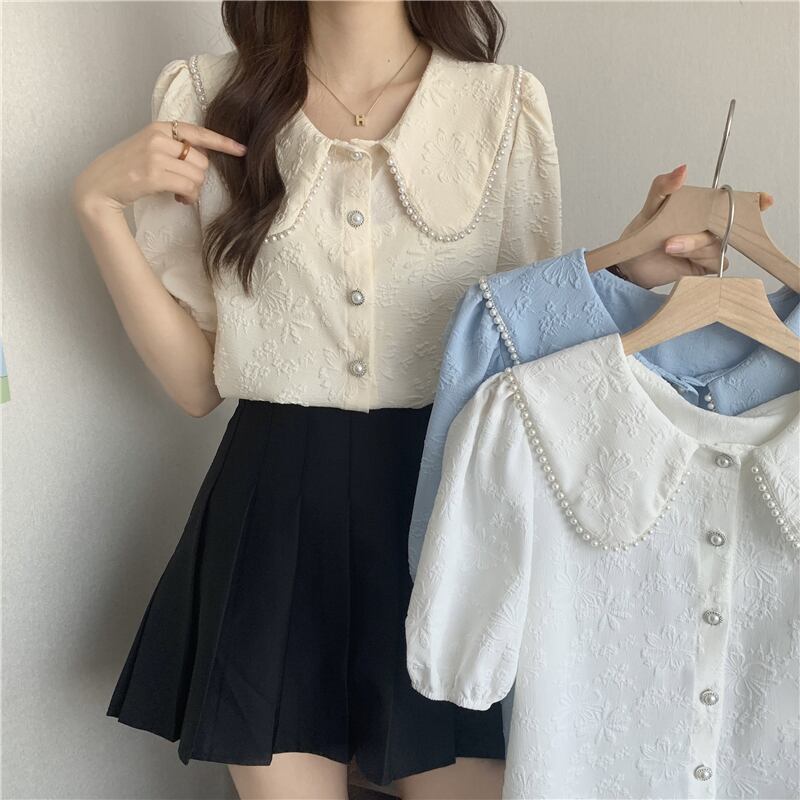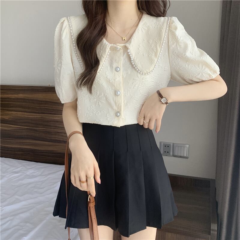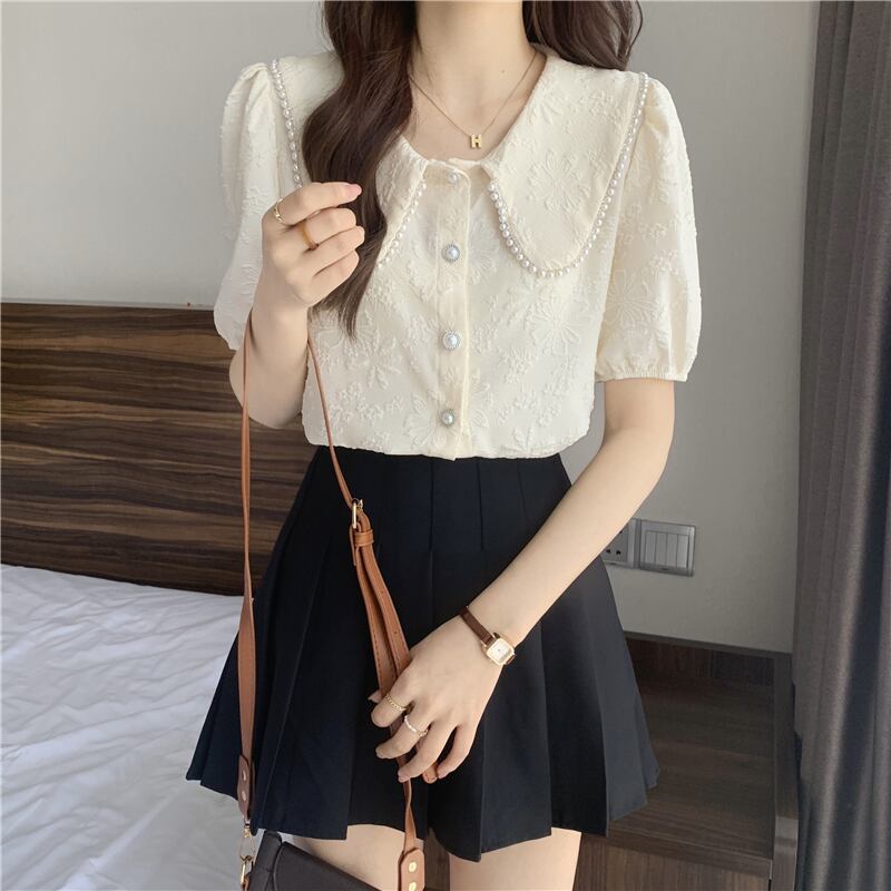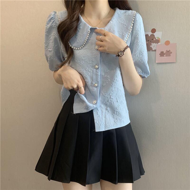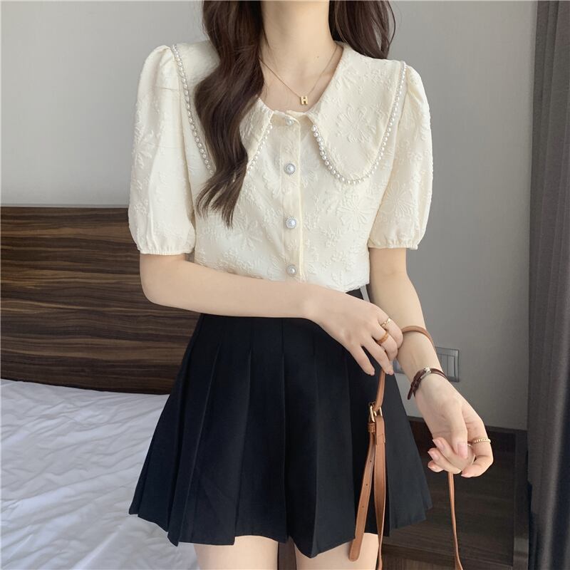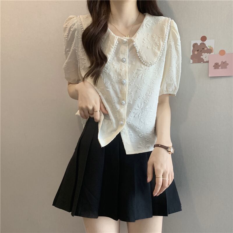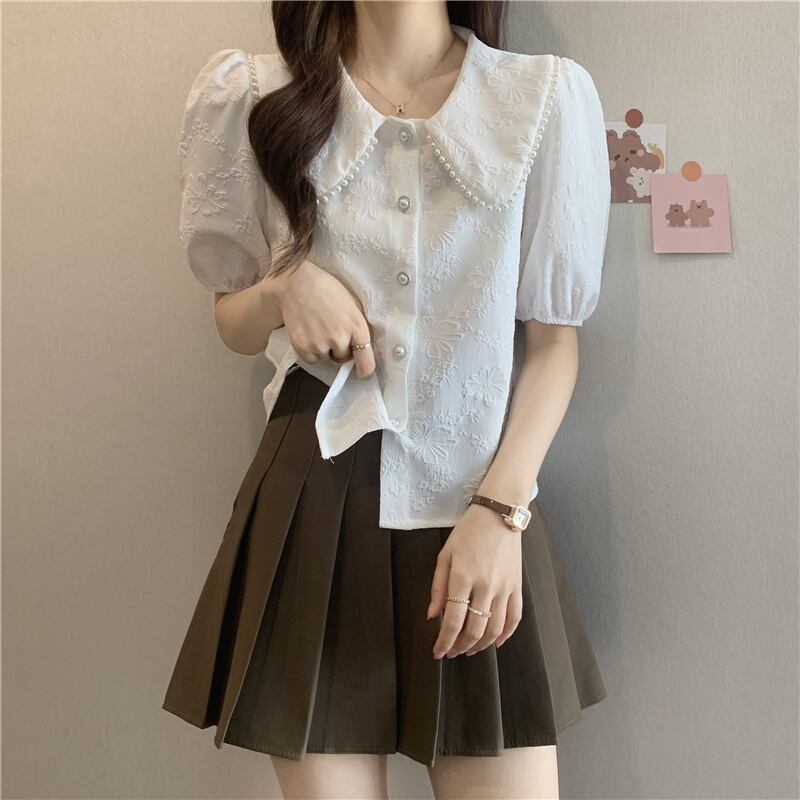 フランスの人形の襟の半袖シャツ女性のXiaXiaoxiangスタイルのパフスリーブシャツのデザイン小さな純粋で甘いトップ 大人ガーリー スウィート キュート カジュアル ピュア 7460011944685603 | framboise21