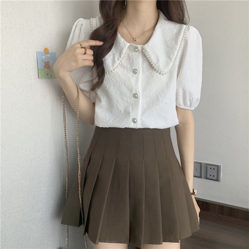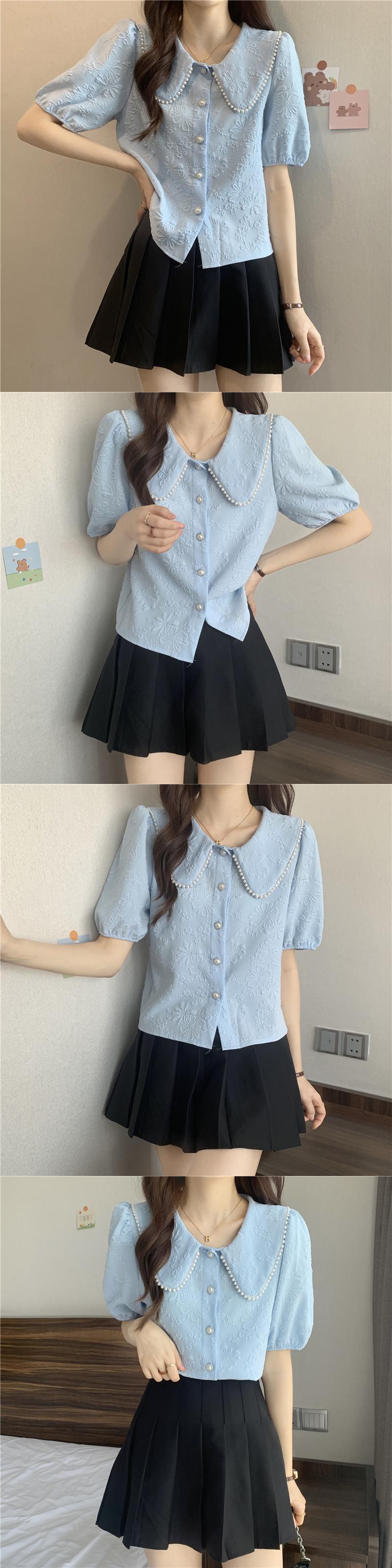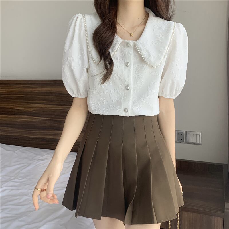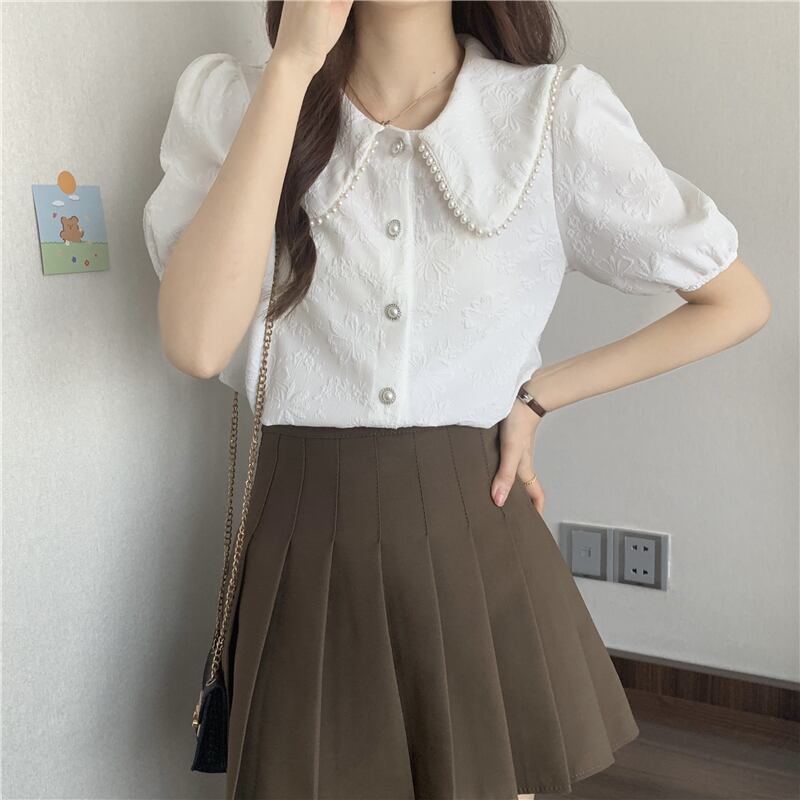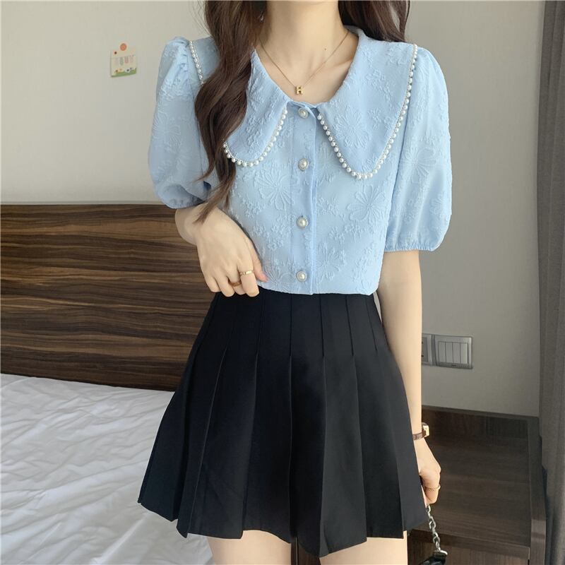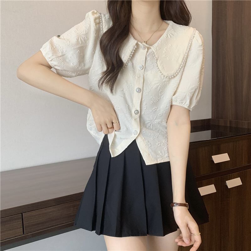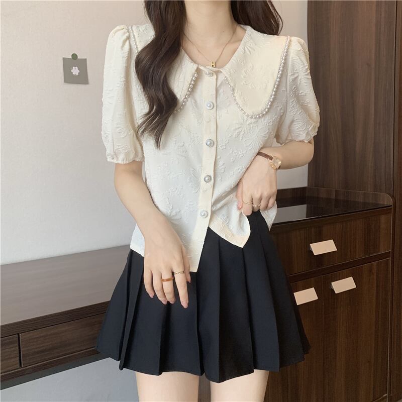フランスの人形の襟の半袖シャツ女性のXiaXiaoxiangスタイルのパフスリーブシャツのデザイン小さな純粋で甘いトップ 大人ガーリー スウィート キュート カジュアル ピュア 7460011944685603 | framboise21